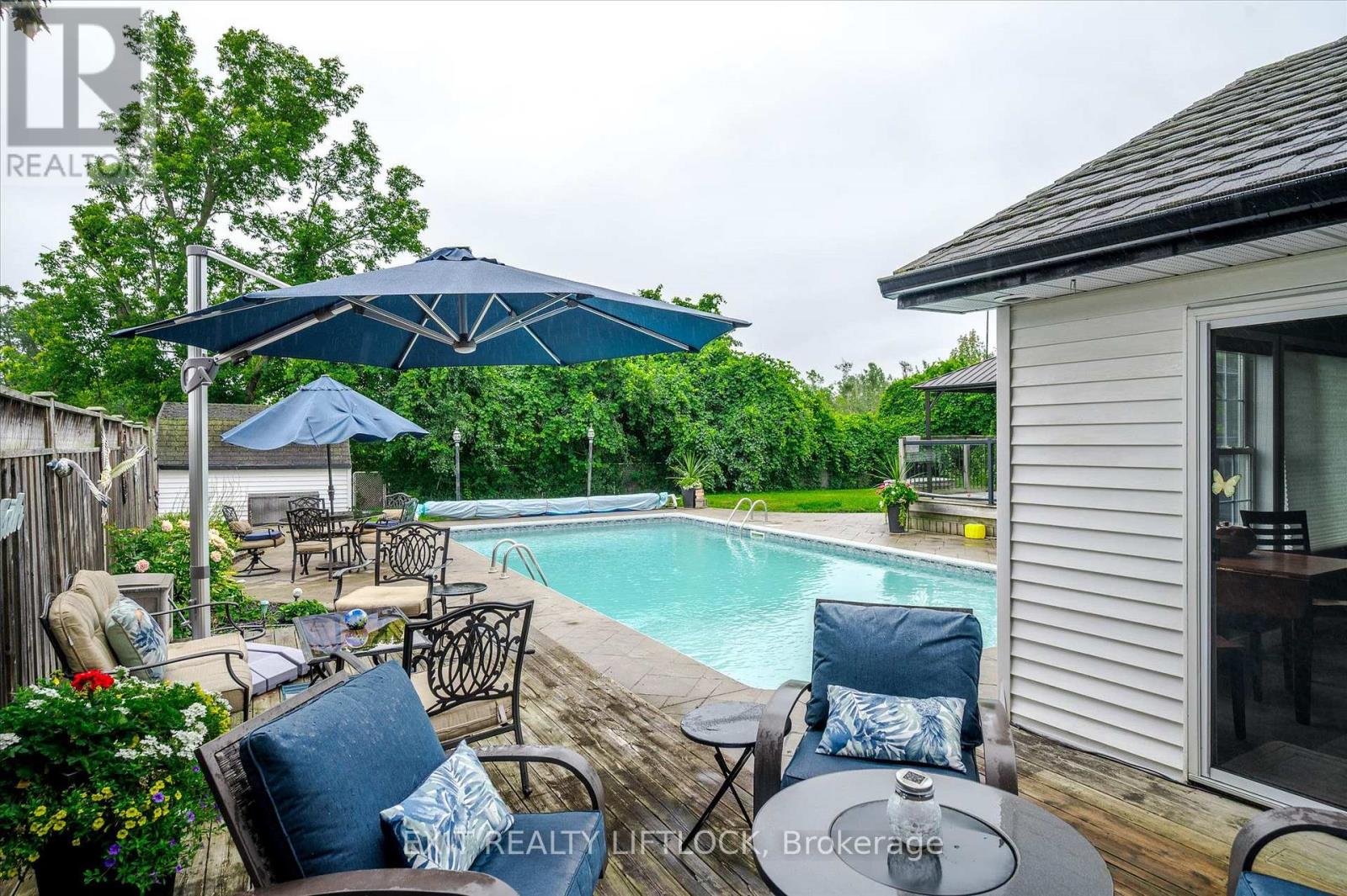Welcome to 1437 Stewart Line in Cavan. This spacious 4-level side split sits on a lovely country lot and offers 1,825 sq ft above grade. This home boasts a durable steel roof, multiple walk-outs, and a bright sunroom, along with a tiered deck and gazebo overlooking the fully fenced backyard, complete with a stamped-concrete patio and a solar-heated inground pool (Shallow 4ft, Deep 5.5ft). The kitchen includes granite counter-tops, plenty of cupboard space, stainless appliances, a side-by-side fridge and built-in dishwasher. Upstairs are three bedrooms, including the primary, and a 5-pc bath w/ granite countertops & ceramic flooring. The lower level offers a family room with a cozy fireplace, murphy bed sunroom and 3-pc bath. Basement provides laundry and extra storage. Attached 2-car garage, garden shed (x2), and easy access to Peterborough and Hwy 115. 2 NEW Heat Pumps installed Nov 24, 2025! (id:61423)