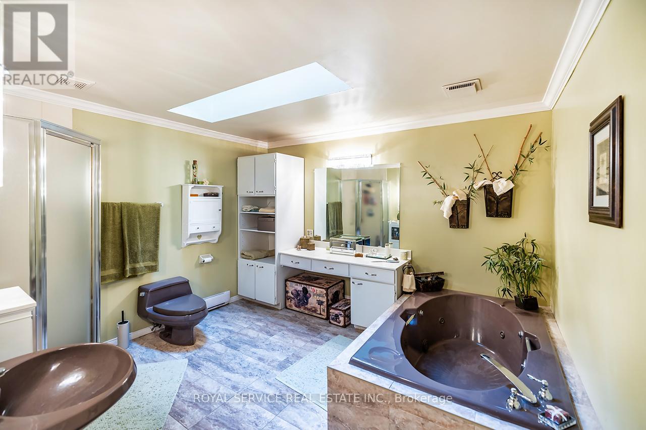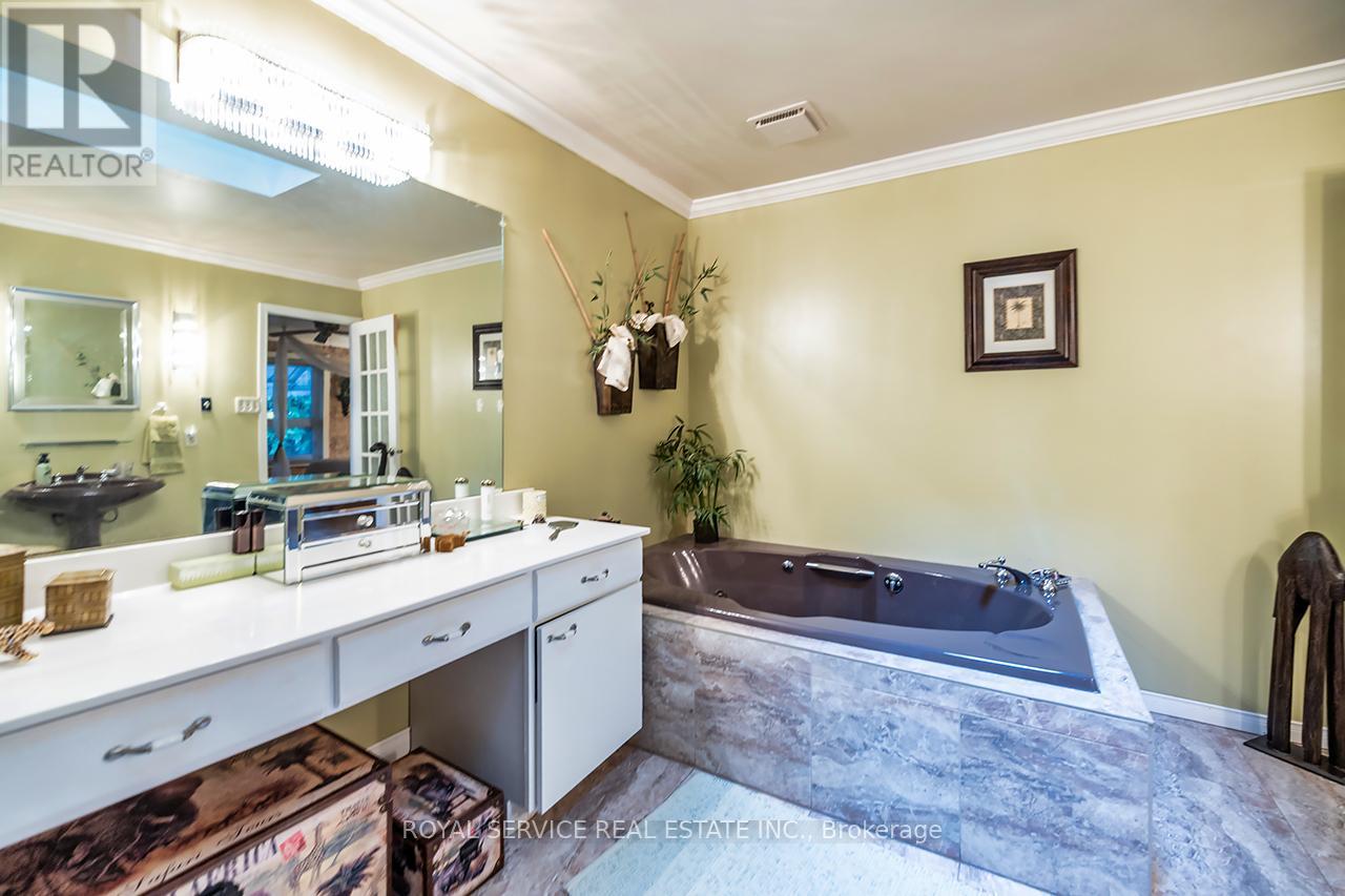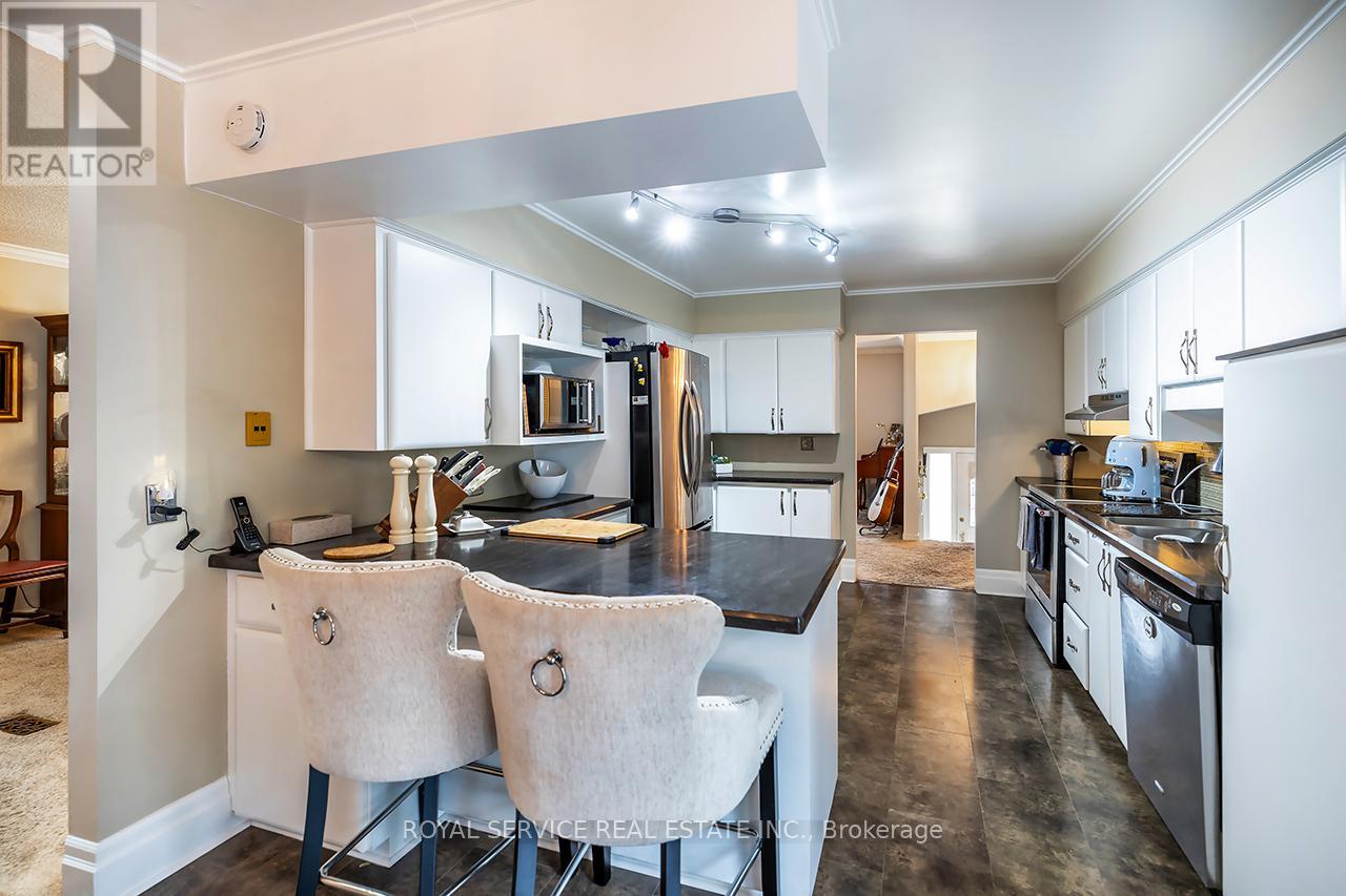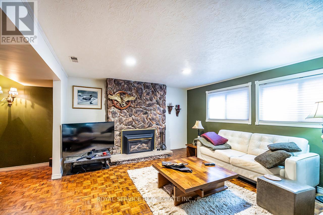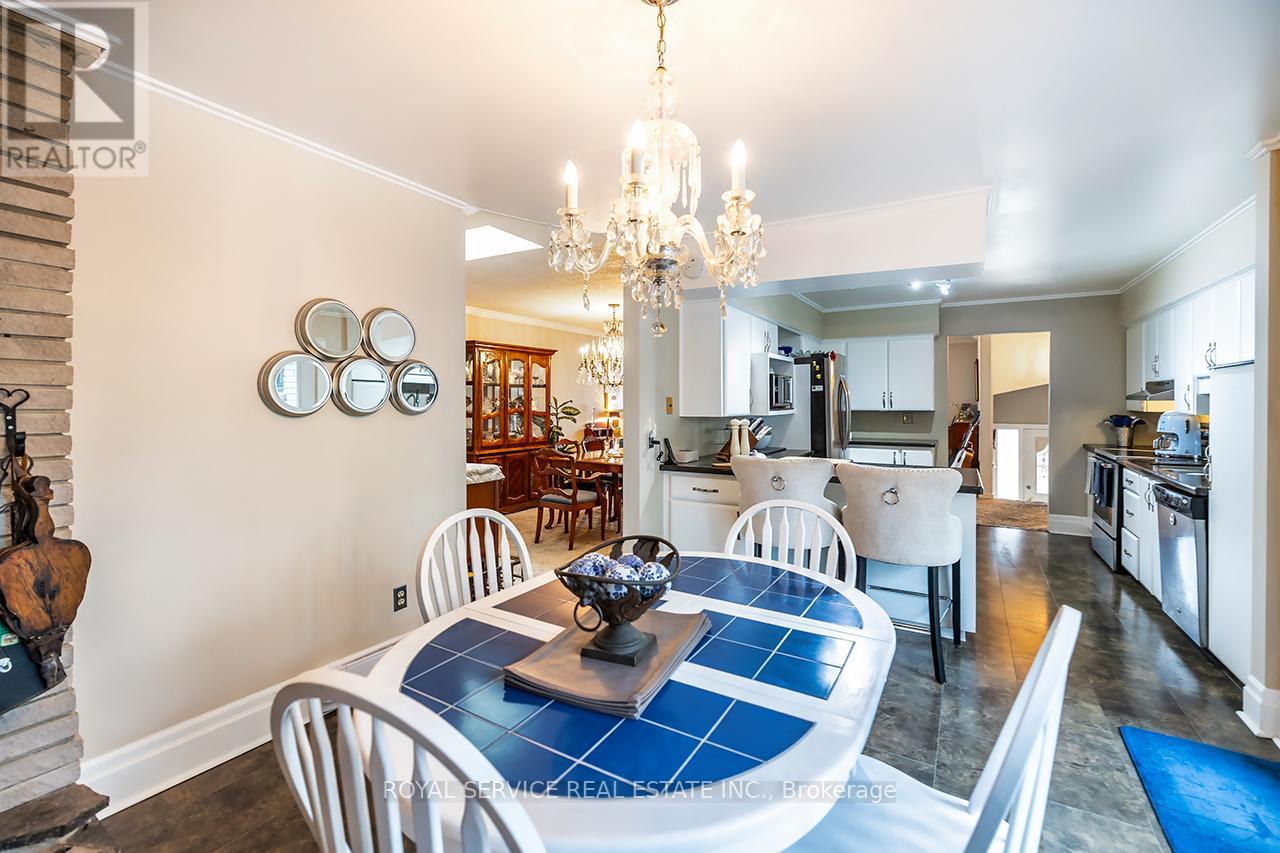 Nestled among mature trees in the quaint town of Pontypool, this custom raised bungalow offers an exceptional blend of space, comfort, & thoughtful design. The exterior showcases interlocking brick, landscaped gardens, and armour stone steps that create a striking first impression. A few steps lead to the spacious main living area with a large picture window that fills the room with natural light. The space flows into the dining area, highlighted by a skylight that enhances the open feel. The kitchen is both functional and inviting, featuring stainless steel appliances, a breakfast bar, and a generous eat-in area with walk-out to the private patio and inground pool. The primary bedroom offers a walk-in closet and an oversized ensuite with a separate shower and soaker tub. The second bedroom features double closets with direct walk-out access to the patio and pool area. The third and fourth bedrooms are well-sized with double closets, offering flexibility for family living. The lower level extends the living space with a cozy rec room with a gas fireplace, open to a versatile games or library area. A separate billiards room offers space for recreation, with the added benefit of a cold cellar, additional storage, and walk-out to the front of the home. A private office with a large window offers a bright workspace. The laundry room includes a sink, sauna, and access to the garage.The backyard presents a private outdoor oasis designed for both relaxation & entertaining, featuring a patio seating area that offers plenty of room for outdoor dining, and gathering with family and friends! The inground kidney-shaped pool serves as the focal point of the space and is surrounded by durable rubber stone finish, providing a clean and low-maintenance surface. This outdoor setting creates an inviting extension of the home, perfect for enjoying warm summer days! A rare opportunity to own a well-appointed home offering exceptional space and comfort in a peaceful, mature setting! (id:61423)