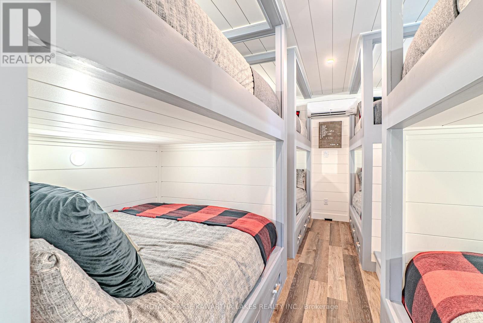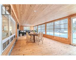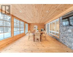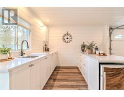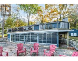 Experience the ultimate waterfront lifestyle on sought-after Balsam Lake with over 90 feet of pristine shoreline and a property designed for both relaxation and entertaining. This year-round retreat offers a rare blend of comfort, versatility, and resort-style amenities. The main home welcomes you with a bright, functional layout featuring a kitchen with walkout to the yard, a dining area with access to the deck, and a cozy living room anchored by a wood stove. Two main floor bedrooms include one with its own walkout to the deck, while the 4-piece bath offers in-floor heating for added comfort. The finished walkout lower level expands your living space with a spacious rec room, two additional bedrooms, a 3-piece bath, and a walkout to the inviting three-season sunroom , the perfect place to unwind after a day on the water. Designed with hosting in mind, the converted detached garage has been transformed into a fully functional guest retreat that sleeps 18, complete with a kitchenette, open-concept living and dining area with fireplace, and an impressive bunkroom with built-in beds to accommodate family and friends. A separate heated bunkie (2.3m x 3.53m) sleeps 4 with hydro and water provides even more flexible space for guests. Outdoors, the property truly shines with a private dock, hardscaped patio, waterside bar, hot tub, and firepit - creating the perfect setting for summer days and evenings by the lake. Whether you're looking for a family getaway or a place to gather and entertain, this exceptional Balsam Lake property delivers the complete waterfront experience. (id:61423)