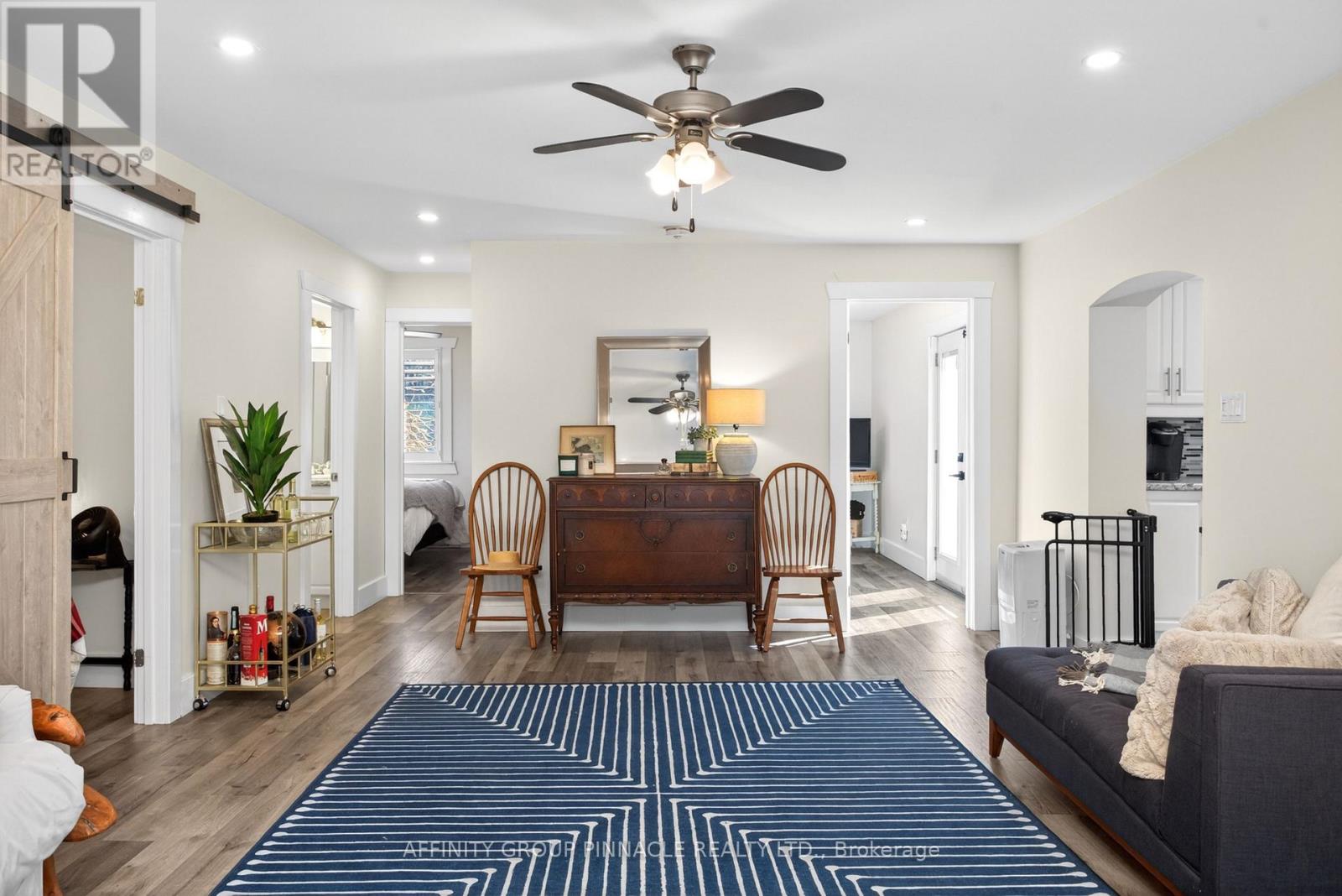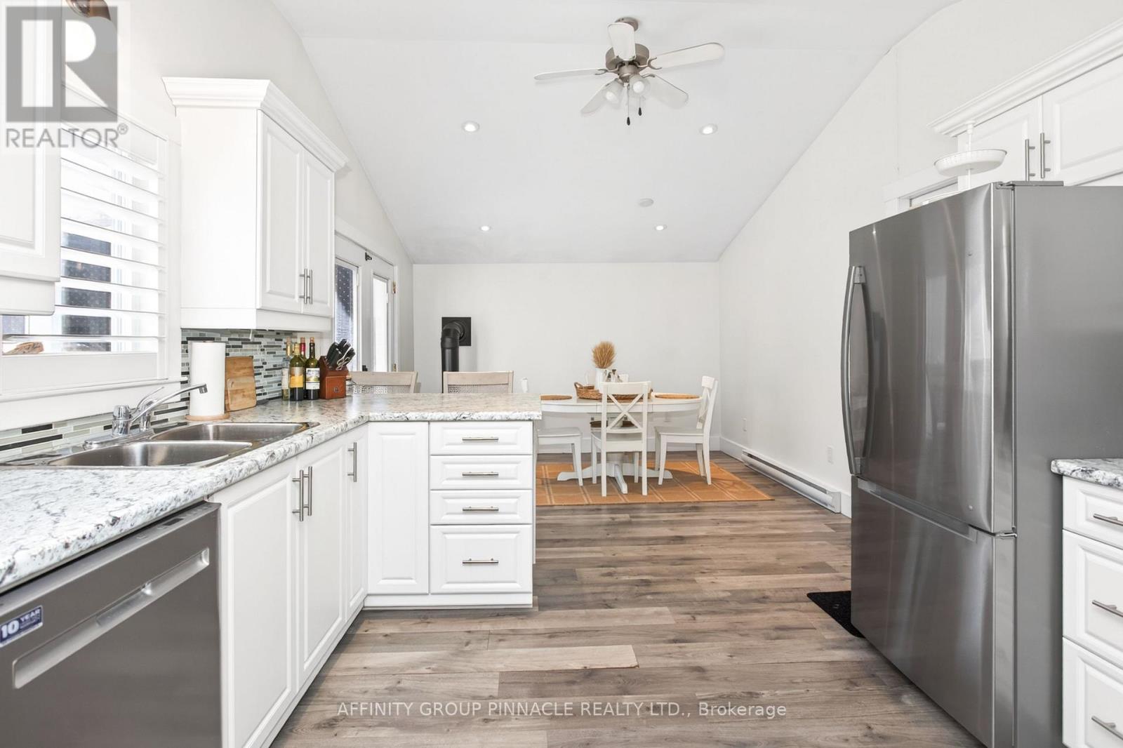 Remarkable fully renovated 3 bedroom, 2 bathroom bungalow in the heart of Fenelon Falls, just steps from beautiful Sturgeon Lake. This stunning home showcases extensive upgrades, including new laminate flooring, LED soffit lighting, pot lights, and elegant upper cabinet lighting in the kitchen. Additional features include new aluminum window castings, a striking exterior stone facade, water softener system, and California shutters throughout. Enjoy new French doors in both the bedroom and kitchen, plus many more thoughtful enhancements. With two gas fireplaces and ductless split this home is efficient for heating and a/c. Situated on a large lot with a spacious backyard, a second entrance to the property , extra parking available at the rear, and a new private back deck-perfect for soaking up the sun. Complete with deeded shared access to Sturgeon Lake, featuring a sandy, swimmable waterfront - this is the lifestyle you have been waiting for!! (id:61423)