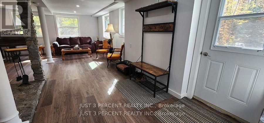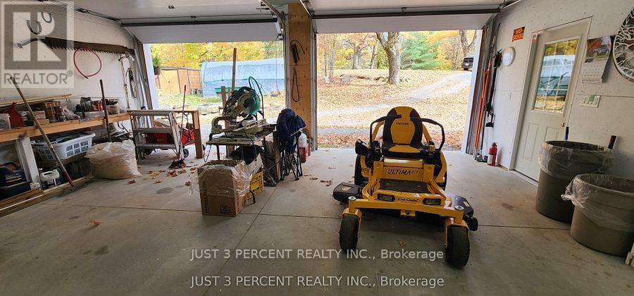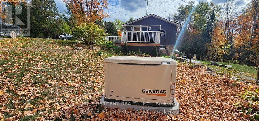 Welcome to God's country! Remarkable private 4-acre country location just outside of Apsley with a fully renovated walkout bungalow. Gorgeous grounds with many kinds of trees, shade all year. Rock gardens and perennials. Huge near-near triple garage with separate furnace. Loft overtop waiting for your finishing (North Star windows included for finishing). Office in garage. Walk in to this bright home that feels like new: great room with a dream kitchen featuring granite counters, huge island, ample cupboards, lovely engineered hardwood floors throughout, and living room. Large primary bedroom with laundry mere feet away from closets and drawers. Newly renovated lower level with attractive stone exterior. Large family room with huge bright windows and walkout, doesn't feel like a basement. Newer septic, roofing, almost everything. No worries about electricity with a full-house Generac generator system. Roughed in 2-piece bathroom in garage. Perfect home for a home business, retirees or weekend oasis retreat. Area has dozens of lakes nearby, and shopping and restaurants in Apsley and Bancroft. (id:61423)