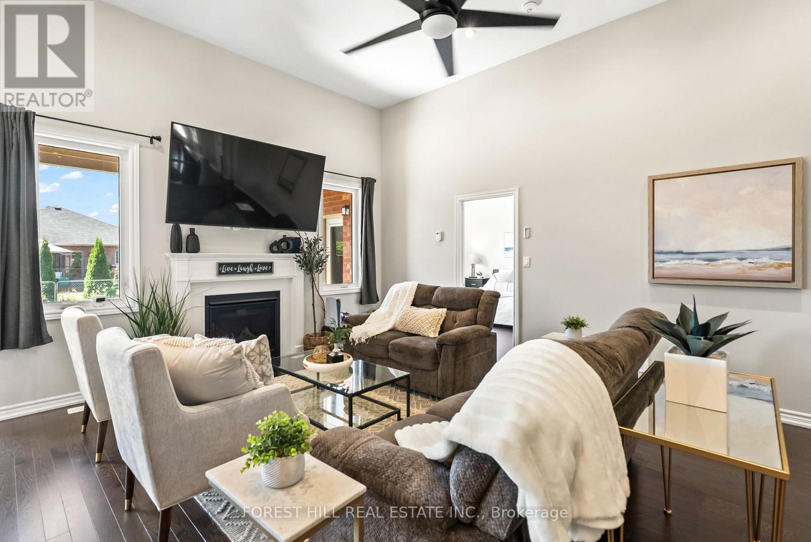 This newly built Somerset Model is 1800 sq ft on the main floor and is approx. 1600 sq ft below grade. Batavia Homes are known for quality and where timeless design meets upscale comfort. This custom 3 bedroom + 2 and 2 + 1 baths is light filled and filled with over $160,000 worth of upgrades. This executive bungalow offers over 3,000 sq. ft. of beautifully finished living space, tailored for discerning buyers seeking both elegance and functionality. Step through a grand foyer into sunlit principal rooms with soaring 12 ft high ceilings. Rich hardwood flooring is throughout the main area and designer finishes throughout. The chefs kitchen is complete with built-in appliances and opens seamlessly to a sophisticated Eat-In dining area with walkout access to the back patio, which is perfect for indoor-outdoor entertaining. The primary suite is a serene sanctuary featuring a spa-like ensuite with glass shower, soaker tub and a generous walk-in closet. The mostly finished lower level showcases a spacious recreation room with a gas fireplace, two additional bedrooms, and extensive storage, ideal for guests, entertaining and extended family. Enjoy the convenience of main floor laundry, an oversized, heated & fully insulated double garage, and premium mechanicals including on-demand hot water ( rental ), central air, and newer furnace. This stunning home is on a fully fenced lot with loads of space for relaxing. This home offers refined living just a few minutes walk from the charm of Hastings eateries, Groceries, Marina and more. Campbellford is a short drive, Peterborough is 35 minutes away and the natural beauty of Northumberland County surrounds. (id:61423)