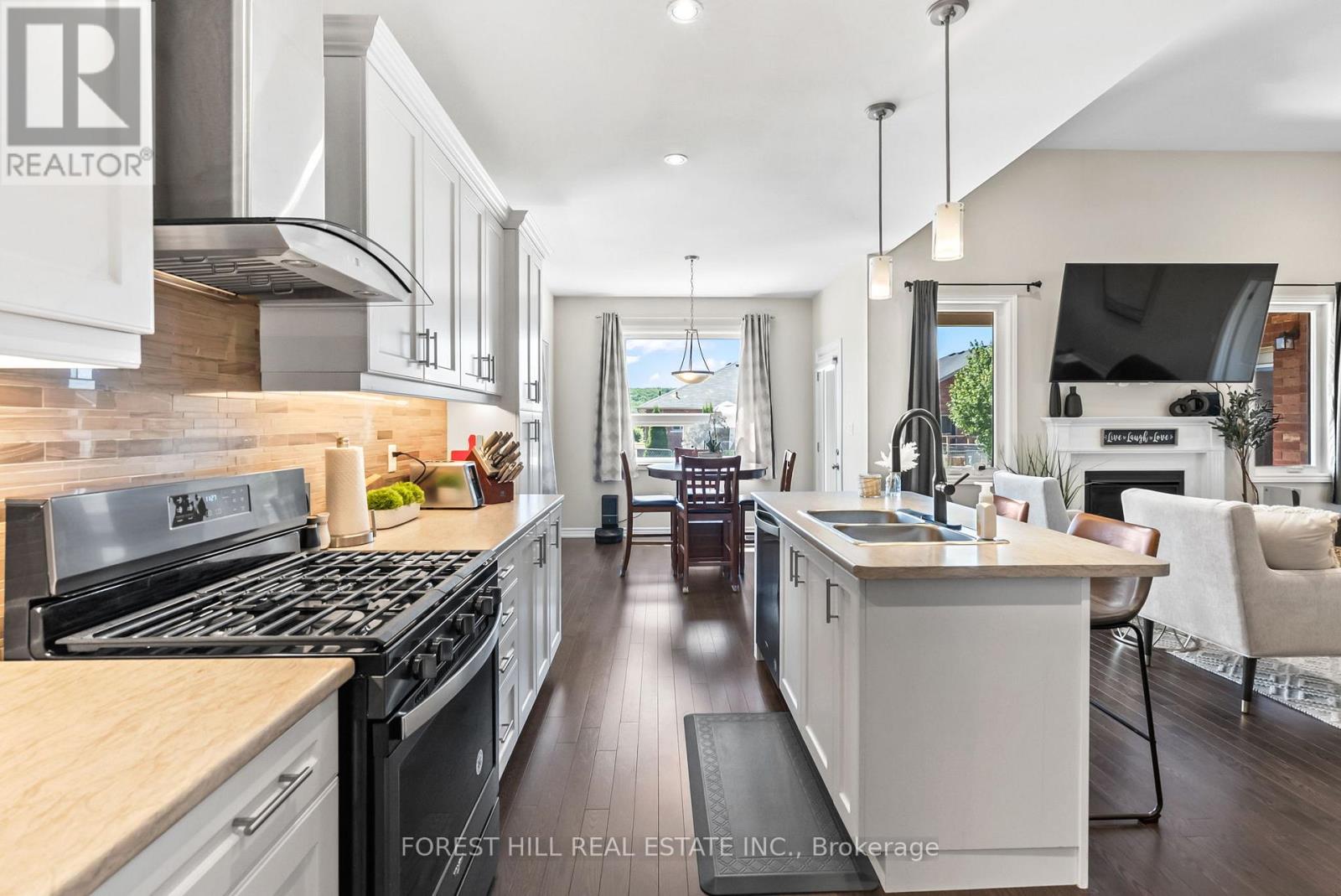 This newly built Somerset Model is 1800 sq ft on the main floor and is approx. 1600 sq ft below grade. Batavia Homes are known for quality and where timeless design meets upscale comfort. This custom 3 bedroom + 2 and 2 + 1 baths is light filled and filled with over $160,000 worth of upgrades. This executive bungalow offers over 3,000 sq. ft. of beautifully finished living space, tailored for discerning buyers seeking both elegance and functionality. Step through a grand foyer into sunlit principal rooms with soaring 12 ft high ceilings. Rich hardwood flooring is throughout the main area and designer finishes throughout. The chefs kitchen is complete with built-in appliances and opens seamlessly to a sophisticated Eat-In dining area with walkout access to the back patio, which is perfect for indoor-outdoor entertaining. The primary suite is a serene sanctuary featuring a spa-like ensuite with glass shower, soaker tub and a generous walk-in closet. The mostly finished lower level showcases a spacious recreation room with a gas fireplace, two additional bedrooms, and extensive storage, ideal for guests, entertaining and extended family. Enjoy the convenience of main floor laundry, an oversized, heated & fully insulated double garage, and premium mechanicals including on-demand hot water ( rental ), central air, and newer furnace. This stunning home is on a fully fenced lot with loads of space for relaxing. This home offers refined living just a few minutes walk from the charm of Hastings eateries, Groceries, Marina and more. Campbellford is a short drive, Peterborough is 35 minutes away and the natural beauty of Northumberland County surrounds. (id:61423)