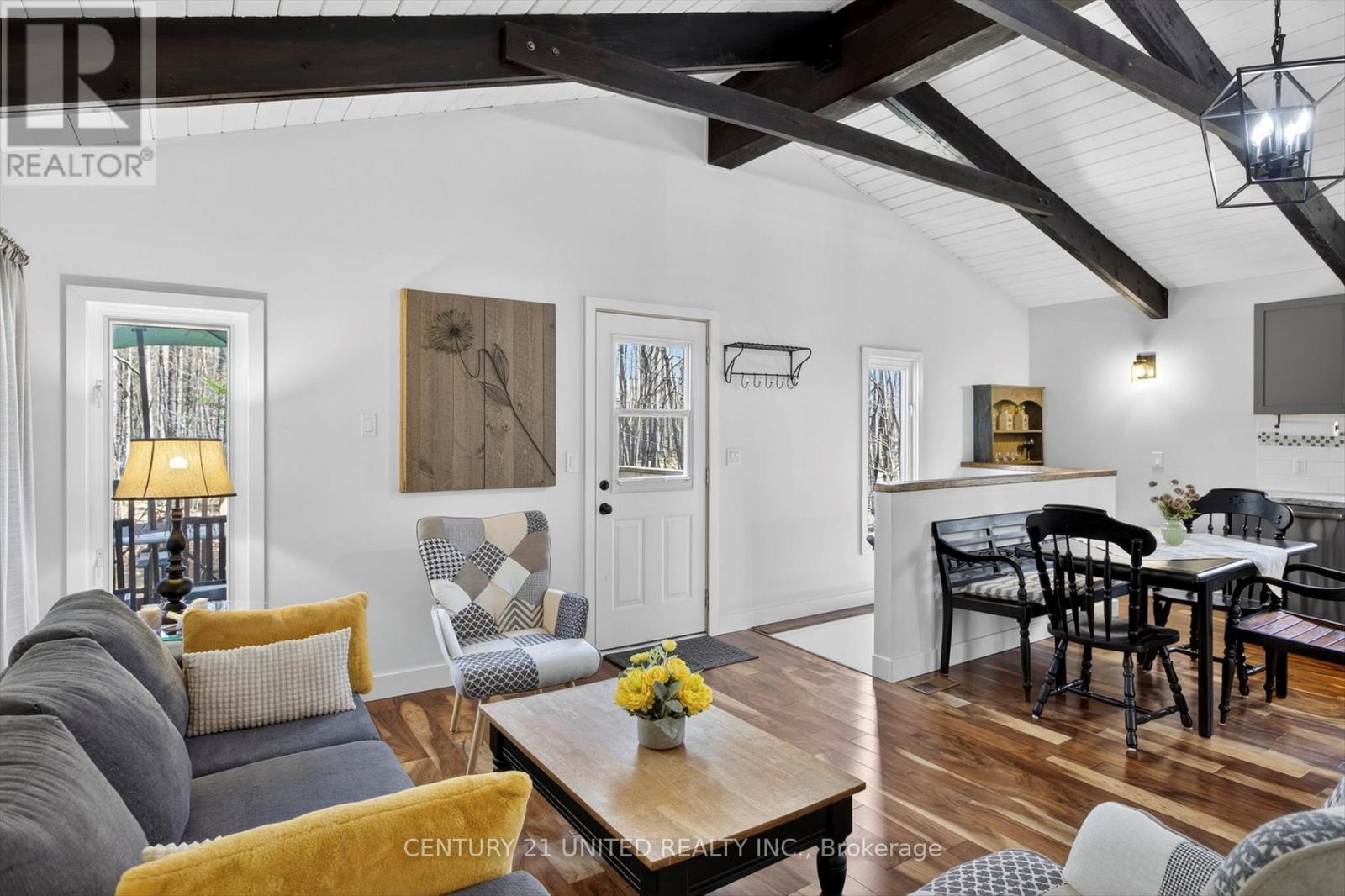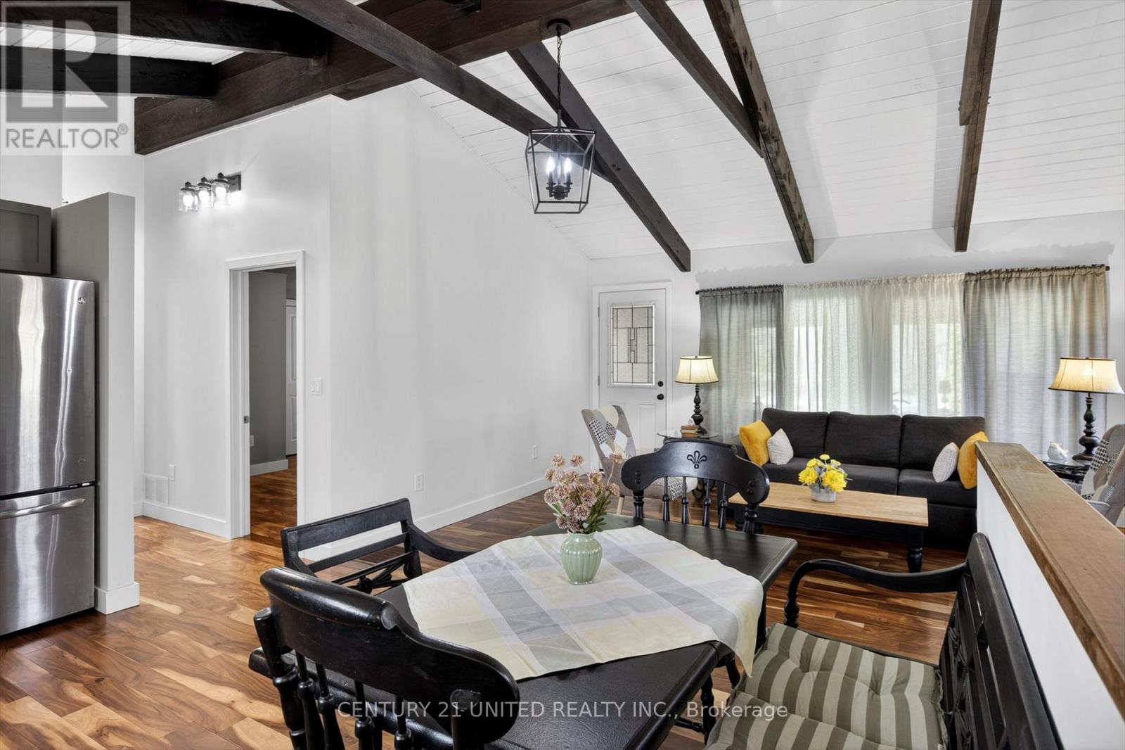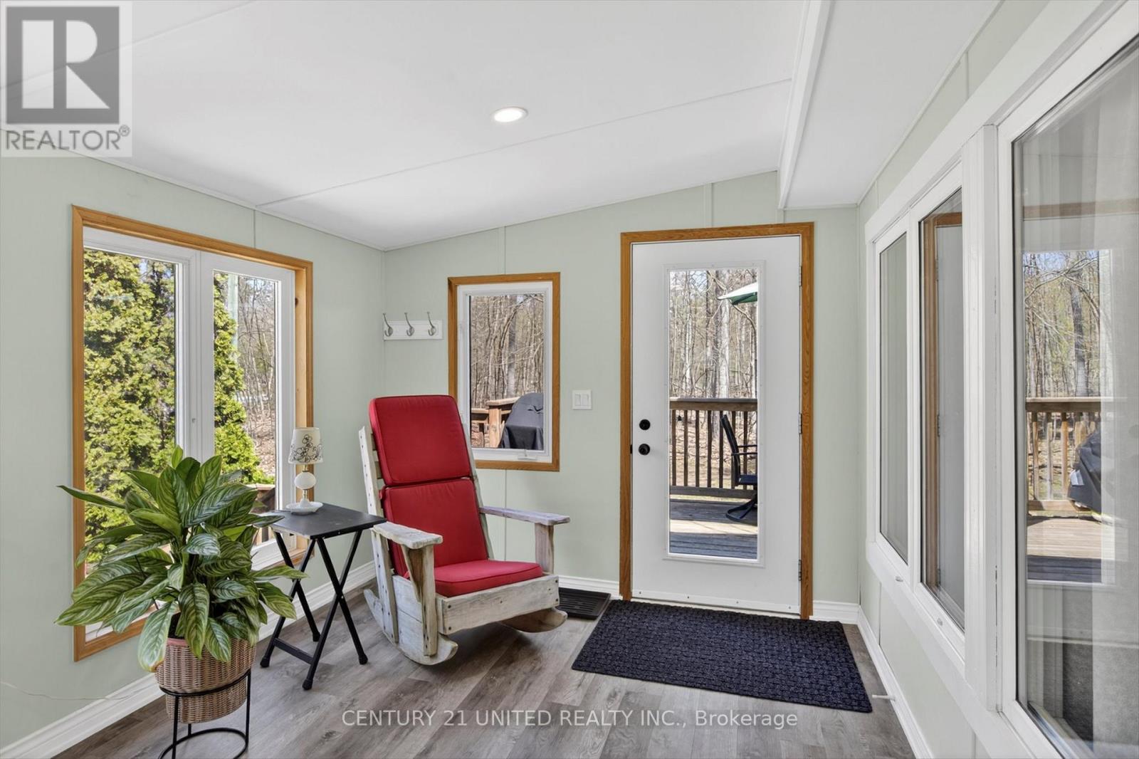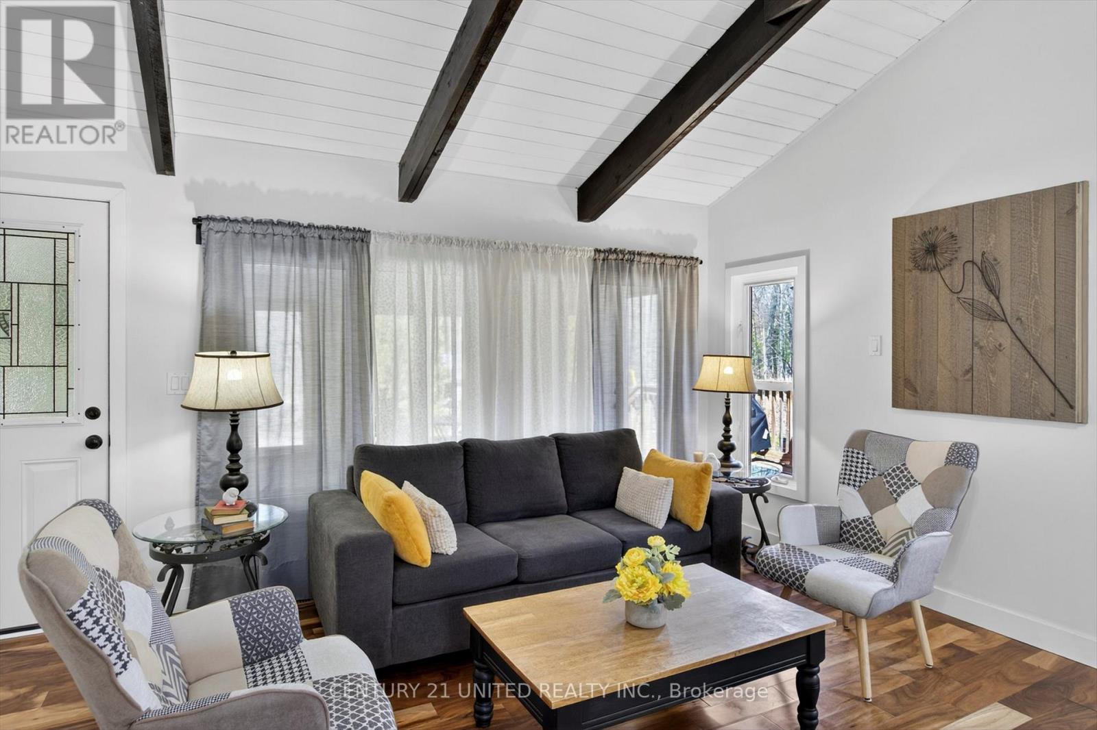 Turnkey country living in a sought-after waterfront community! Beautifully renovated 2+1 bedroom, 2 bath raised bungalow set on a private .97-acre lot at the end of a quiet cul-de-sac featuring deeded access to Pigeon Lake via a path from the backyard! Completely updated inside and out, this home offers a bright open-concept main floor with vaulted ceilings, exposed beams, a modern kitchen, 2 bedrooms, and a 3-piece bath. Walk out from the living room to a spacious, insulated 3-season sunroom and large deck overlooking the peaceful, treed setting. The finished lower level includes a generous rec room, an additional bedroom, 4-piece bath, laundry, and walkout access to a covered, enclosed porch with excellent storage space. Detached garage, mature level lot with a fire pit and endless potential to create the outdoor oasis you dream of! Space to add a dock at the water's edge, inviting you to make the most of your summer boating on the Trent-Severn Waterway! Nothing left to do but move in and enjoy. Located just minutes to Lakehurst, Buckhorn and 30 minutes to Peterborough - ideal for year-round living, air bnb or your very own recreational retreat. (id:61423)