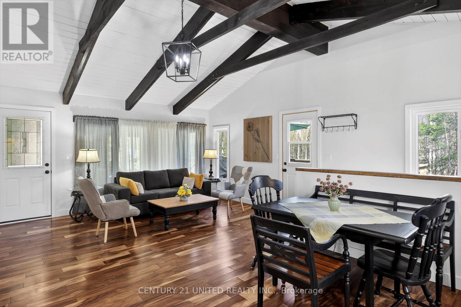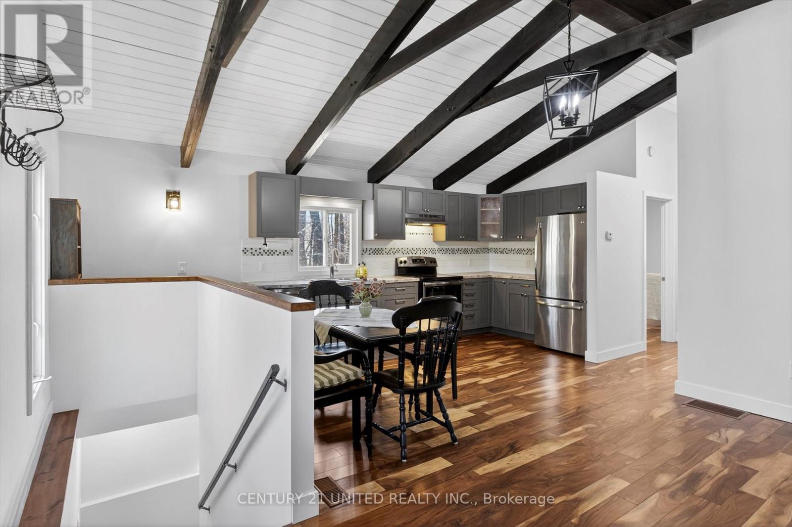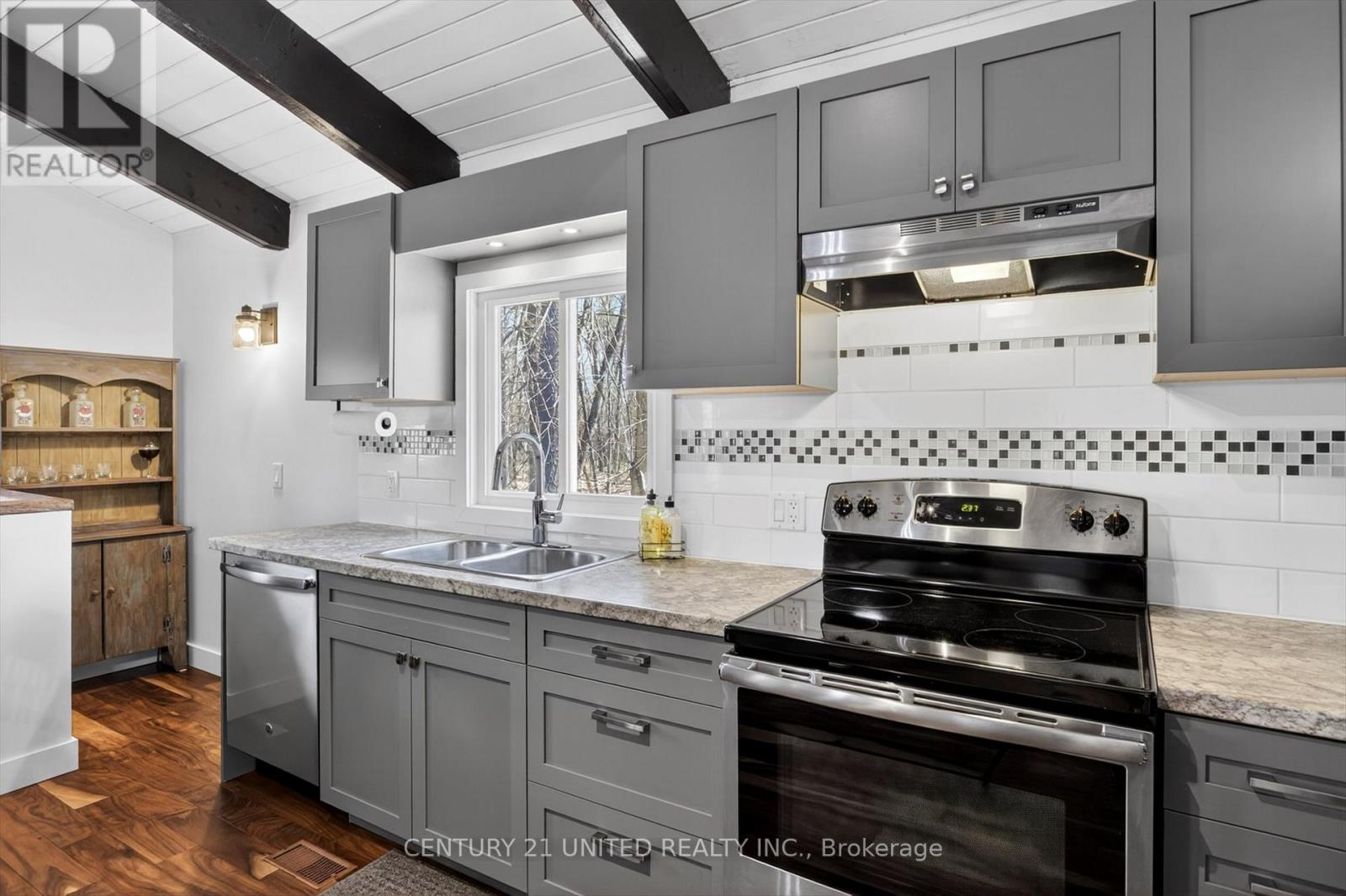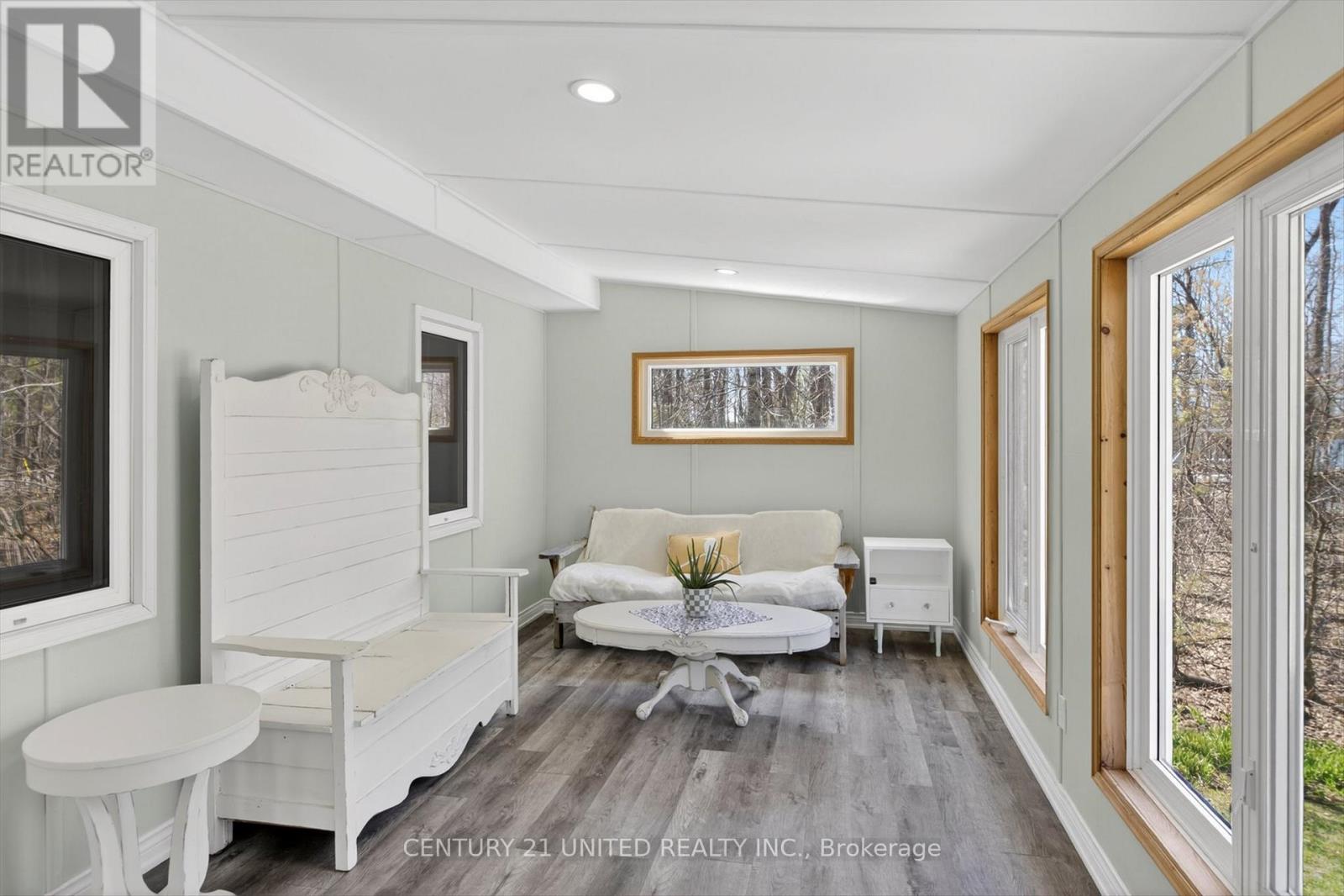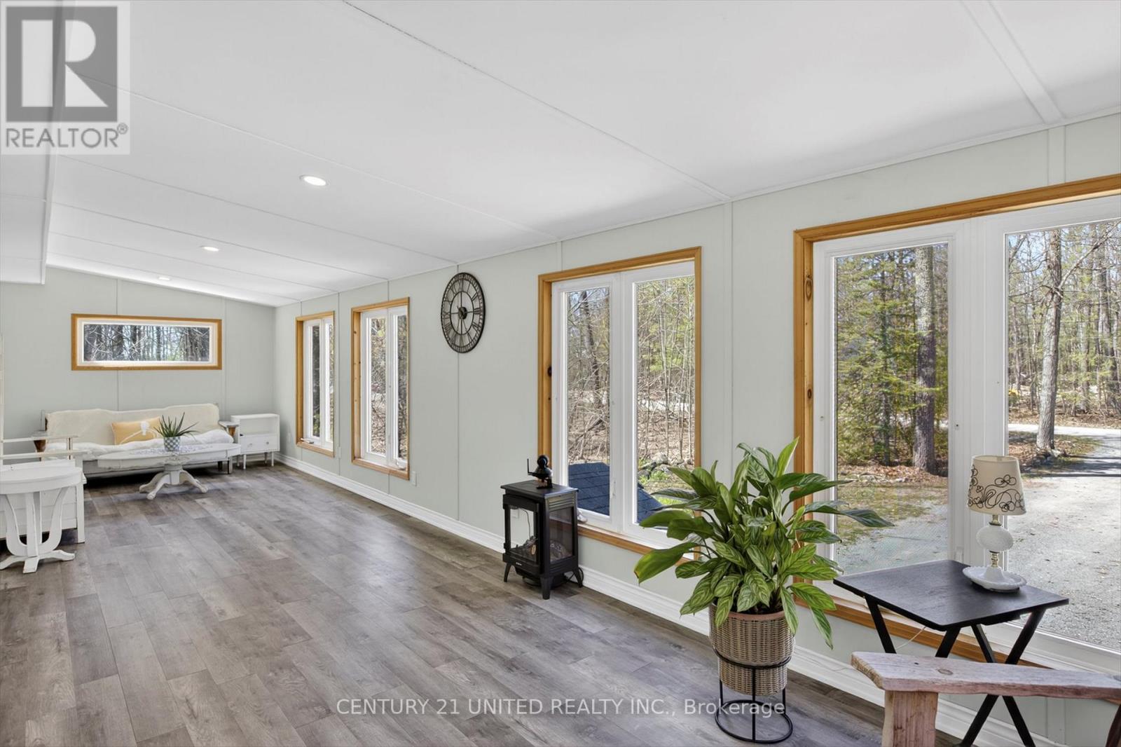 Turnkey country living in a sought-after waterfront community! Beautifully renovated 2+1 bedroom, 2 bath raised bungalow set on a private .97-acre lot at the end of a quiet cul-de-sac featuring deeded access to Pigeon Lake via a path from the backyard! Completely updated inside and out, this home offers a bright open-concept main floor with vaulted ceilings, exposed beams, a modern kitchen, 2 bedrooms, and a 3-piece bath. Walk out from the living room to a spacious, insulated 3-season sunroom and large deck overlooking the peaceful, treed setting. The finished lower level includes a generous rec room, an additional bedroom, 4-piece bath, laundry, and walkout access to a covered, enclosed porch with excellent storage space. Detached garage, mature level lot with a fire pit and endless potential to create the outdoor oasis you dream of! Space to add a dock at the water's edge, inviting you to make the most of your summer boating on the Trent-Severn Waterway! Nothing left to do but move in and enjoy. Located just minutes to Lakehurst, Buckhorn and 30 minutes to Peterborough - ideal for year-round living, air bnb or your very own recreational retreat. (id:61423)