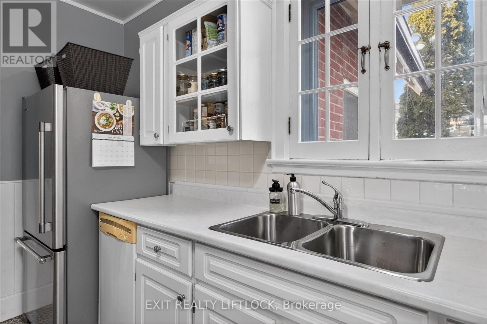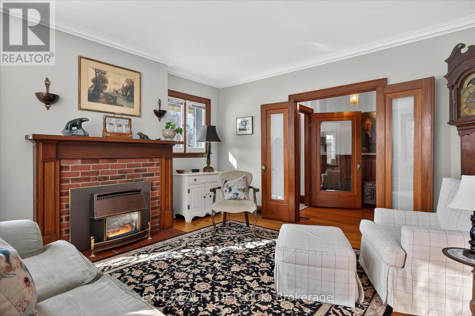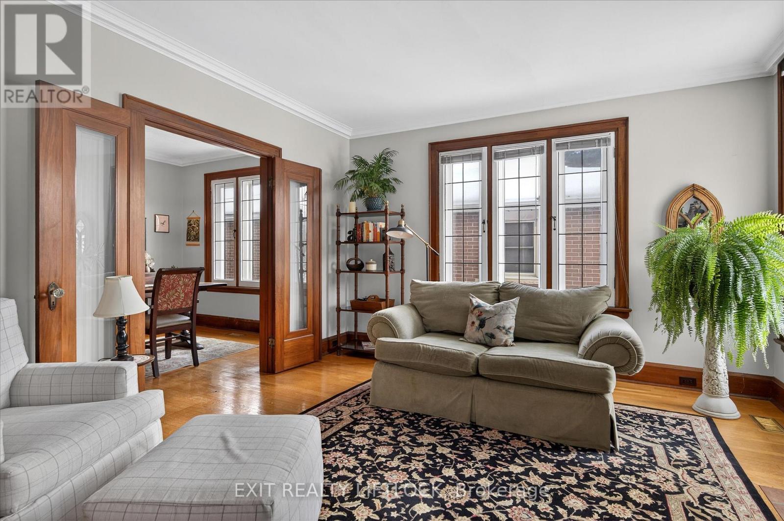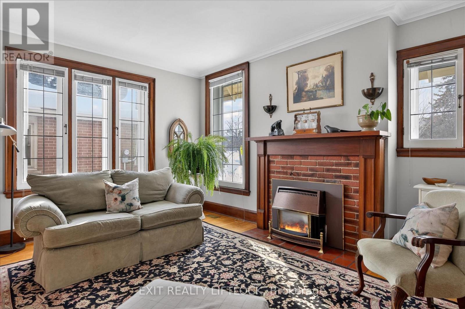 Charming English-style cottage bungalow located in Peterborough's highly sought-after Old West End, showcasing timeless architectural details and enduring craftsmanship. The home features a stone facade, steeply pitched gable roof, prominent stone chimney, classic multi-pane windows, and hardwood floors that reflect the quality of its era. Inside, original gumwood trim adds warmth and character, beautifully preserving the home's historic appeal. Additional living space is provided by a bright and inviting sunroom overlooking perennial gardens-an ideal spot to relax and enjoy the mature, landscaped surroundings. Along with its charming features, the home offers peace of mind with thoughtful updates completed over the past eight years, including a new electrical panel, renovated main-floor bathroom, all new eavestroughs and downspouts with leaf guards, Gentek windows throughout the home, and a newly installed basement egress window. The basement was professionally renovated in 2024 including spray foam insulation, updated plumbing, a 4-piece bathroom with double sinks and modern electrical outlets with USB A & C. A side entrance provides potential for an in-law suite setup. Ideally situated within walking distance to Peterborough's beloved Jackson Park, directly across from the beautifully maintained grounds of The Mount, and close to schools, the hospital, recreational facilities, and amenities. This home offers a rare blend of classic Old West End character and modern updates that buyers are seeking. Don't miss this gem of a home!! (id:61423)