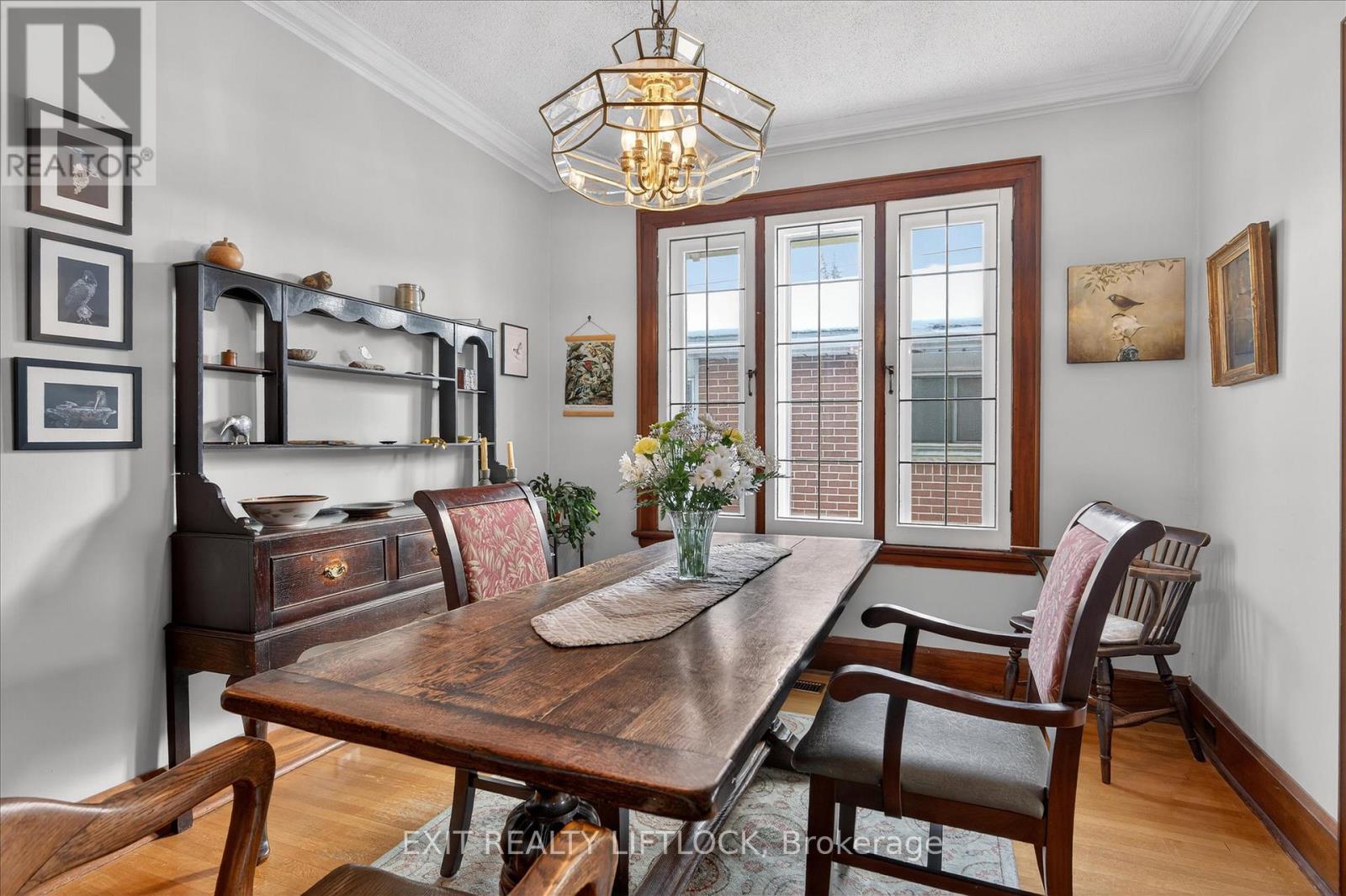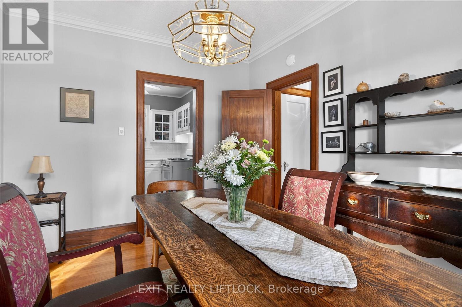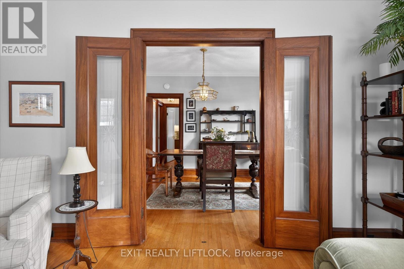 Charming English-style cottage bungalow located in Peterborough's highly sought-after Old West End, showcasing timeless architectural details and enduring craftsmanship. The home features a stone facade, steeply pitched gable roof, prominent stone chimney, classic multi-pane windows, and hardwood floors that reflect the quality of its era. Inside, original gumwood trim adds warmth and character, beautifully preserving the home's historic appeal. Additional living space is provided by a bright and inviting sunroom overlooking perennial gardens-an ideal spot to relax and enjoy the mature, landscaped surroundings. Along with its charming features, the home offers peace of mind with thoughtful updates completed over the past eight years, including a new electrical panel, renovated main-floor bathroom, all new eavestroughs and downspouts with leaf guards, Gentek windows throughout the home, and a newly installed basement egress window. The basement was professionally renovated in 2024 including spray foam insulation, updated plumbing, a 4-piece bathroom with double sinks and modern electrical outlets with USB A & C. A side entrance provides potential for an in-law suite setup. Ideally situated within walking distance to Peterborough's beloved Jackson Park, directly across from the beautifully maintained grounds of The Mount, and close to schools, the hospital, recreational facilities, and amenities. This home offers a rare blend of classic Old West End character and modern updates that buyers are seeking. Don't miss this gem of a home!! (id:61423)