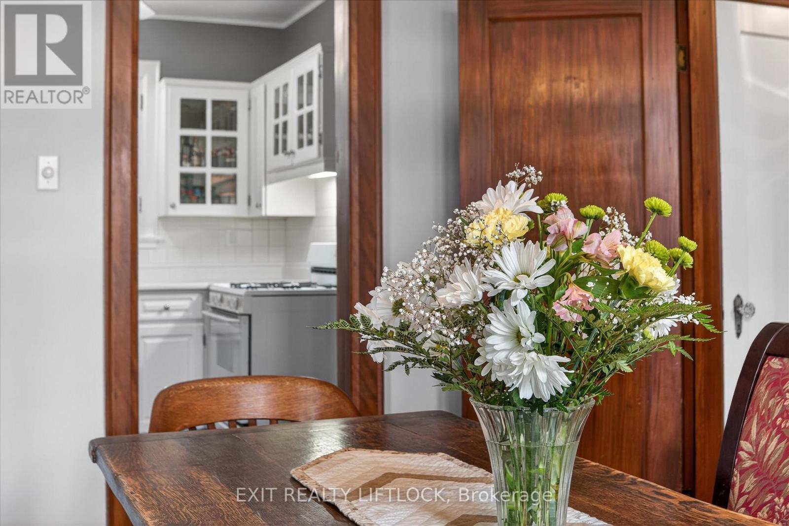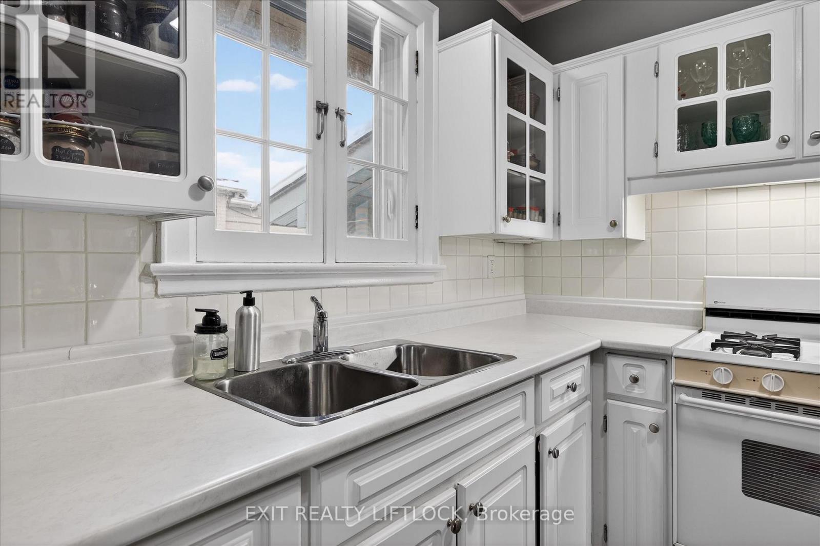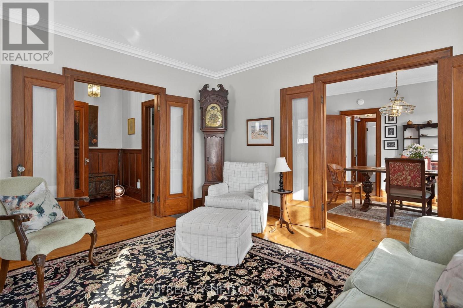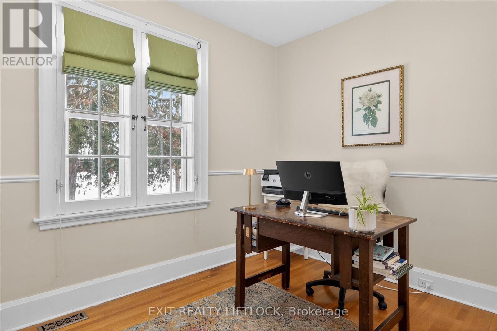 Charming English-style cottage bungalow located in Peterborough's highly sought-after Old West End, showcasing timeless architectural details and enduring craftsmanship. The home features a stone facade, steeply pitched gable roof, prominent stone chimney, classic multi-pane windows, and hardwood floors that reflect the quality of its era. Inside, original gumwood trim adds warmth and character, beautifully preserving the home's historic appeal. Additional living space is provided by a bright and inviting sunroom overlooking perennial gardens-an ideal spot to relax and enjoy the mature, landscaped surroundings. Along with its charming features, the home offers peace of mind with thoughtful updates completed over the past eight years, including a new electrical panel, renovated main-floor bathroom, all new eavestroughs and downspouts with leaf guards, Gentek windows throughout the home, and a newly installed basement egress window. The basement was professionally renovated in 2024 including spray foam insulation, updated plumbing, a 4-piece bathroom with double sinks and modern electrical outlets with USB A & C. A side entrance provides potential for an in-law suite setup. Ideally situated within walking distance to Peterborough's beloved Jackson Park, directly across from the beautifully maintained grounds of The Mount, and close to schools, the hospital, recreational facilities, and amenities. This home offers a rare blend of classic Old West End character and modern updates that buyers are seeking. Don't miss this gem of a home!! (id:61423)