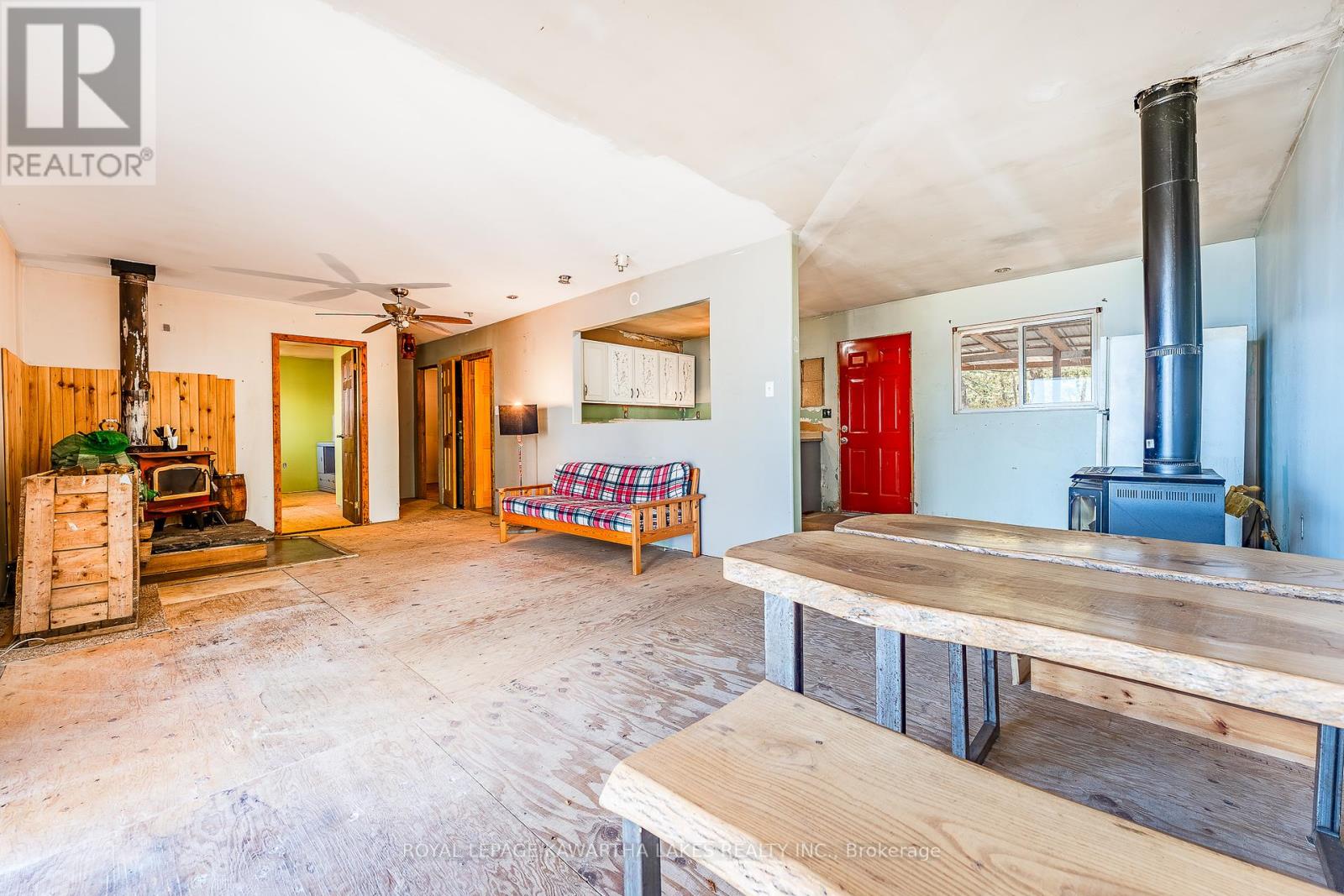 Welcome to your opportunity on beautiful Four Mile Lake! This 2-bedroom, 1-bath cottage sits in an elevated position overlooking the lake, offering stunning panoramic views and wonderful privacy. The shoreline features a prestine mix of sandy and rocky bottom, ideal for swimming, boating, and lakeside fun. While there are no steps currently, this property gives you the chance to design and create your own custom pathway or staircase to the water exactly how you like to enjoy it. Inside, youll find a kitchen, dining area, and living room warmed by both a woodstove and a propane stove. The property already has a septic system and a drilled well, giving you a strong foundation for either gutting and renovating the current cottage or tearing down to build your dream cottage or year-round home. Please do not walk or trespass on the property without your real estate agent present. The terrain is steep in areas, and we want to ensure all viewings are safe. A true diamond in the rough, this property combines natural beauty, privacy, and incredible potential. Whether you restore the existing cottage or start fresh, the setting ensures it will always be a special place to call your own. (id:61423)