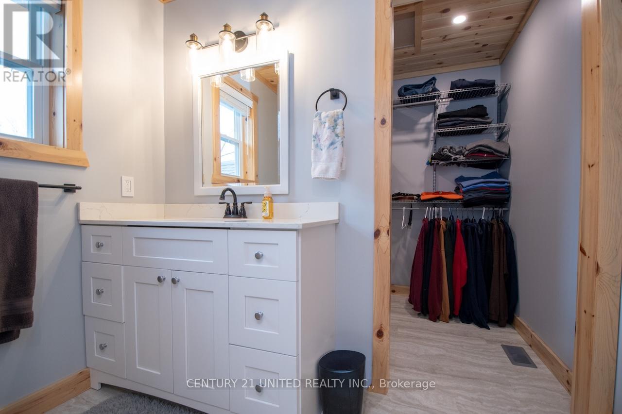 Welcome to your new home. Level lot, 4-season access, this newer build does not disappoint. Radiant in-floor heat in attached garage. Forced Air Propane, on-demand hot water tank, and central air/ heat pump. Main-floor laundry, powder room, and a big, bright & beautiful kitchen ready to make memories. Spacious open-concept layout with beautiful T&G ceiling and sliding doors taking you to your back yard oasis. Private, and you can take in a real-life nature show with deer coming right up to graze. Warm summer evenings will never be the same on your covered porch, enjoying a good book, or BBQ with friends and family. Back inside and upstairs, where you will find two good-sized bedrooms with closets and a master bedroom with a large walk-in closet and a 3-piece ensuite. A 4-piece bathroom is also located on the second level. Quick 10 min drive to all the amenities Bancroft has to offer. Minutes to boat launch, beach, and so much more! (id:61423)