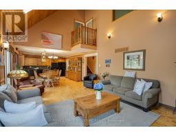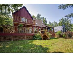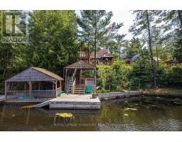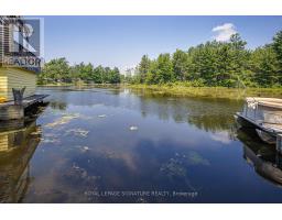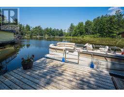 Postcard Perfect Waterfront Living! This beautifully maintained 3+1 bedroom, 3 bath year-round home offers big boat access to the Trent Severn Waterway and features cathedral ceilings, hardwood floors, and a floor-to-ceiling stone fireplace in an open-concept layout with multiple walkouts to a large deck showcasing stunning water views. The finished lower level includes a spacious rec room, games area, built-in sauna in the washroom basement and elevated wet bar-ideal for entertaining. The primary suite boasts a walkout balcony, 5-piece ensuite, walk-through closet, and private studio/office space. Enjoy deep water access, covered wet slip, plus attached and detached garages for all your waterfront lifestyle needs. (id:61423)
