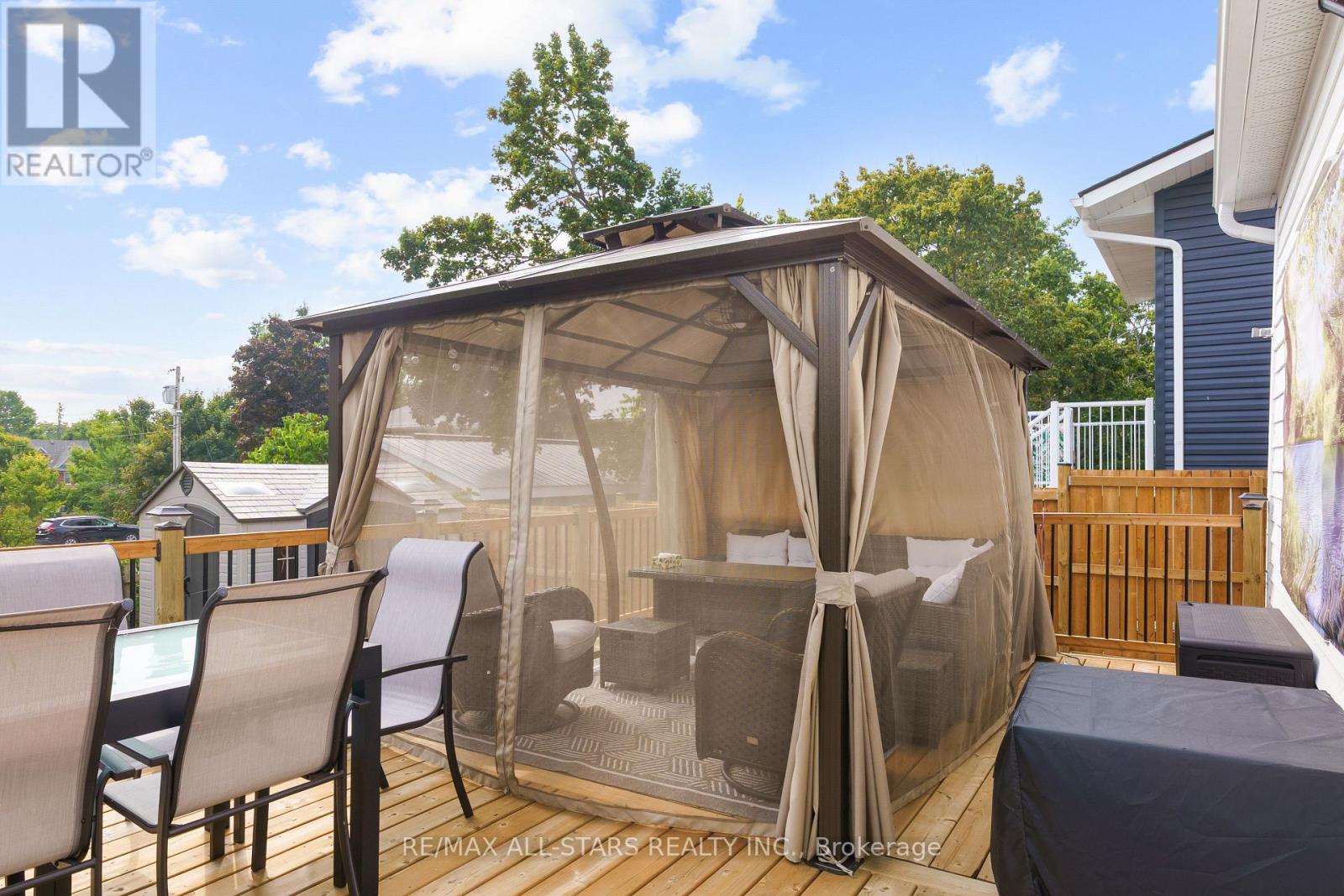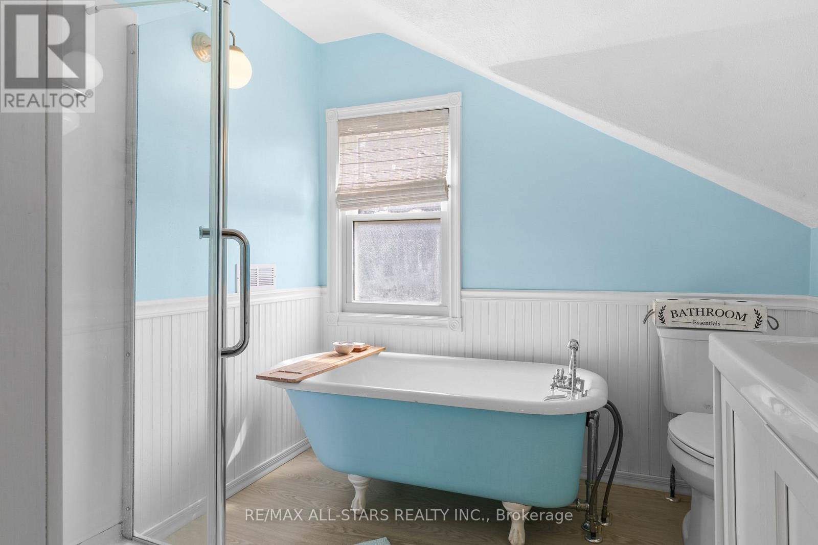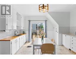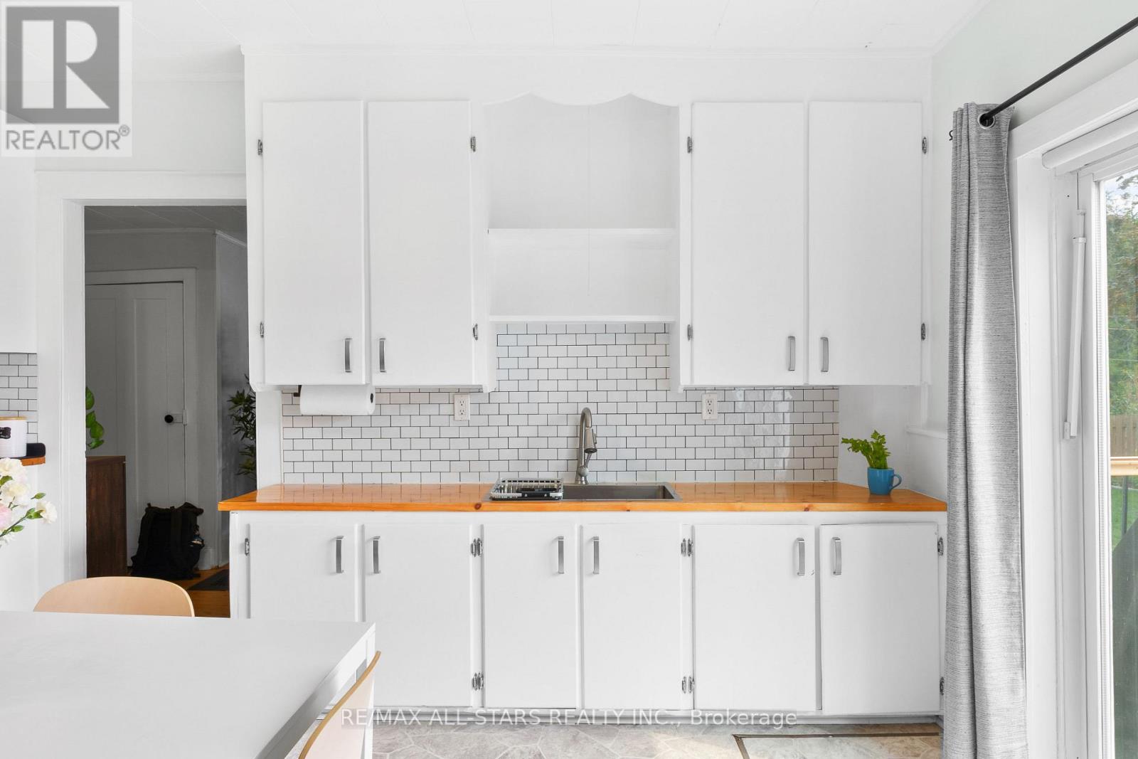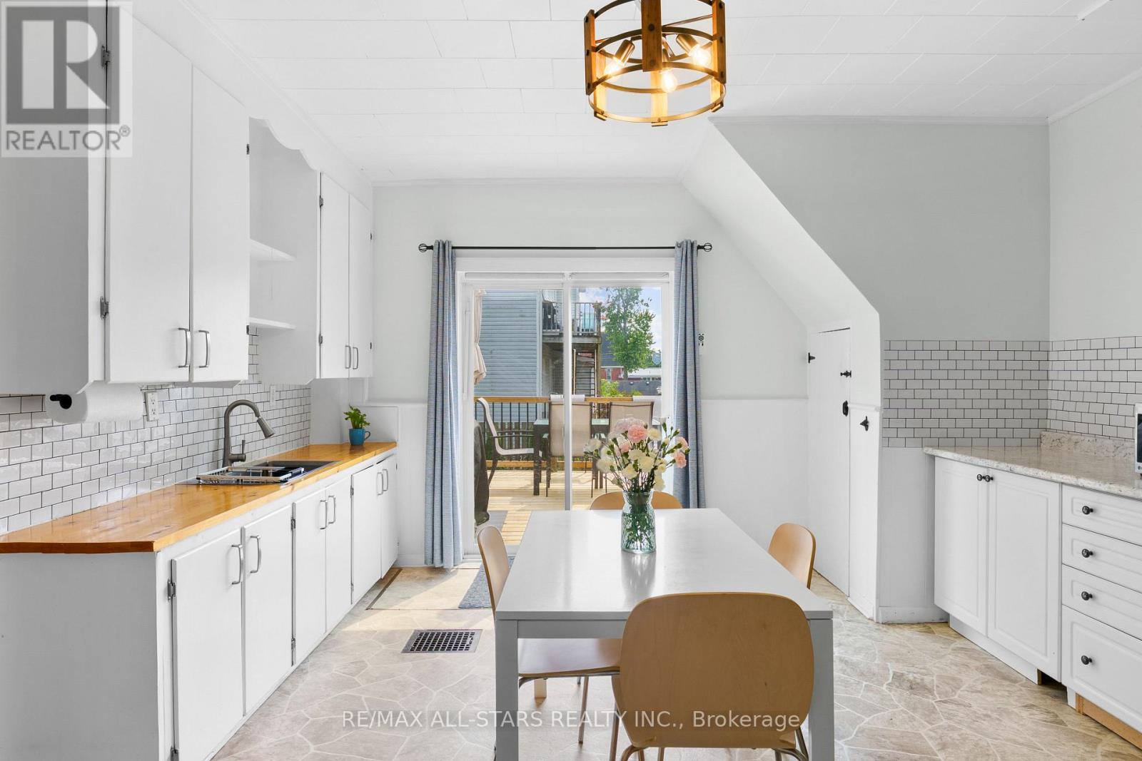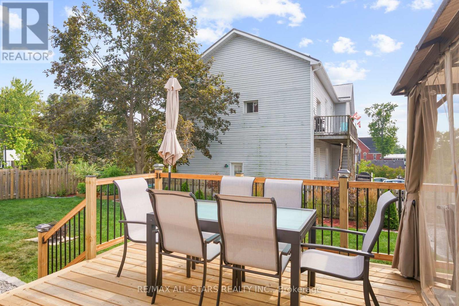 This delightful 1.5-storey home offers the perfect blend of character and modern updates, all within walking distance to the heart of Fenelon Falls. Situated on a beautifully landscaped 0.201-acre lot, the property features a newly built (2024) deck, lush new sod, rock pathways, and vibrant flower beds creating an inviting outdoor oasis. Step inside to a spacious covered front porch, ideal for morning coffee or relaxing evenings. The large eat-in kitchen boasts stylish butcher block countertops and a walkout to the deck and fully fenced side yard, perfect for entertaining. The main floor also includes a bright living room, updated 2-piece powder room (2023), and a formal dining room with new laminate flooring (2024). Plans are currently underway to add a main floor bedroom and a separate laundry room, enhancing both convenience and functionality. Upstairs, you'll find coxy carpeting, three bedrooms, and a charming 4-piece bathroom featuring a classic clawfoot tub. The home also includes a basement/crawlspace, offering additional storage and utility space. With its prime location, thoughtful updates, and functional layout, this home is an excellent option for families, retirees, or anyone looking to enjoy all that Fenelon Falls has to offer. (id:61423)