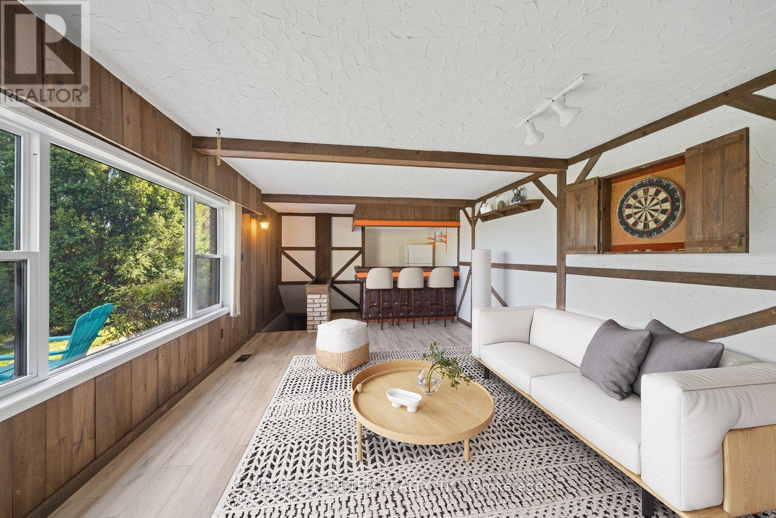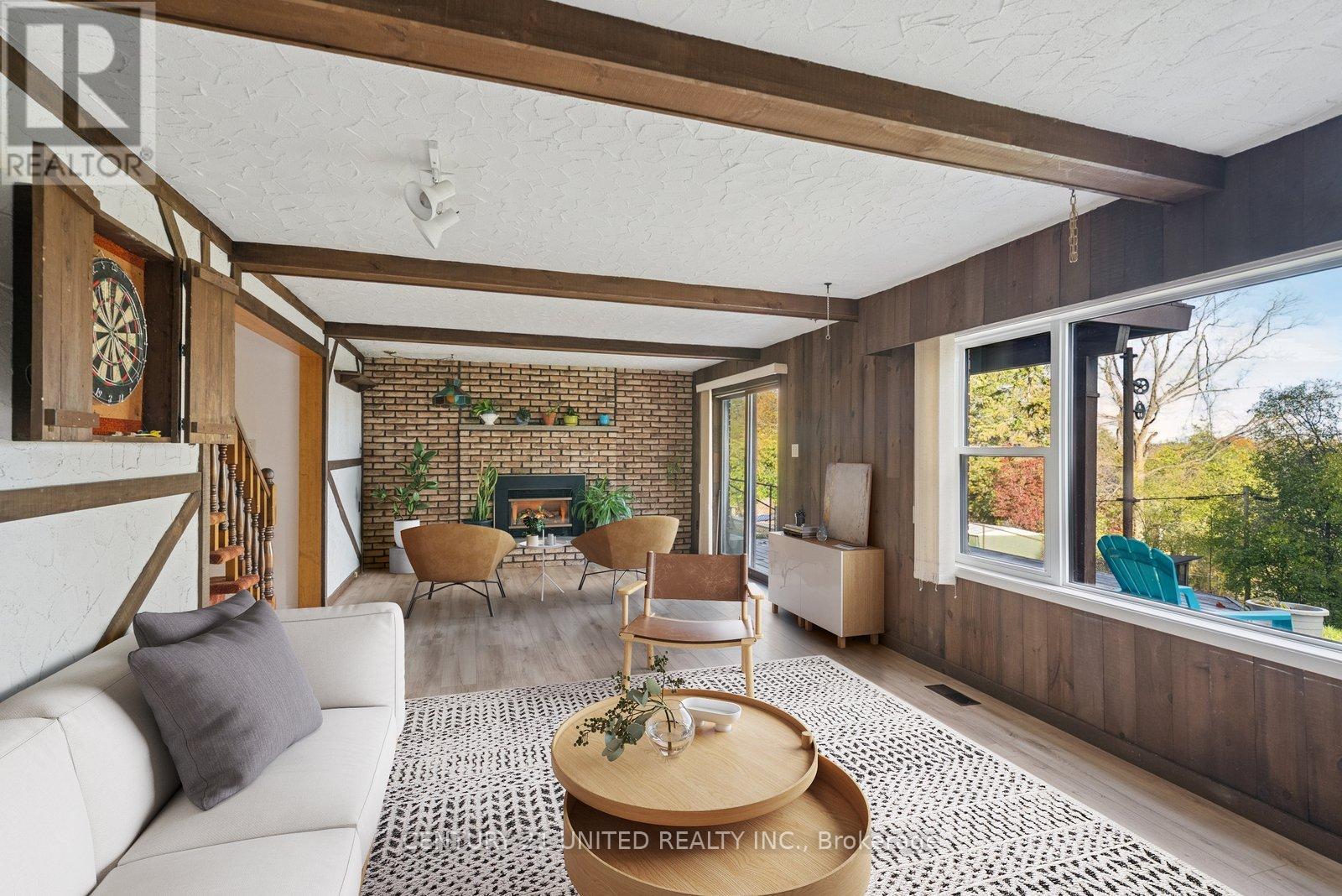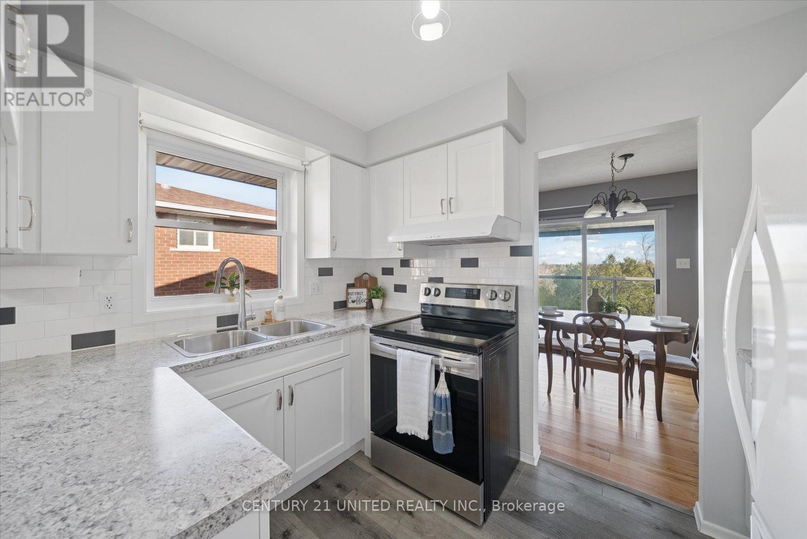 Welcome to this beautifully maintained all-brick bungalow in one of Peterborough's most desirable family-friendly West End neighbourhoods. This 4-bedroom, 2-bathroom home is filled with warmth and natural light making you feel right at home as soon as you walk through the front door.The main floor features a spacious, sunlit living room, a formal dining area, and an updated kitchen with a cozy breakfast nook. Step out onto the covered deck and take in the stunning views - the perfect spot to relax and take in the morning and afternoon sun. The main floor also showcases a large primary bedroom, two additional bedrooms, and a 4-piece bathroom. Downstairs, you'll find a bright and inviting family room with a gas fireplace and walkout to another covered sitting area. This level also includes a spacious bedroom, 3-piece bathroom, laundry area, workshop, and plenty of storage space. Venture down more stairs to a bonus lower level, offering endless possibilities for more storage, a craft room, playroom, gym, or home office. Outside, enjoy the lovely landscaping, multiple seating areas, attached 2-car garage and stairs down the side of that home that lead to the basement walkout. Located close to parks, great schools, and all west-end amenities. This one owner home is larger than it appears and offers the perfect blend of comfort, functionality, and pride of ownership. (id:61423)