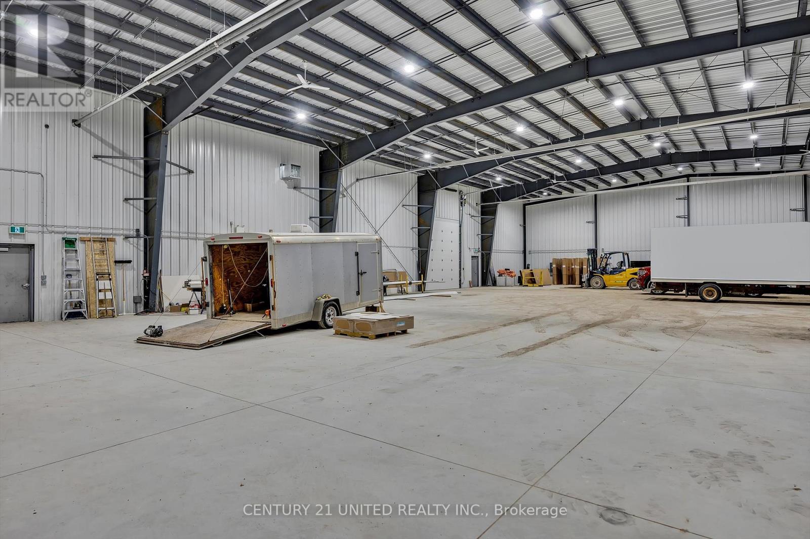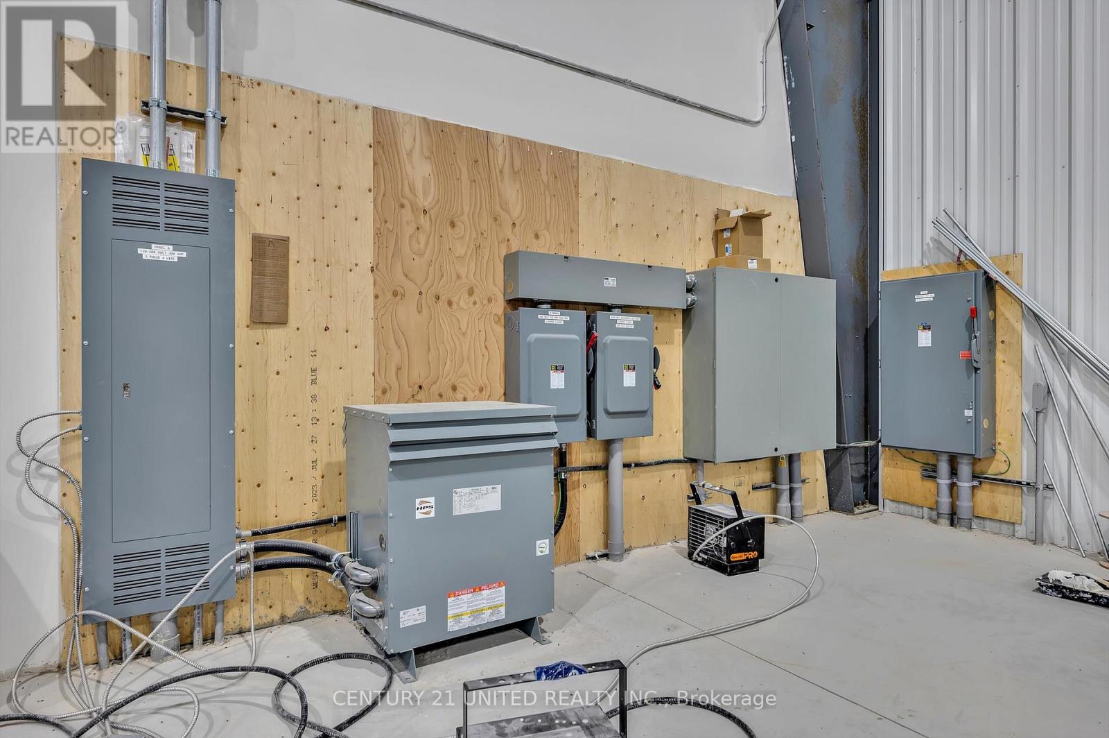 Truely impressive new pre-engineered Robertson Steel industrial commercial building. Includes 3,364 Sq.Ft of office and showroom and 636 Sq.Ft of mezzanine. 10,000 sq ft open span manufacturing/warehouse space. Building is 24 feet clear to eaves, maximum upgraded insulation/fire rated panels on exterior including roof, HVAC natural gas for offices and radiant gas heat. Rural Industrial zoning allows for many industrial/commercial uses. 40 plus spaces for car parking, truck parking and turning radius. Compound area or for possible building expansion. Please see documents for zoning bylaw, site plan, building plans and septic approval. Environmental studies and remediation have been completed. Power is 600 volts, 400 amps. 3 phase with tie in panels on all exterior walls fo warehouse/manufacturing area. (id:61423)