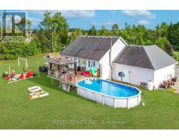 Welcome home to this beautifully crafted 5 bedroom, 3 bath raised bungalow, built in 2006 and set on a private 1.89-acre country lot. A large driveway and inviting entrance welcome you into this thoughtfully designed home. The open-concept main floor is perfect for modern living, featuring a bright chefs kitchen with pantry, coffee bar, and walkout to the back deck, seamlessly flowing into the dining and living areas. The grand primary suite offers its own private ensuite for comfort and relaxation. The finished lower level is ideal for family gatherings and entertaining, complete with a spacious rec room, full bar, three additional bedrooms, and a 3rd full bath. A combined laundry/utility space and convenient walk-up access to the attached garage add to the homes functionality. Step outside and enjoy evenings on the deck overlooking fields with no neighbours behind perfect for summer fun in the above-ground pool and watching picturesque sunsets. Bonus enclosed hot tub garden cabin. Centrally located just minutes from Lindsay and Peterborough, this property offers the best of country living with easy access to town amenities. Make this your next family home and start creating lasting memories here! (id:61423)