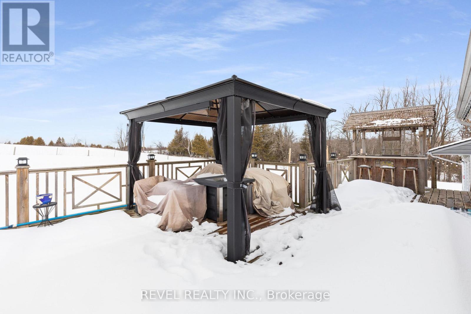 Beautifully crafted 5 bedroom, 3 bathroom raised bungalow set on a private 1.89-acre country lot. A large driveway and inviting entrance welcome you into this thoughtfully designed home. The open-concept main floor is perfect for modern living, featuring a bright chefs kitchen with pantry, coffee bar, and walkout to the back deck, seamlessly flowing into the dining and living areas. The grand primary suite offers its own private ensuite for comfort and relaxation. The finished lower level is ideal for family gatherings and entertaining, complete with a spacious rec room, full bar, three additional bedrooms, and a 3rd full bath. A combined laundry/utility space and convenient walk-up access to the attached garage add to the homes functionality. Step outside and enjoy evenings on the deck overlooking fields with no neighbours behind perfect for summer fun in the above-ground pool and watching picturesque sunsets. Bonus backyard spa oasis ready for relaxation. Centrally located just minutes from Lindsay and Peterborough, this property offers the best of country living with easy access to town amenities. Make this your next family home and start creating lasting memories here! (id:61423)