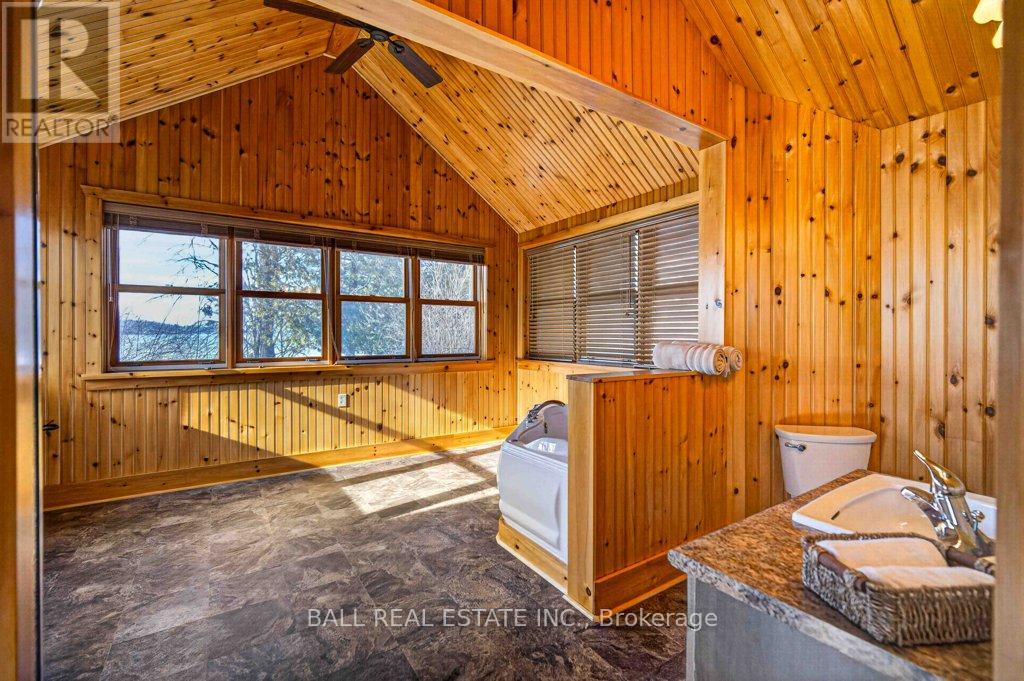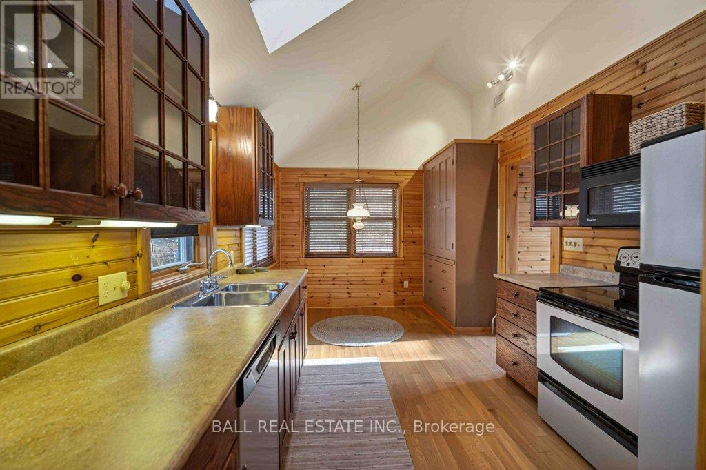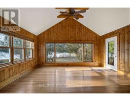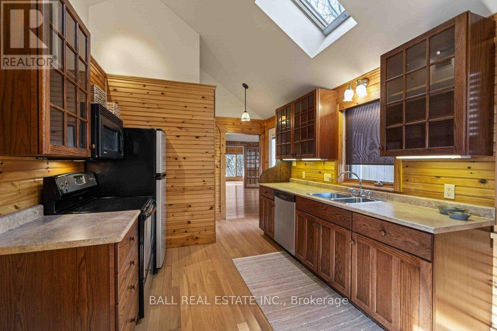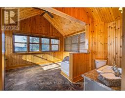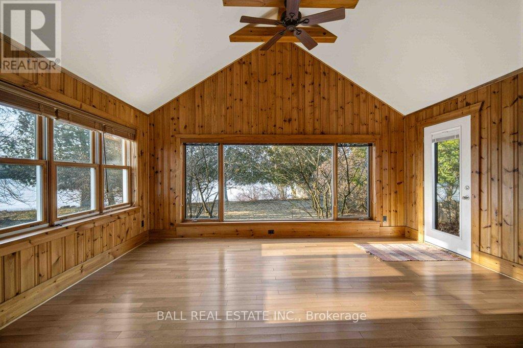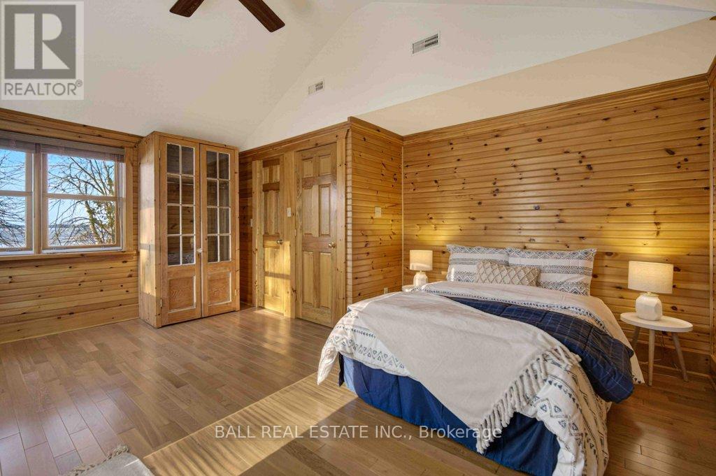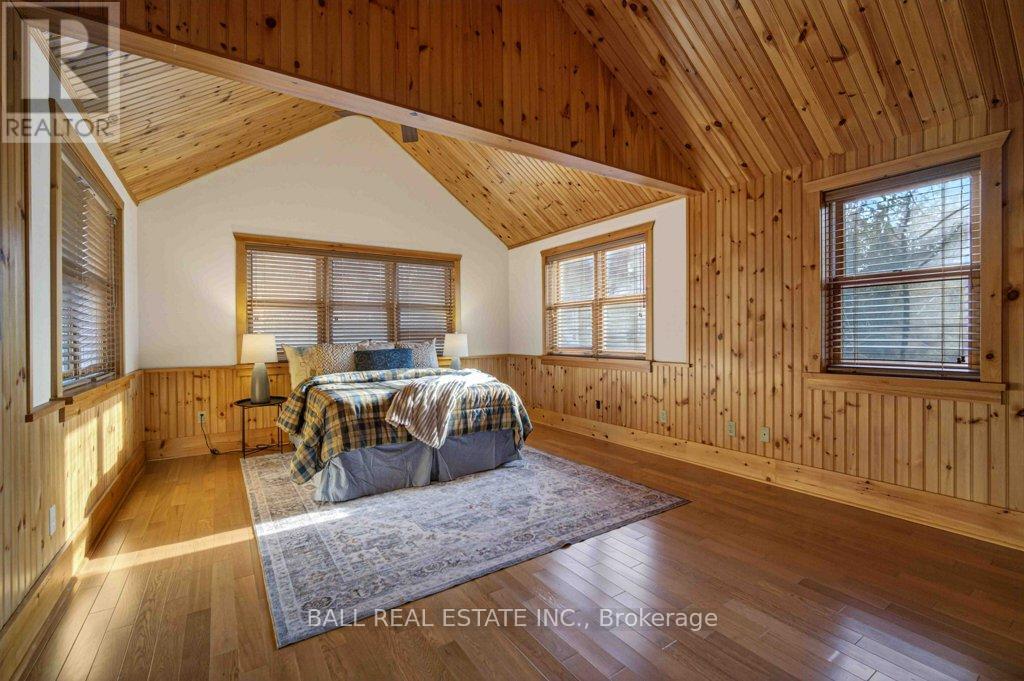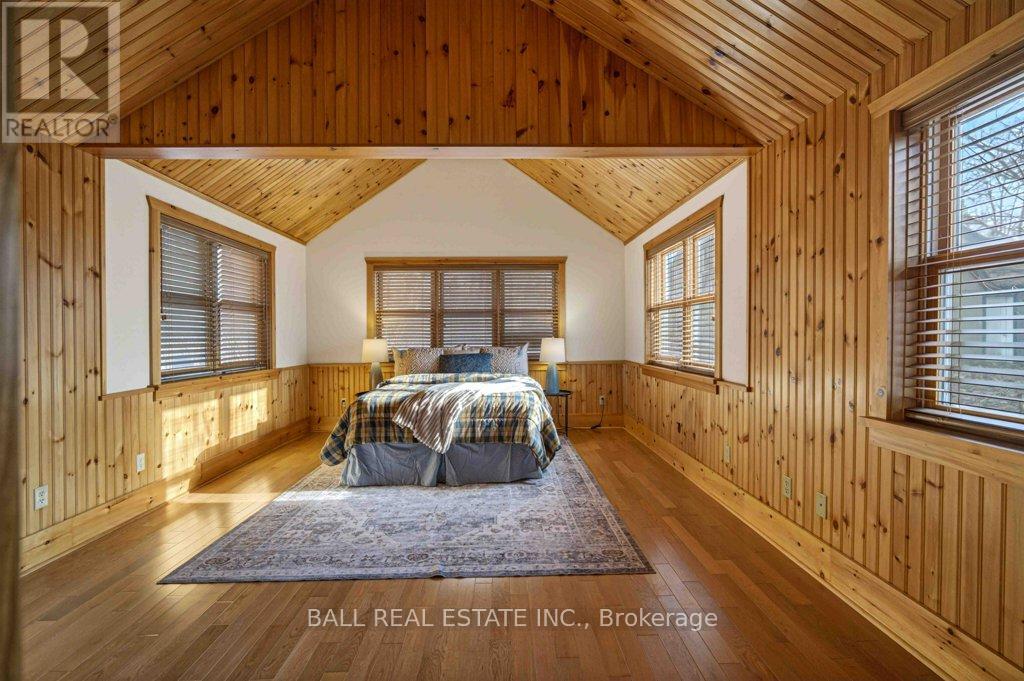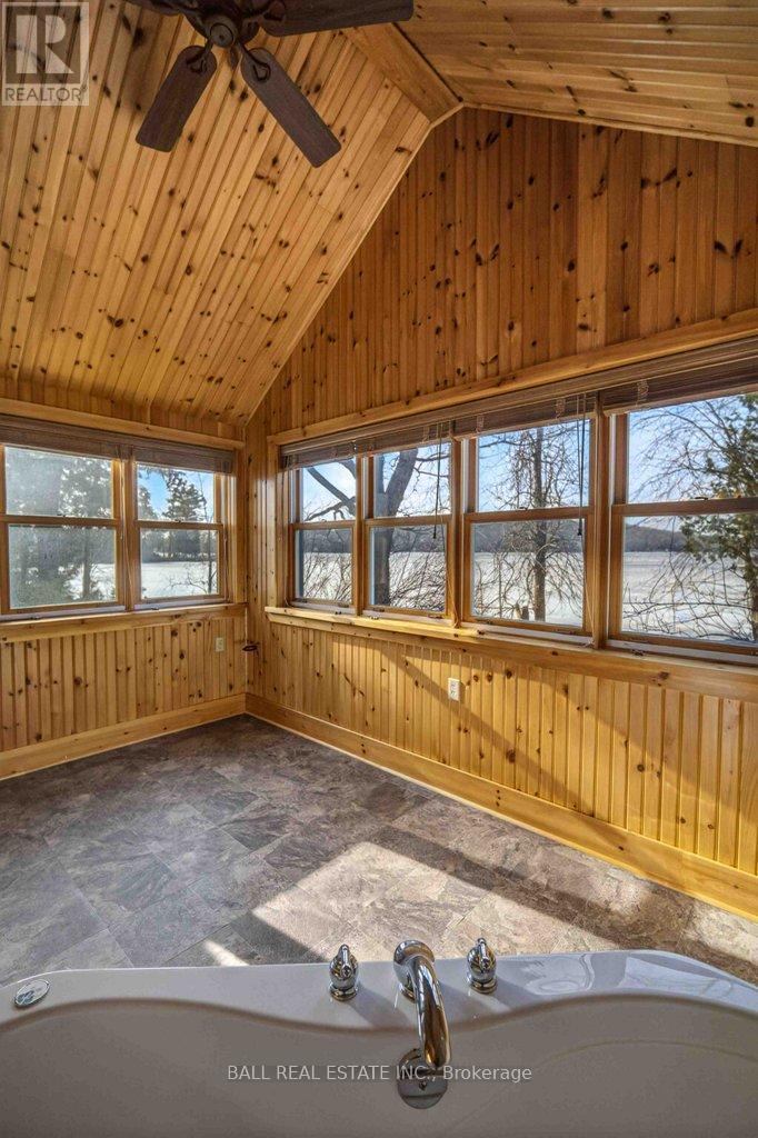 | The Ultimate Waterfront Retreat on Belmont Lake | Experience the rare harmony of luxury and lakefront living with this stunning Belmont Lake estate. Boasting a staggering 170+ feet of north-westerly frontage, this property offers front-row seats to the region's most breathtaking sunsets. Whether you're wading into the crystalline waters via custom stone stairs or cruising by boat to the local sandbar and the iconic Belmont Lake Brewery, the lifestyle here is unparalleled. Designed with meticulous craftsmanship, this 2,000+ sq. ft. bungalow features an expansive, all-one-level layout. The interior strikes a sophisticated balance between rustic charm and modern elegance, showcasing vaulted beamed ceilings, rich hardwood floors, and a grand stone fireplace that anchors the living space. The intelligent floor plan separates the primary living areas from a dedicated bedroom wing for ultimate privacy. Currently configured as a spacious two-bedroom, two-bathroom home, the flexible den offers an easy transition into a third bedroom if desired. Outside, the level lot leads to a detached double garage featuring a finished studio loft, perfect for a creative workspace or a guest bunkie. Located just 10 minutes from town amenities and 45 minutes from Peterborough, this home offers the peace of the cottage with the convenience of a primary residence. Complete with forced-air propane heat, central air, and a drilled well, this is quality you can feel in a setting you'll never want to leave. (id:61423)