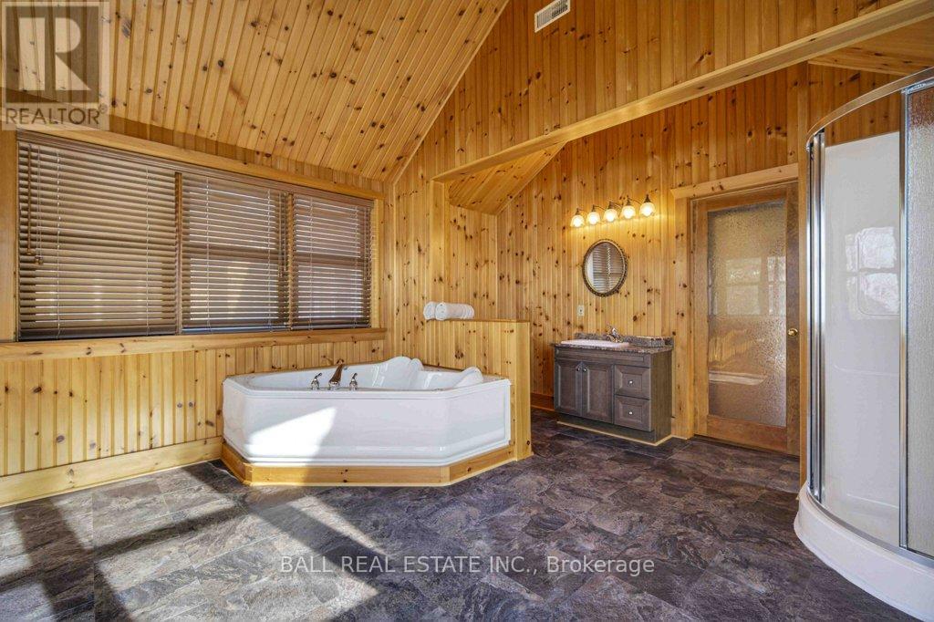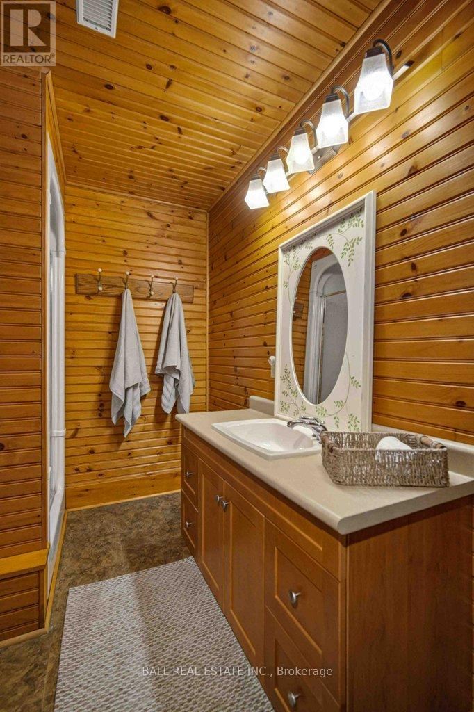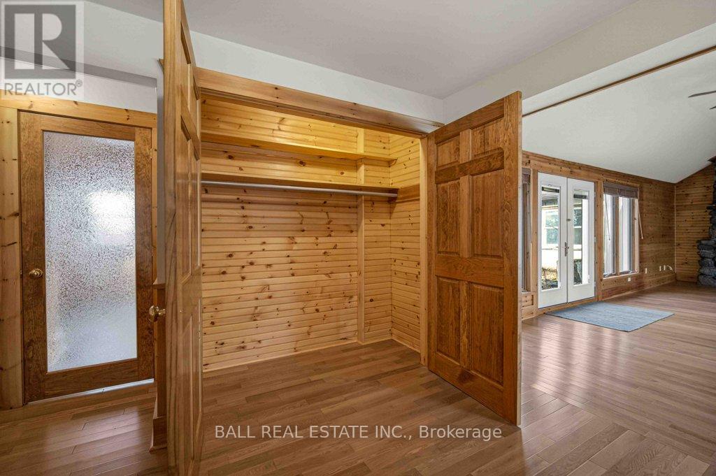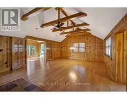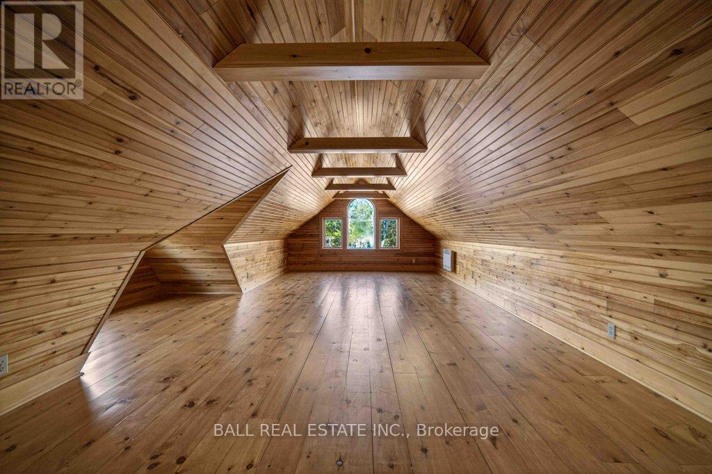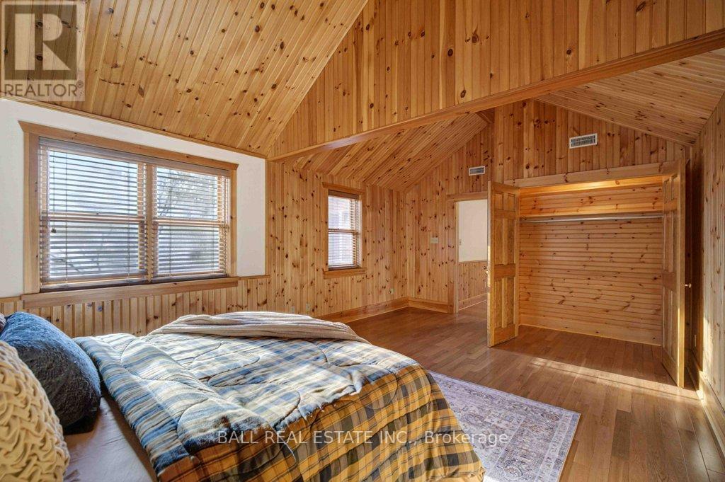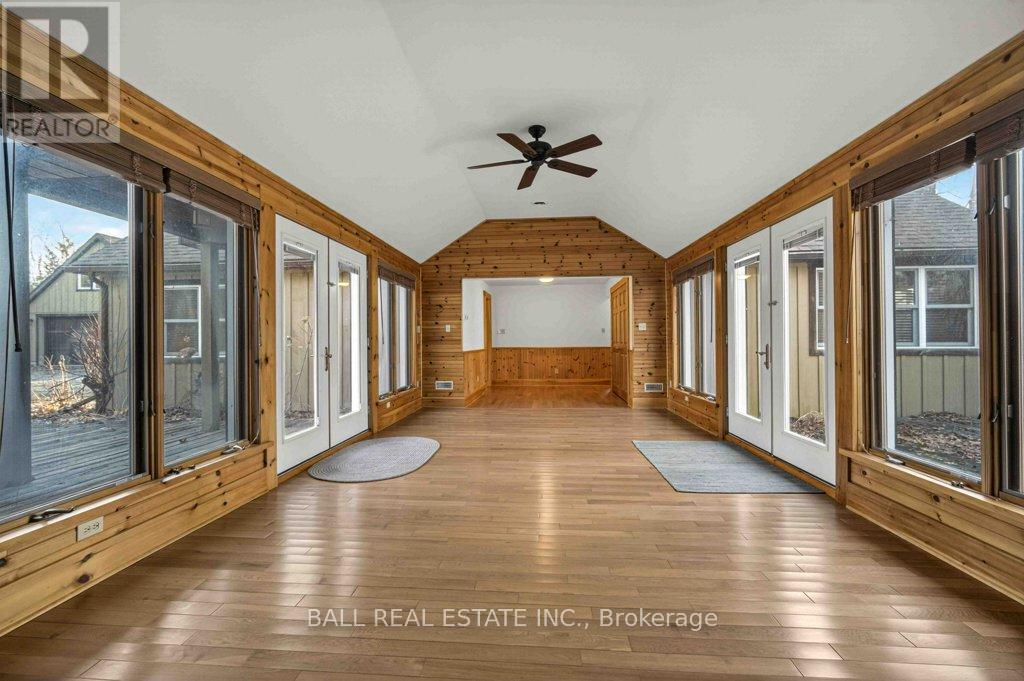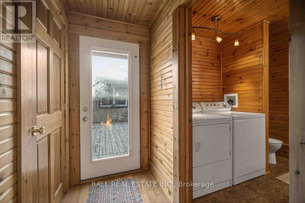 | The Ultimate Waterfront Retreat on Belmont Lake | Experience the rare harmony of luxury and lakefront living with this stunning Belmont Lake estate. Boasting a staggering 170+ feet of north-westerly frontage, this property offers front-row seats to the region's most breathtaking sunsets. Whether you're wading into the crystalline waters via custom stone stairs or cruising by boat to the local sandbar and the iconic Belmont Lake Brewery, the lifestyle here is unparalleled. Designed with meticulous craftsmanship, this 2,000+ sq. ft. bungalow features an expansive, all-one-level layout. The interior strikes a sophisticated balance between rustic charm and modern elegance, showcasing vaulted beamed ceilings, rich hardwood floors, and a grand stone fireplace that anchors the living space. The intelligent floor plan separates the primary living areas from a dedicated bedroom wing for ultimate privacy. Currently configured as a spacious two-bedroom, two-bathroom home, the flexible den offers an easy transition into a third bedroom if desired. Outside, the level lot leads to a detached double garage featuring a finished studio loft, perfect for a creative workspace or a guest bunkie. Located just 10 minutes from town amenities and 45 minutes from Peterborough, this home offers the peace of the cottage with the convenience of a primary residence. Complete with forced-air propane heat, central air, and a drilled well, this is quality you can feel in a setting you'll never want to leave. (id:61423)