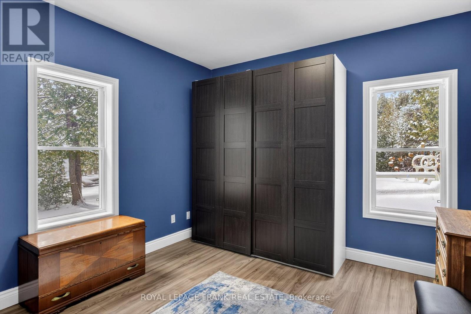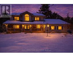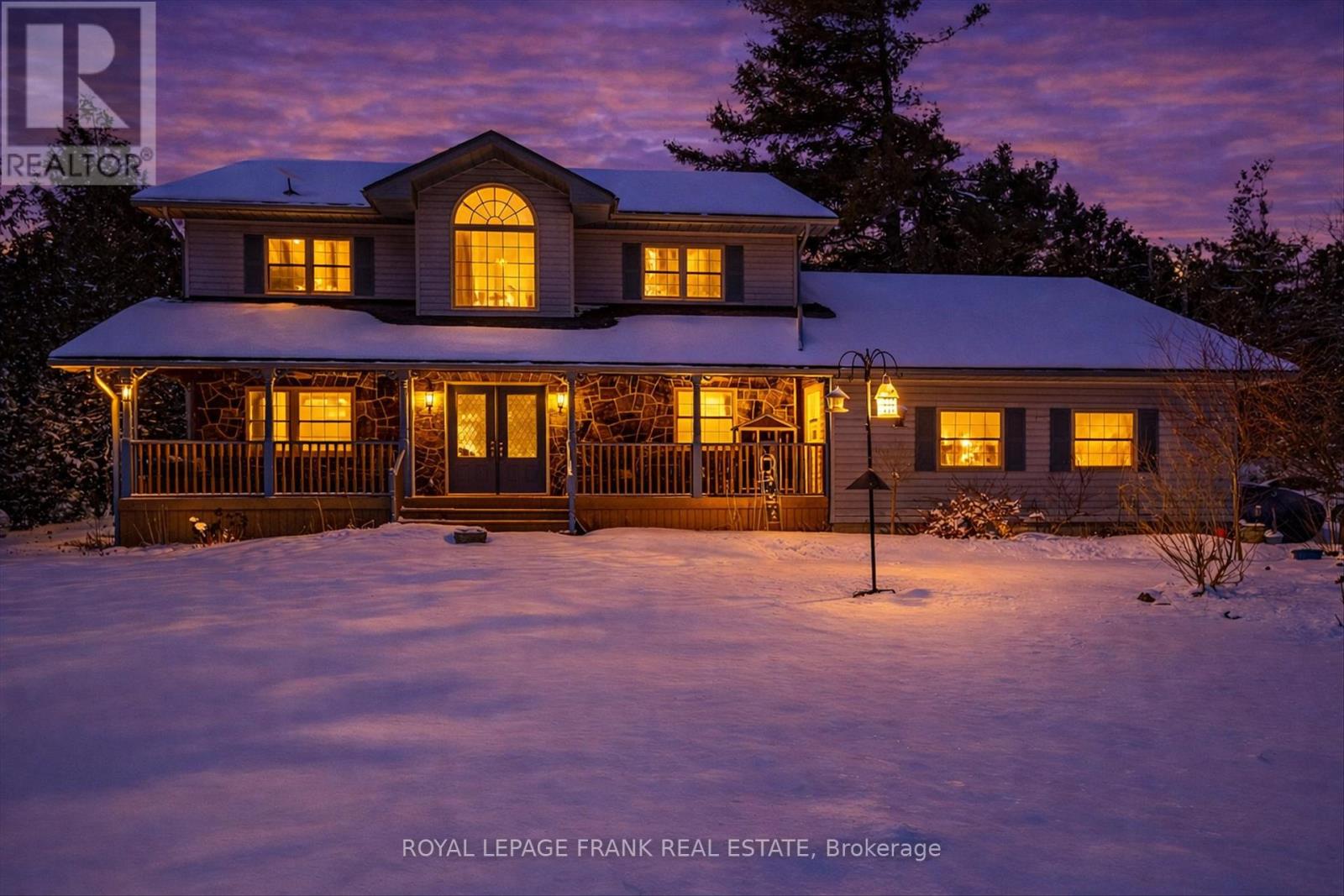 Tucked away on 2 acres of beautifully treed land in Douro, this private retreat begins with a long, winding laneway that leads you through a canopy of mature trees-setting the tone for the peaceful escape that awaits. Surrounded by unique trees, birds, and local wildlife, this property offers a rare connection to nature while still delivering all the comforts of home. The secluded backyard is the perfect place to unwind, with open views to the west capturing stunning sunset skies. Inside, the two-storey home features a classic centre hall floor plan with 4 bedrooms and 3 bathrooms, including a spacious primary suite with its own ensuite. The main floor is designed for both everyday living and entertaining, offering a large eat-in kitchen complete with a cozy woodstove, an open-concept living and dining area with a gas fireplace, and a walkout to a covered and enclosed front porch-perfect for enjoying the outdoors in any season. The fully finished basement with a third fireplace adds even more versatile living space for family, guests, or recreation. Step outside and the lifestyle continues. A deck off the home leads to the above-ground pool for summer enjoyment, while the charming bunkie-complete with a hot tub and screened-in porch-creates the ultimate private getaway space for relaxing or hosting. With its combination of privacy, character, and natural beauty, this property offers a truly special country lifestyle just waiting to be experienced. (id:61423)