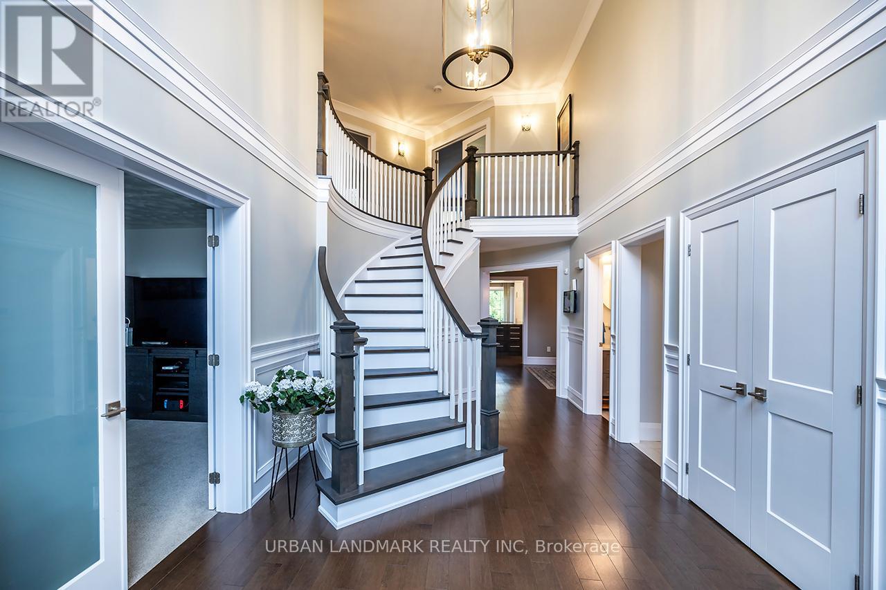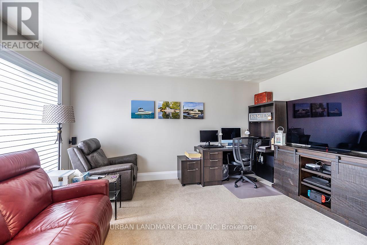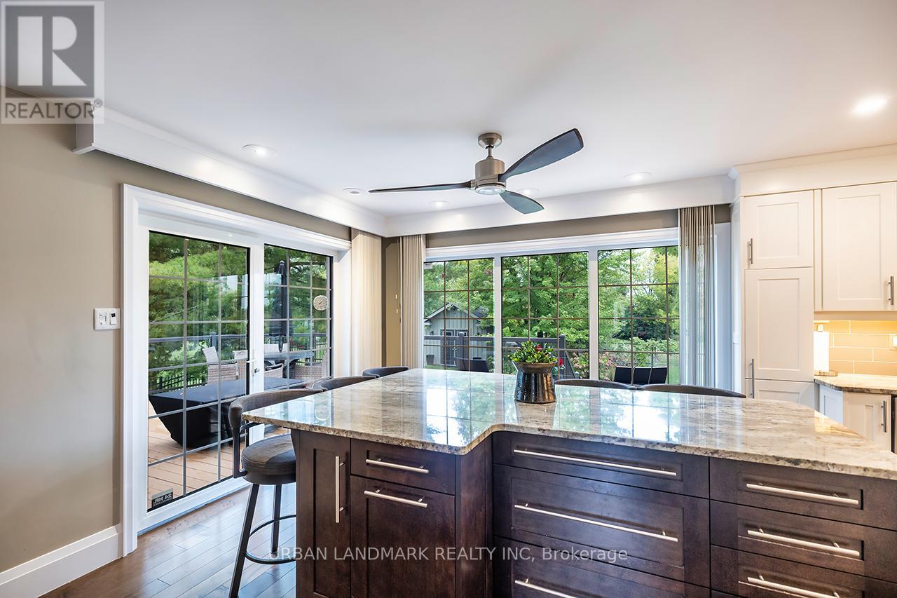 Welcome to 161 Maria Street. A stunning, fully renovated top to bottom home (2017) offering exceptional craftsmanship and modern living in a peaceful setting. The grand U-shaped driveway with parking for up to 12 vehicles sets the tone. The property is beautifully landscaped front and back, complementing the homes striking curb appeal. Step inside the vaulted front entryway with custom door and youll find hardwood floors throughout and an open-concept design that seamlessly blends each room. The custom kitchen features solid surface countertops, a large island with seating, and abundant storage, all overlooking the back deck and yard with views of Little Lake. The spacious living room has tons of natural light and perfect for entertaining or relaxing. Main floor highlights include a laundry room, home office, heated garage with epoxy floor, access to the side yard, and a 12x16 custom shed with power. A Generac generator ensures peace of mind. The primary retreat offers serene lake views, a walk-in closet, and a spa-like 5-piece ensuite. The fully finished basement with separate entrance adds versatility with a kitchenette, oversized rec room, and 4-piece bath, ideal for extended family or in-law potential. Brand new hot water tank (2025). Enjoy outdoor living on the expansive back deck with two power retractable awnings, creating the perfect shaded retreat. (id:61423)