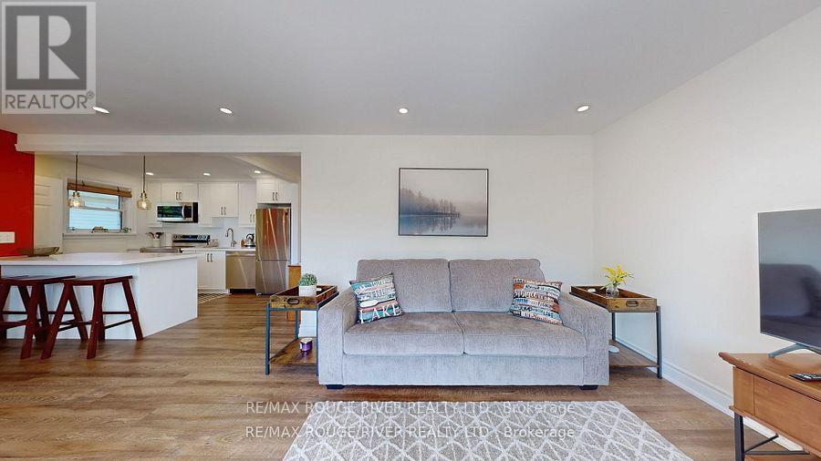 Fantastic recently renovated home on a beautiful 56.76 by 191.40 foot lot. Located withinwalking distance to the spectacular Cameron Lake, ATV Trails, Downtown Core, Professional Offices, the Locks and many shops to browse and fantastic restaurants to eat at. This openconcept and charming home is bright and spacious, the main floor consists of a large living room which has a picturesque window allowing sunlight to flow in, the kitchen has been recently renovated which boasts upgraded appliances, quartz counter tops, upgraded cabinets and lighting. Another unique feature is the three total bedrooms on the main floor and thefourth bedroom in the recently finished basement. The basement is an entertainers dream, the bonus is the separate side entrance which can allow you to rent the basement out for extra income in the future...there is ample room for a future kitchen and a bathroom. The basement includes a large finished recreation room along with the large fourth bedroom. Some other recently completed features: Furnace 2019, Painting, Ceiling Pot Lights, Flooring, and Trim Enjoy entertaining friends and family on the lovely spacious front patio or stroll to the back and enjoy the serene beauty of the large backyard. Lots of room for the kids to play and privacy with trees lining the back area. The exterior also feature a great detached garage along with parking for 4 additional cars on the driveway. A truly unique place to call home, a fantastic opportunity to live in the ever expanding Fenelon Falls. (id:61423)