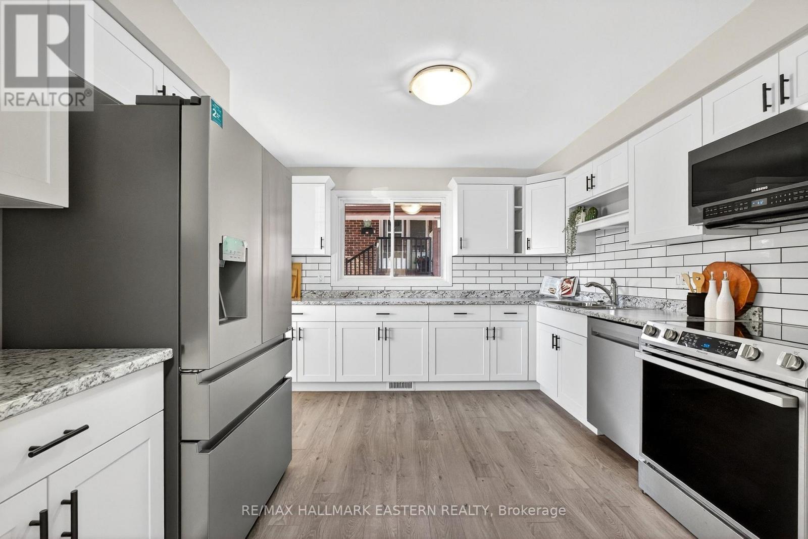 Welcome to this stunning, fully renovated back-split located in Peterborough's highly desirable West End. Updated from top to bottom, this home features a brand-new 2025 driveway, furnace, kitchen, flooring, brand new appliances and more. The roof was replaced in 2021, giving you peace of mind for years to come. Step inside and enjoy bright, spacious bedrooms, two separate living areas perfect for families or entertaining, a fully fenced back yard ideal for kids, pets. Move in and enjoy everything the beautiful West End has to offer, convenience, nature, parks, and an amazing community. (id:61423)
