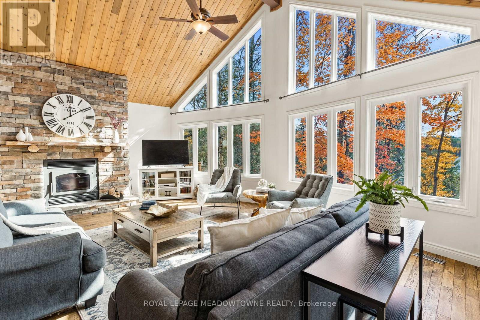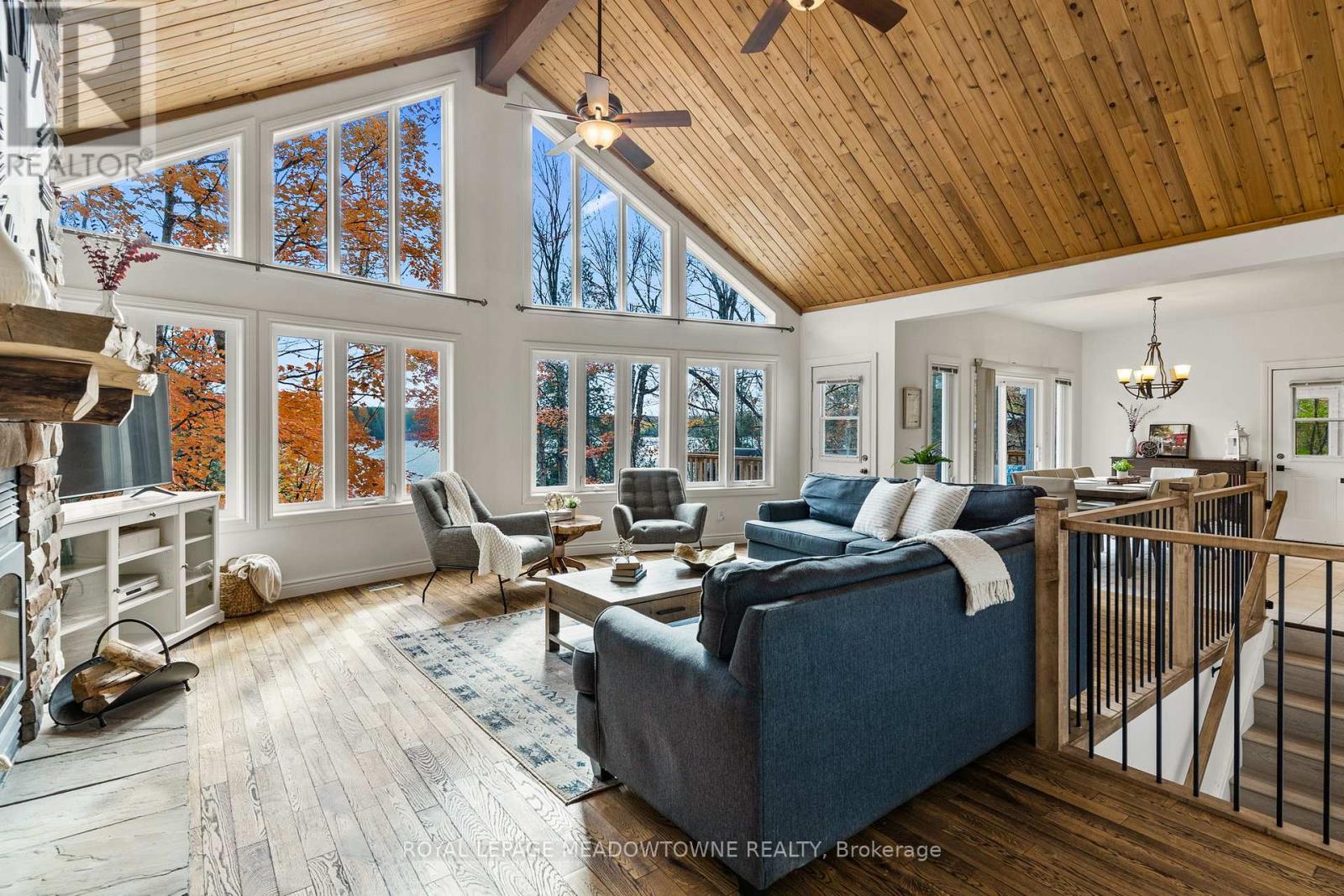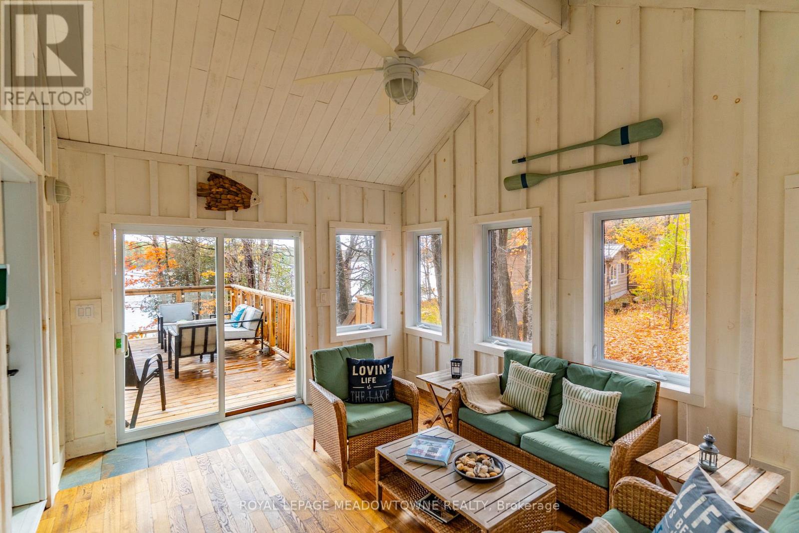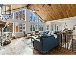 Don't miss this opportunity to own your own slice of Paradise. Prime waterfront, Gorgeous Views. This inviting lakeside retreat offers 5 bedroom and 3 baths with uncompromised luxury minutes from the Village of Minden and 2 hours from the GTA in the amazing Haliburton Highlands. Experience year-round comfort while hosting family, friends, or extended stay guests with over 3400 sqft of turnkey living space. (everything included*)As you walk in the front door your entranced by the stunning views, vaulted ceilings, an abundance of windows, stone fireplace, gourmet kitchen, walkouts, from both levels to further remind you of lakeside living at its finest. This home was made for gathering and entertaining whether around the oversized granite island, the expansive dining room table or in front of the fireplace in family room, memories are sure to be made. Gourmet Kitchen boasts an abundance of cupboards, pantry, bar fridge, SS appliances and rich granite. A cozy Haliburton room is off the kitchen to cuddle in with a good book or a quiet conversation over a glass of wine. Easy Access to the large outdoor deck is available from family room, dining room or Haliburton room, all with amazing views of South Lake. Enjoy your morning coffee on the cozy private balcony off the master bedroom which also offers a walk-in closet and ensuite bath. Finishing this level is 2 additional spacious bedrooms and a main bathroom. Centre stairs take you to the "new" fully finished lower level we call the "Family & Friends Fun Zone" with spectacular views from the expansive windows boasting another 2 oversized bedrooms, bathroom, laundry, open concept games room with pool table and ping pong, family room and a walk out to your very private outdoor oasis. Inviting hot tub on a snowy winter Night? Firepit to enjoy year-round, and a dock ready for some boating, swimming, canoe or kayaking. Don't miss this Gem with year-round road access, close to town and EVERYTHING ISINCLUDED*! (id:61423)