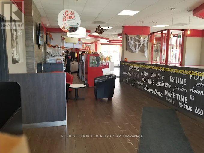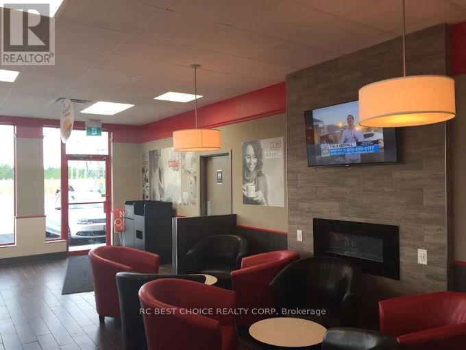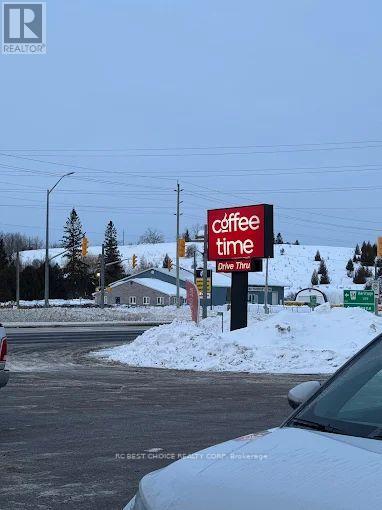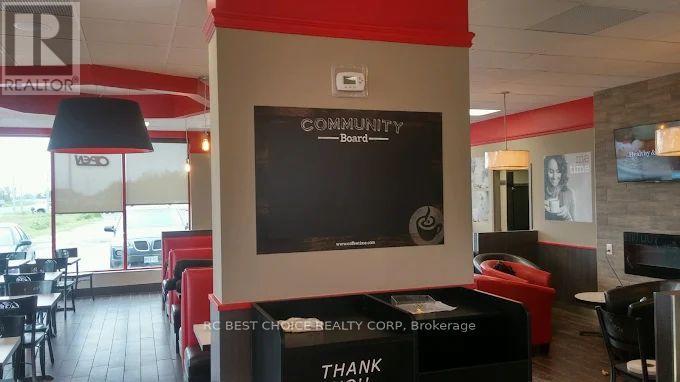 Exceptional opportunity to own a well-established 20-year Coffee Time franchise at the high-visibility junction of Highways 7, 28, and 34 in Peterborough. This 2,688 sq.ft. location features a 40-50 seat dining area, full drive-thru, ample parking, and a full kitchen with a large walk-in cooler supporting efficient high-volume production. Additional income is generated through a CIBC ATM installed on-site, providing stable monthly rent. Strong customer flow from local residents, commuters, schools, roadside retail, and seasonal cottage travelers. Operating daily 6 a.m.-6 p.m. with seven experienced staff and a reliable franchise system ensuring smooth, easy-to-transition operations. Lease secured to 2029 with extension potential-ideal for owner-operators and multi-unit investors seeking a stable, high-exposure franchise opportunity. (id:61423)