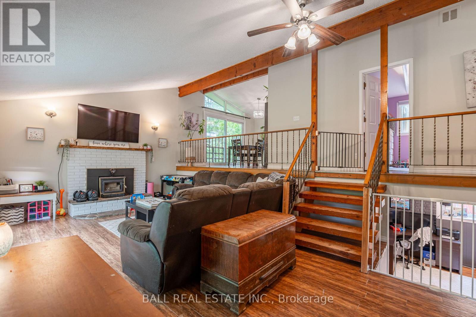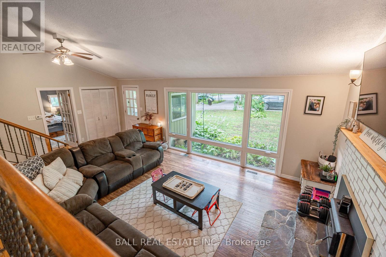 Welcome to your family country home in the highly sought after Buckhorn Sands! Nestled on nearly an acre of land, this spacious 4-bedroom, 2-bathroom backsplit home offers the perfect blend of privacy, comfort, and community perks. The large living room creates a warm gathering space, while an elevated kitchen allows the perfect blend of open concept and separation for entertaining or family activities. Enjoy the bright and airy sunroom with new windows, opening onto a spacious deck that leads to a large back yard ideal for summer entertaining. Recent updates include the roof(2020), windows(2015), sunroom windows(2025), AC(2015) kitchen(2023), ensuring peace of mind and move-in readiness. As a proud member of the Buckhorn Sands community, you'll enjoy exclusive access to four deeded water access points, all within walking distance. Spend your days at the sandy beach, play a game at the sand volleyball court, relax under the pavilion, or take advantage of fishing right off the dock or in your boat with a private boat launch and dock parking. Don't miss this rare opportunity to own a beautiful home in a tranquil setting with unmatched water privileges! (id:61423)
