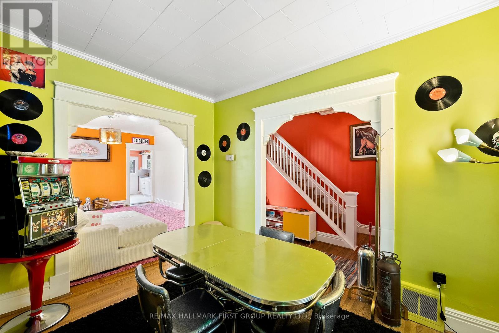 Dull and drab? Not here. This home is colourful, cozy, and captivating. Welcome to this out-of-this-world 3 bedroom, 2 bathroom home in the heart of Peterborough. This is 168 Adeline Street. From the outside in, this home will have you smiling from ear to ear. Walk up the 3-years-young interlock driveway to the 3-season sunroom perfect for books, cat naps, and enjoying sunny days or rainy afternoons. The generously sized dining room at the front of the home has room for the whole fam, and all the memories and laughs that come with hosting your loved ones. The even bigger living room has all the space you need for oversized couches, oversized memories, and oversized fun. Right through to the eat-in kitchen, which is decked out with new floors, new backsplash, fresh paint, and a walkout to the backyard. Set up the barbecue and make some summer dinners out back, and enjoy them on the interlock patio. Make sure you save a bite for your furry friend as they hang out in the yard thanks to it being fully fenced in! Rounding out the main floor is a freshly painted powder room. Head upstairs to check out 3 incredible bedrooms perfect for guests, kiddos, an office... whatever you need them to be. The primary bedroom is absolutely lush. With a seating area in the front (perfect for extra storage or a comfy chair), this unique layout maximizes how you utilize your new space. Fit a king-sized bed in the back portion of the room, making this first bedroom a true space of luxury. The second bedroom is a fantastic size. Guest room? Or maybe a dressing room? Take your pick the options are endless. The third bedroom, at the front of the upper level, is just as lovely, with bright windows and ample space for a queen bed, dressers you name it! The 4-piece bathroom serves all the bedrooms with a stunning clawfoot tub and a super fun design. To top it all off, this home has a partially finished basement and a side entrance. Homeownership has never looked so good or so bright! (id:61423)