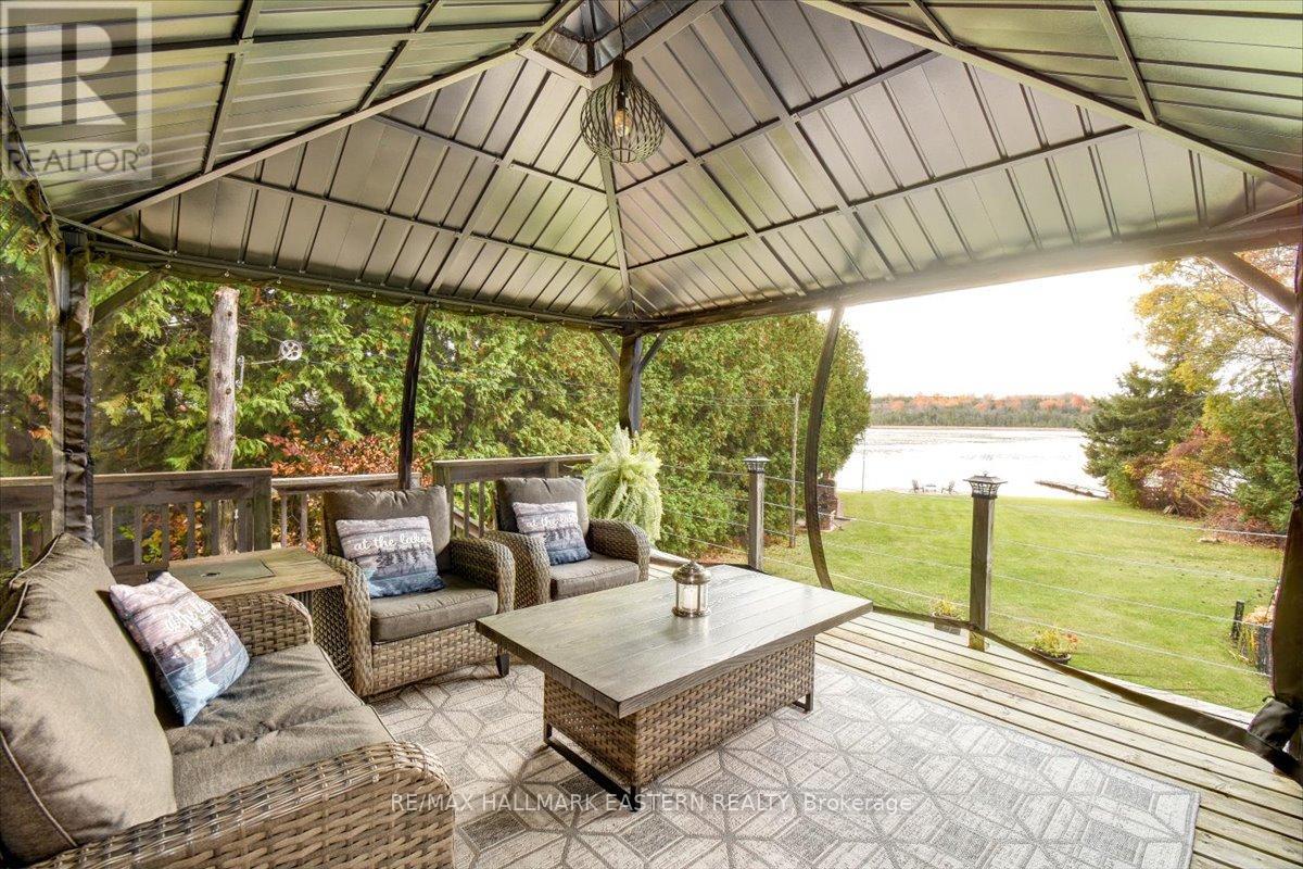 WATERFRONT, PRIVACY & LOCATION, LOCATION! This beautiful waterfront home is being offered for sale for the first time in 31 years! Offering private views across the lake on a peninsula in a quiet bay area, this property has an open concept living, kitchen and dining area that flows perfectly through sliding doors into a serene outdoor sanctuary with a hard top screened in gazebo. The mature cedar hedges that run down both sides of the property ensure your seclusion in your lakeside haven while indoors, every day brings with it a different perspective with views of the lake from the kitchen, dining and living room. The property features 3 bedrooms (potentially a 4thbedroom, den, nursery, office or games room) and 2 full bathrooms; a large primary bedroom and second bedroom on the main floor along with a full bathroom and a third bedroom on the lower level for a variety of choices depending on your lifestyle. With some vision, there could be in-law capability with a pre-existing laundry downstairs and space for a potential kitchenette having a closet space upstairs that could potentially be converted to a main floor laundry with stackable washer and dryer. Other features include an attractive above ground pool, a private roadside yard with horseshoe pits, and an oversized double garage with workbenches completing the package to accommodate the whole family and their various hobbies. Located within walking distance and just down the road from East Selwyn Park with a baseball diamond and public boat launch area. Less than 10 minutes to Bridgenorth and north end Peterborough with all its amenities and shopping and not much further to downtown Peterborough for entertainment and dining options. Less than 15 minutes to the Hospital. For commuters, you can hop on the highway in just about 15 minutes with easy access to Highway 115/35, approximately 60 minutes to Durham and 90 minutes to Toronto. Don't miss out on this opportunity! (id:61423)