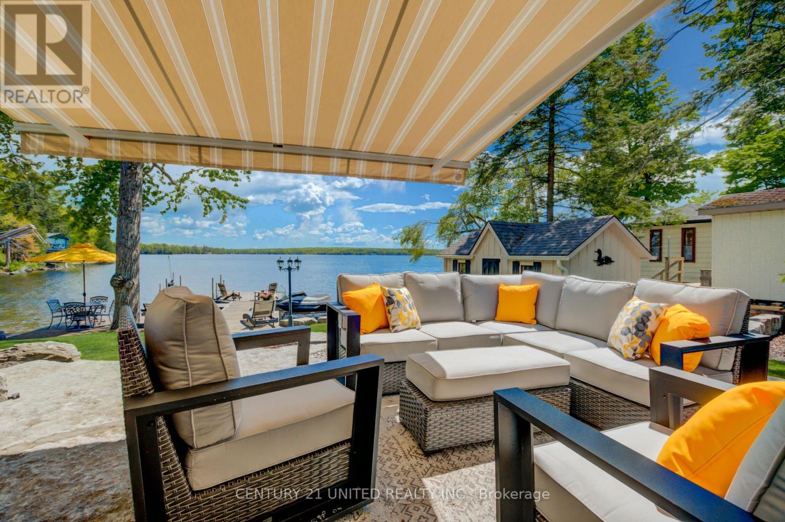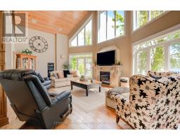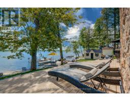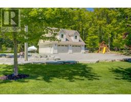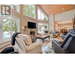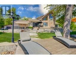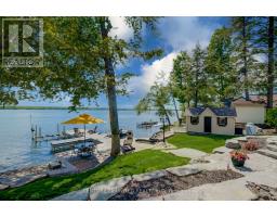 This impressive home must be seen to be fully appreciated. If you've been searching for a stunning, year-round waterfront oasis just 1.5 hours from the GTA, your search ends here.Set in a private, serene setting, near the end of a quiet road, where neighbours respect the natural beauty and peaceful enjoyment of the area, this thoughtfully designed 13-year-old home was built by a legacy family who have cherished the lake since the 1950s.The residence offers four bright bedrooms and three well-appointed bathrooms, along with a gourmet island kitchen featuring granite countertops-perfect for entertaining. The open-concept design showcases breathtaking lake views, complemented by gleaming hardwood and travertine floors that flow gracefully throughout the home.The family room impresses with a soaring 24-foot ceiling and a dramatic wall of windows, capturing the coveted southwestern exposure and filling the space with natural light. Enjoy dining indoors overlooking the water, or step outside to the expansive Trex composite deck, complete with a Sun-Shade awning, integrated sound system, and low-voltage lighting-creating an ideal setting for effortless entertaining.The grounds are equally exceptional, featuring extensive armour stone, landscaping, and irrigation system, with a large fire pit finished with Bear Cut flagstone-perfect for gathering under the stars and creating lasting memories.Additional features include a custom Rainbow children's play centre and an impressive 36 x 32 ft two-storey, three-car heated garage. Above the garage, a beautifully finished games room or guest suite with a gas fireplace provides flexible living space. A second 24 x 32 ft detached 1.5-car garage is equipped with both propane and electric furnaces, along with 100-amp service, while the home also offers an attached single-car drive-through garage.Near the boat launch, a 24 x 12 ft dry boathouse-finished and heated-offers the perfect space for a studio or peaceful meditation retreat. (id:61423)