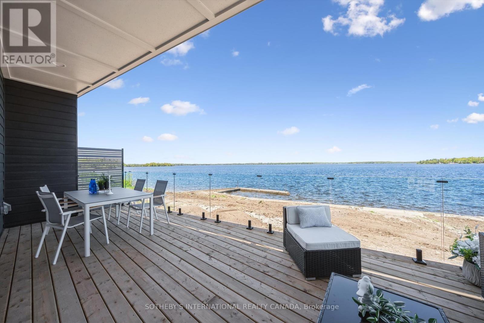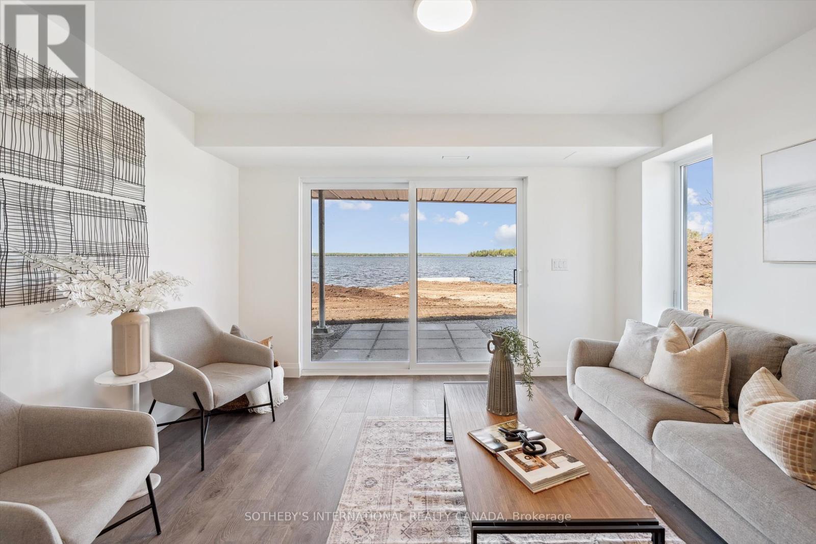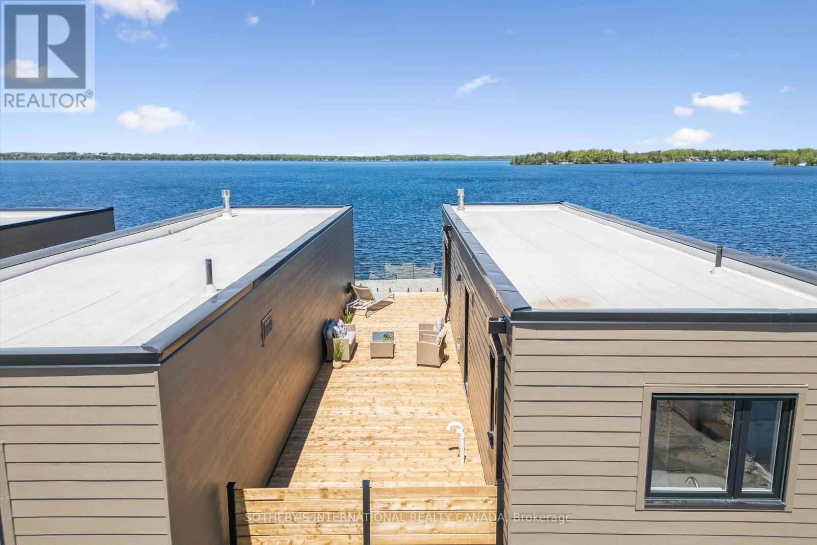 Carefree lakefront luxury on the shores of Cameron Lake. This contemporary residence, designed to maximize privacy, boasts expansive balconies and terraces with breathtaking views . Spacious with 2249 of total indoor living space with luxurious high end finishes throughout and three bedrooms and three bathrooms. Stepping through the front door, prepare to be captivated by the extraordinary views that unfold before you. Open-concept soaring 10ceilings, oversized windows and sliding doors. The contemporary kitchen with European-inspired appliances, beautiful cabinetry, open shelving and quartz waterfall island anchors the kitchen, flowing effortlessly into the living and dining areas.A two-way gas fireplace adds warmth and ambiance, while a walk-out to the terrace invites you to embrace the big water views. A sumptuous top floor primary retreat, where elevated views provide an unparalleled sense of serenity. The beautiful ensuite bathroom features a free-standing soaker tub, double sinks, large separate shower, laundry and double walk -in closets. Step out on the expansive 500 sq ft private terrace, a secluded haven perfect for relaxation and enjoying the scenery.The walk-out level offers a second living space, along with 2 additional bedrooms. A full bathroom and 2nd laundry with a walk out to your private patio. Seeking less or no stairs? No problem. The design allows for an elevator to be built to serve all three levels. Lawn care and snow removal are also taken care of so you can spend more time enjoying the things you love. Exclusive amenities include a clubhouse, gym, outdoor pool, tennis/pickleball courts, and private dock area for residents with planned finger docks for daytime use. Discover the charming town of Fenelon Falls. Just a short stroll from the Fenelon Lakes Club, you'll find unique shops, delightful dining, and rejuvenating wellness experiences. Conveniently located 20 minutes from Lindsay and Bobcaygeon, and only 90 minutes from the GTA. (id:61423)