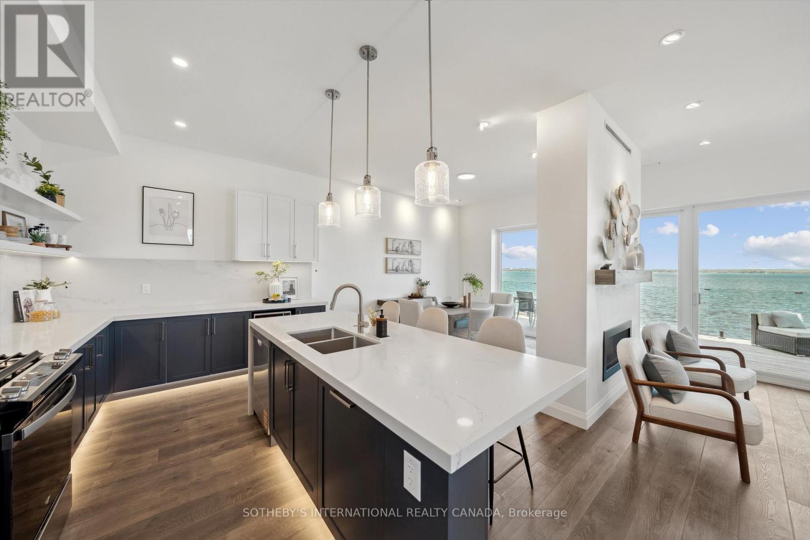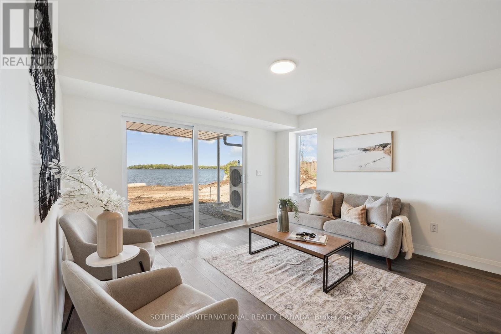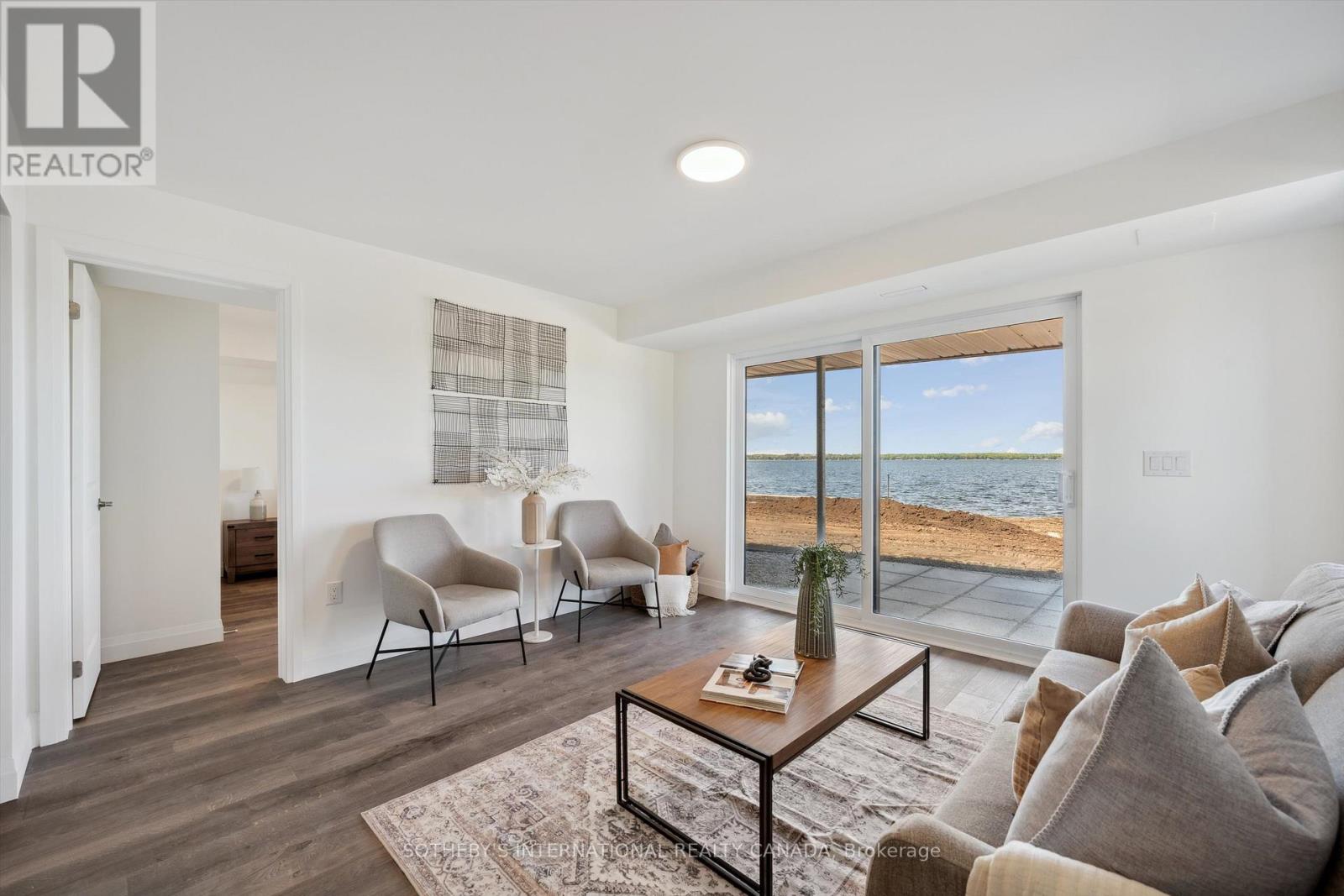 Carefree lakefront luxury on the shores of Cameron Lake. This contemporary residence, designed to maximize privacy, boasts expansive balconies and terraces with breathtaking views . Spacious with 2249 of total indoor living space with luxurious high end finishes throughout and three bedrooms and three bathrooms. Stepping through the front door, prepare to be captivated by the extraordinary views that unfold before you. Open-concept soaring 10ceilings, oversized windows and sliding doors. The contemporary kitchen with European-inspired appliances, beautiful cabinetry, open shelving and quartz waterfall island anchors the kitchen, flowing effortlessly into the living and dining areas.A two-way gas fireplace adds warmth and ambiance, while a walk-out to the terrace invites you to embrace the big water views. A sumptuous top floor primary retreat, where elevated views provide an unparalleled sense of serenity. The beautiful ensuite bathroom features a free-standing soaker tub, double sinks, large separate shower, laundry and double walk -in closets. Step out on the expansive 500 sq ft private terrace, a secluded haven perfect for relaxation and enjoying the scenery.The walk-out level offers a second living space, along with 2 additional bedrooms. A full bathroom and 2nd laundry with a walk out to your private patio. Seeking less or no stairs? No problem. The design allows for an elevator to be built to serve all three levels. Lawn care and snow removal are also taken care of so you can spend more time enjoying the things you love. Exclusive amenities include a clubhouse, gym, outdoor pool, tennis/pickleball courts, and private dock area for residents with planned finger docks for daytime use. Discover the charming town of Fenelon Falls. Just a short stroll from the Fenelon Lakes Club, you'll find unique shops, delightful dining, and rejuvenating wellness experiences. Conveniently located 20 minutes from Lindsay and Bobcaygeon, and only 90 minutes from the GTA. (id:61423)