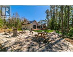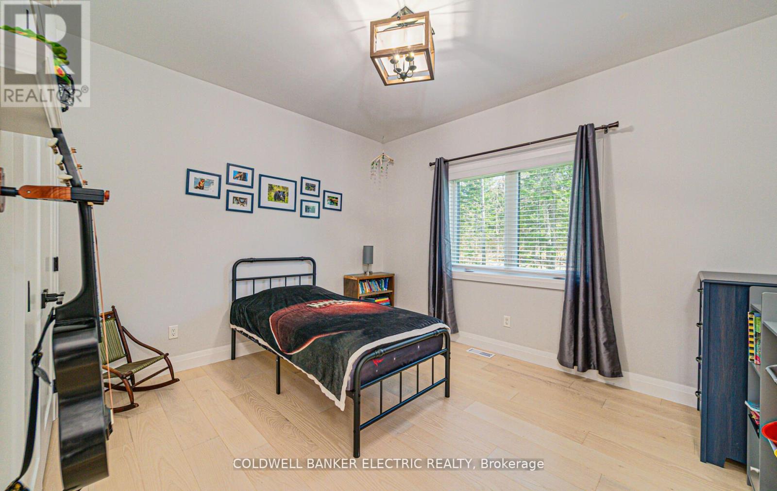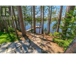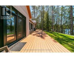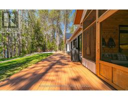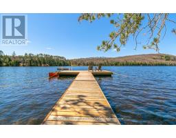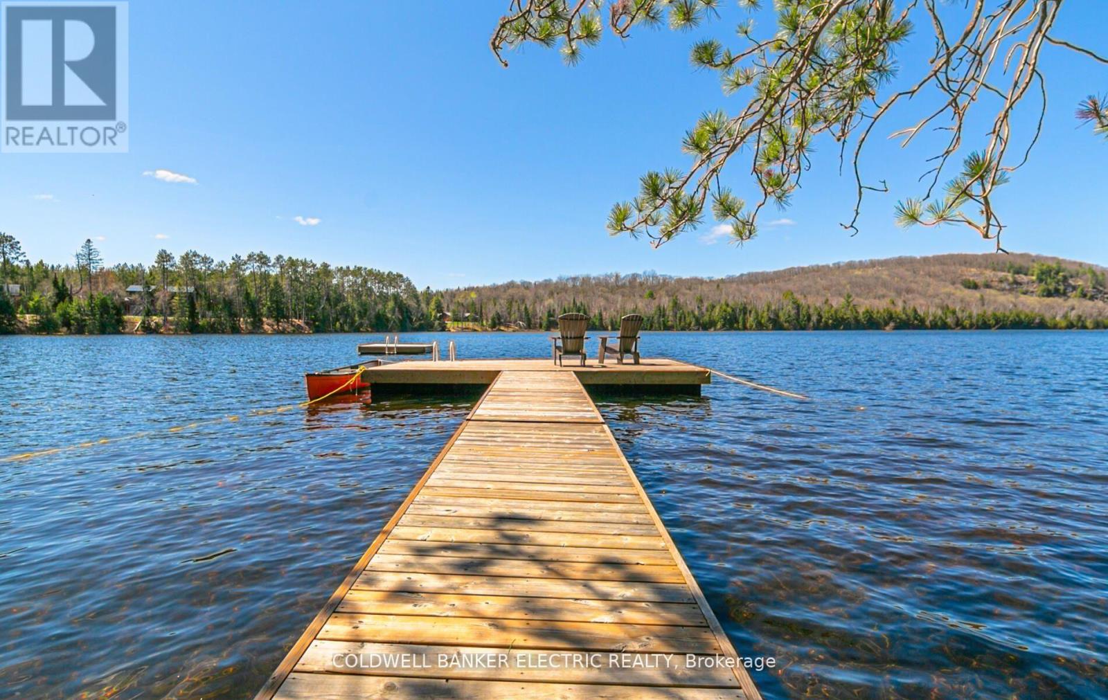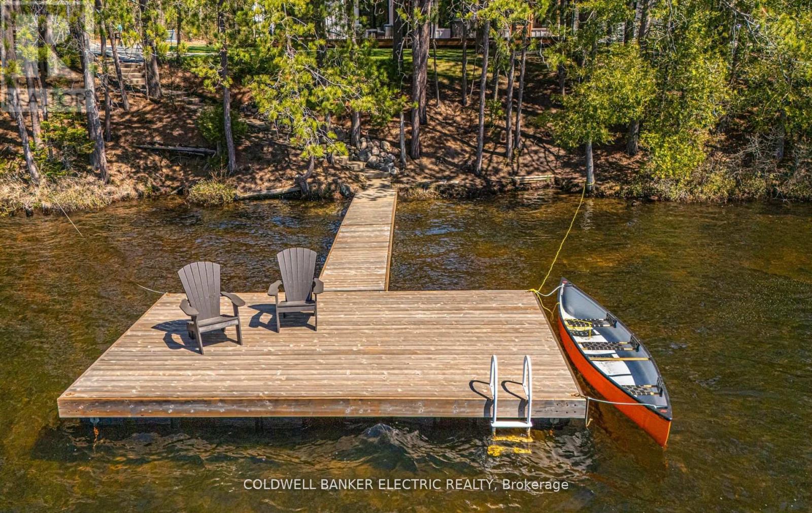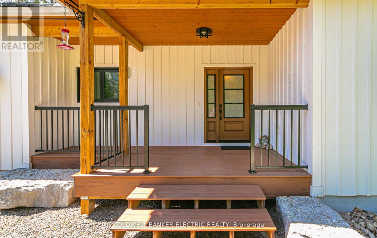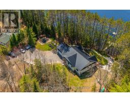 Envision 290 feet of Private, pristine WEST facing waterfront on Bow Lake, offering incredible deep clean swimming less than 60' from your dream home! 3800 finished sq ft of luxury tucked into a mature 1.5 acre pine grove. This modern, meticulously planned, 5 bed, 3 bath custom built home/cottage, features 3 main floor bedrooms and 2 main floor bathrooms. The Primary Suite has vaulted ceilings and walkout to the deck, 3-piece ensuite with double custom vanity, large rain shower and heated floor. Fully finished basement includes 2 additional bedrooms plus a 4-piece bath, large rec room, oversized laundry room and tons of storage space. Quartz countertops in kitchen and main floor baths, Ash engineered hardwood throughout the main floor and basement, tile in bathrooms, foyer/mudroom. Still looking for more space? Attached 2-car heated garage with direct entry to the foyer. Power outage? No problem, 11kW automatic generator wired into the home. Enjoy the sounds of nature from your screened-in porch, then venture outside onto your composite deck and bask in the late afternoon sun. Find your Zen at the end of the day as the Sun sends sparkles across the water for a priceless SUNSET! Why not dip your toes in Bow Lake from the edge of your dock while loons, ducks, otters and turtles swim by. Bow Lake has no public access point, meaning you share this beautiful water with only a handful of neighbours! Enjoy easy outdoor living with raised garden beds, mature asparagus patch, Kids' playground and sandbox. If you have more motorized toys than the garage can handle, move them out to the detached drive shed. Care to wet a line? Excellent bass, pike and perch fishing! Centrally located, 10 min north to the full service town of Bancroft, where you'll find shopping, restaurants, rec centre, parks, Schools, and a Hospital; travel south 25 min to the town of Apsley equipped with state of the art hockey arena, gym, and rec hall, putting convenient rural living at your fingertips. (id:61423)