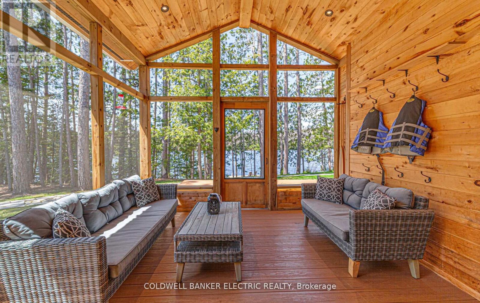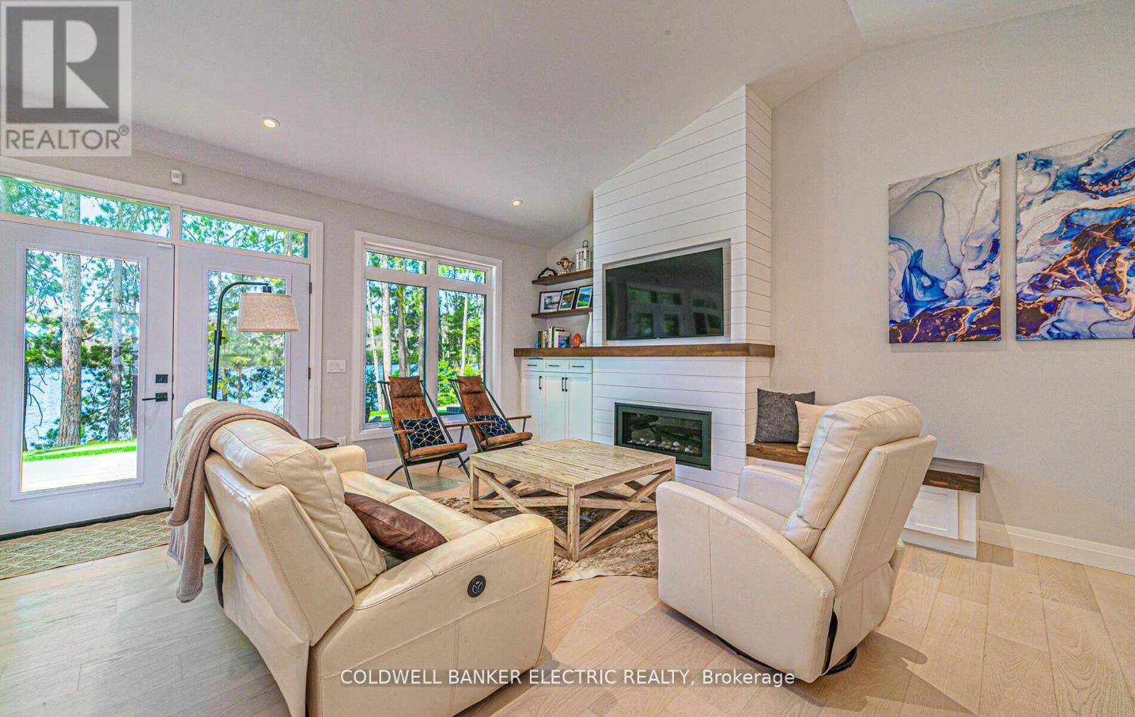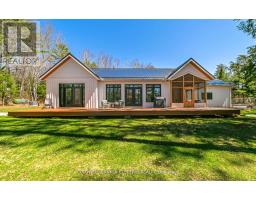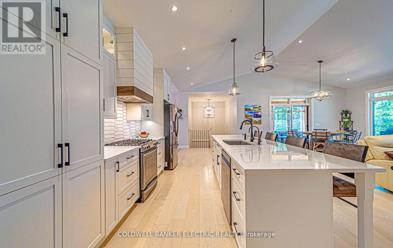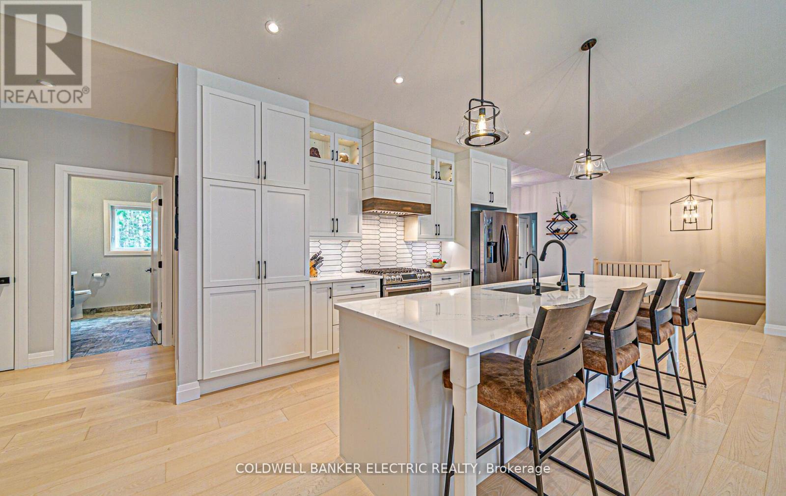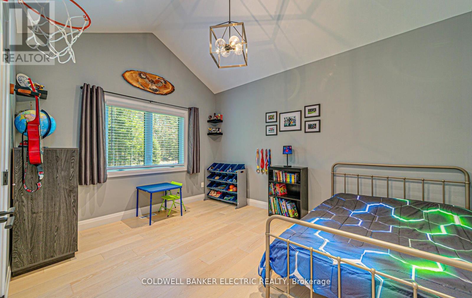 Envision 290 feet of Private, pristine WEST facing waterfront on Bow Lake, offering incredible deep clean swimming less than 60' from your dream home! 3800 finished sq ft of luxury tucked into a mature 1.5 acre pine grove. This modern, meticulously planned, 5 bed, 3 bath custom built home/cottage, features 3 main floor bedrooms and 2 main floor bathrooms. The Primary Suite has vaulted ceilings and walkout to the deck, 3-piece ensuite with double custom vanity, large rain shower and heated floor. Fully finished basement includes 2 additional bedrooms plus a 4-piece bath, large rec room, oversized laundry room and tons of storage space. Quartz countertops in kitchen and main floor baths, Ash engineered hardwood throughout the main floor and basement, tile in bathrooms, foyer/mudroom. Still looking for more space? Attached 2-car heated garage with direct entry to the foyer. Power outage? No problem, 11kW automatic generator wired into the home. Enjoy the sounds of nature from your screened-in porch, then venture outside onto your composite deck and bask in the late afternoon sun. Find your Zen at the end of the day as the Sun sends sparkles across the water for a priceless SUNSET! Why not dip your toes in Bow Lake from the edge of your dock while loons, ducks, otters and turtles swim by. Bow Lake has no public access point, meaning you share this beautiful water with only a handful of neighbours! Enjoy easy outdoor living with raised garden beds, mature asparagus patch, Kids' playground and sandbox. If you have more motorized toys than the garage can handle, move them out to the detached drive shed. Care to wet a line? Excellent bass, pike and perch fishing! Centrally located, 10 min north to the full service town of Bancroft, where you'll find shopping, restaurants, rec centre, parks, Schools, and a Hospital; travel south 25 min to the town of Apsley equipped with state of the art hockey arena, gym, and rec hall, putting convenient rural living at your fingertips. (id:61423)