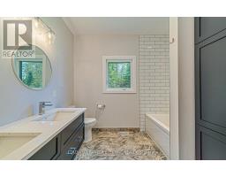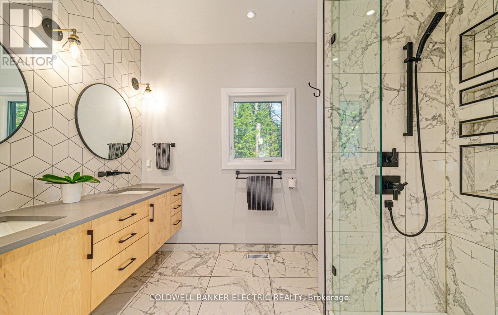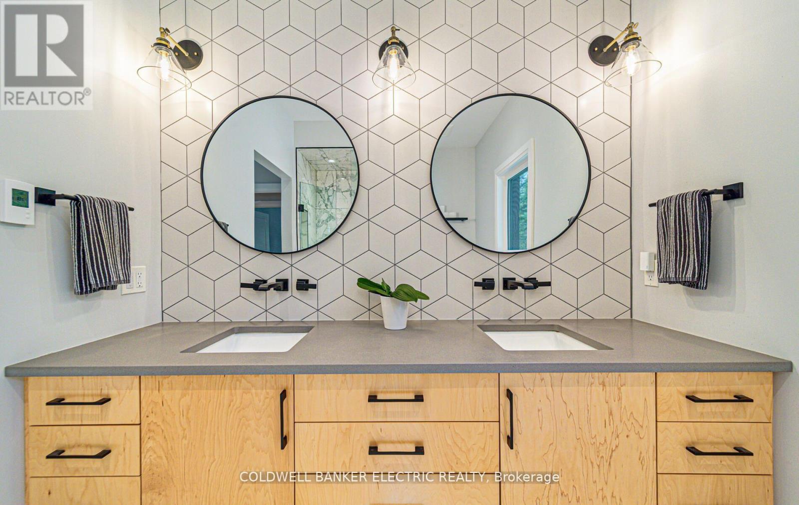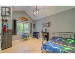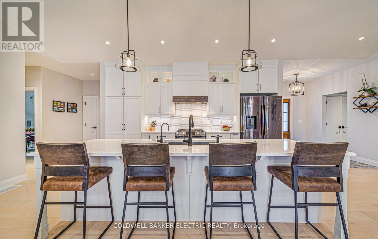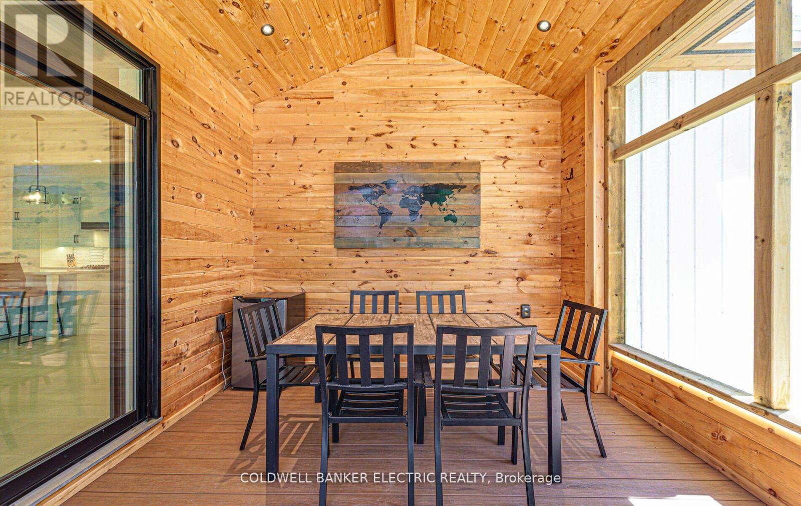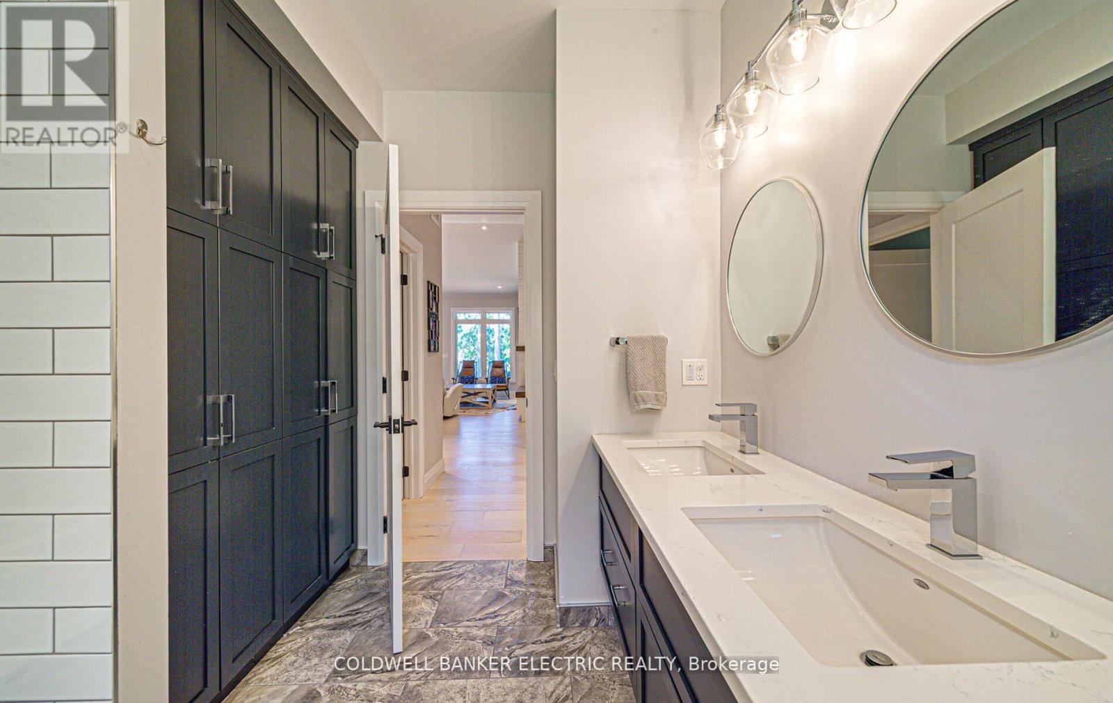 Envision 290 feet of Private, pristine WEST facing waterfront on Bow Lake, offering incredible deep clean swimming less than 60' from your dream home! 3800 finished sq ft of luxury tucked into a mature 1.5 acre pine grove. This modern, meticulously planned, 5 bed, 3 bath custom built home/cottage, features 3 main floor bedrooms and 2 main floor bathrooms. The Primary Suite has vaulted ceilings and walkout to the deck, 3-piece ensuite with double custom vanity, large rain shower and heated floor. Fully finished basement includes 2 additional bedrooms plus a 4-piece bath, large rec room, oversized laundry room and tons of storage space. Quartz countertops in kitchen and main floor baths, Ash engineered hardwood throughout the main floor and basement, tile in bathrooms, foyer/mudroom. Still looking for more space? Attached 2-car heated garage with direct entry to the foyer. Power outage? No problem, 11kW automatic generator wired into the home. Enjoy the sounds of nature from your screened-in porch, then venture outside onto your composite deck and bask in the late afternoon sun. Find your Zen at the end of the day as the Sun sends sparkles across the water for a priceless SUNSET! Why not dip your toes in Bow Lake from the edge of your dock while loons, ducks, otters and turtles swim by. Bow Lake has no public access point, meaning you share this beautiful water with only a handful of neighbours! Enjoy easy outdoor living with raised garden beds, mature asparagus patch, Kids' playground and sandbox. If you have more motorized toys than the garage can handle, move them out to the detached drive shed. Care to wet a line? Excellent bass, pike and perch fishing! Centrally located, 10 min north to the full service town of Bancroft, where you'll find shopping, restaurants, rec centre, parks, Schools, and a Hospital; travel south 25 min to the town of Apsley equipped with state of the art hockey arena, gym, and rec hall, putting convenient rural living at your fingertips. (id:61423)
