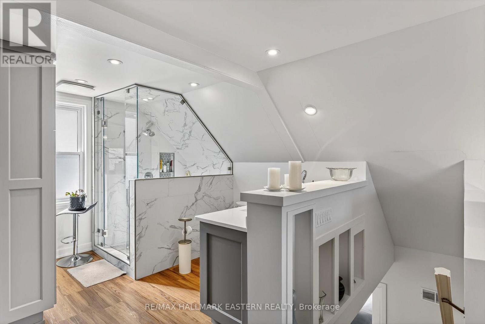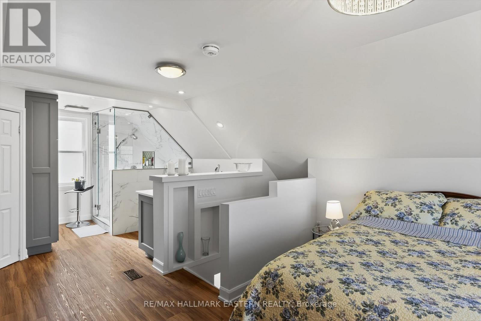 Refined and thoughtfully updated, this 1-bedroom, 2-bath home offers a rare blend of style, efficiency, and turnkey living-ideal for first-time buyers or downsizers. The open-concept main floor kitchen to living and dining area showcases hardwood flooring, quartz countertops, and seamless flow with main floor laundry. Upstairs, a bright and spacious primary retreat is complemented by a fully renovated ensuite (2023), with an additional fully renovated main floor bath (2024). Key improvements include most windows (2023), concrete driveway, backyard deck, new shed 2025, and a 3-year-old sprinkler system. Set on a generous, fully fenced corner lot, the property also features a detached garage and a separate insulated bunkie-with furniture included-perfect for guests or a home office. Forced air gas heating and central air conditioning complete this polished, move-in-ready offering. (id:61423)