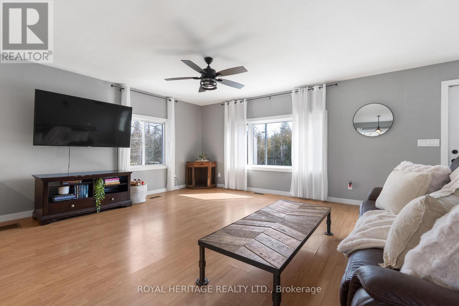 This could be one of the best value properties on the market today! Welcome to your private escape on 27 acres of beautiful treed land, complete with walking trails and a scenic pond-perfect for soaking in peaceful views year-round. Ideally located just minutes north of Norwood and only 20 minutes to Peterborough, you get the perfect blend of privacy and convenience. This move-in ready home is perfectly suited for family living. The main floor features a spacious open-concept great room, three bedrooms, and an remodelled bathroom. The lower level offers a bright, inviting family room with walkout access and a rough-in for a wood stove-perfect for cozy nights. You'll also find a fourth bedroom, a new full 4-piece bath, and a large laundry room with plenty of space for storage and busy family life. Recent upgrades add even more value, including spray foam insulation in the basement, an energy-efficient heat pump for year-round comfort, and a durable steel roof. All that's left to do is move in and start making memories. This is the lifestyle your family has been waiting for. (id:61423)