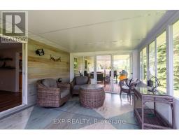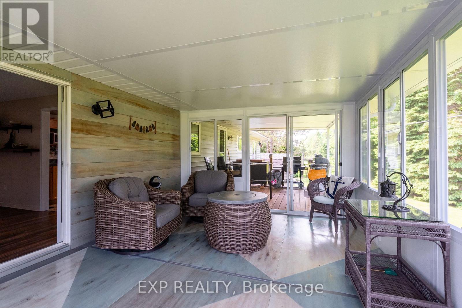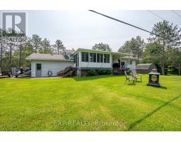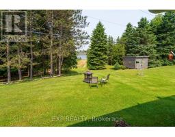 Modern Comfort Meets Scenic Waterfront Living. This impeccably maintained 3+1 bedroom, 2-bathroom bungalow offers the perfect blend of style, functionality, and year-round comfort. Thoughtfully updated throughout, the home features bright, spacious interiors and inviting outdoor living spaces designed for everyday ease and entertaining. The sun-filled main floor showcases east- and west-facing windows, capturing tranquil sunrise views from the living room and warm afternoon light in the dining area and sunroom. The updated kitchen is equipped with 2023 appliances, ample cabinetry, and durable high-end laminate flooring. The primary bedroom features dual closets, while two additional bedrooms offer flexible space for family or guests. A convenient laundry/mudroom provides direct access to the backyard and covered deck. The fully finished lower level adds exceptional versatility, complete with a large rec room with above-grade windows and a premium woodstove, a fourth bedroom, and a second full bathroom-ideal for guests, extended family, or a home office setup. Outdoor living is equally impressive. The 12' x 16' sunroom boasts high-end glass windows, an insulated floor, and three sliding doors opening to a covered deck with LED lighting and two propane hookups. Enjoy a raised, enclosed garden area and a solid dock with adjustable straps to accommodate seasonal water levels-perfect for making the most of waterfront living from spring through fall. Additional highlights include a 1.5-car garage with backyard and basement access, a 20' x 30' Quonset hut for storage or hobbies, a wired shed, and an extra-long paved driveway with ample parking. A Generac 20kW generator ensures peace of mind year-round. Situated on a municipally maintained road just 6 km from local amenities, this move-in-ready property delivers privacy, practicality, and exceptional waterfront living. (id:61423)