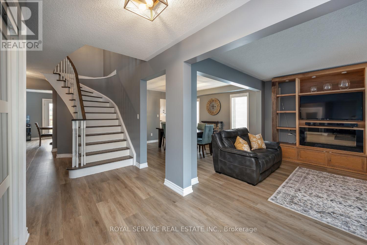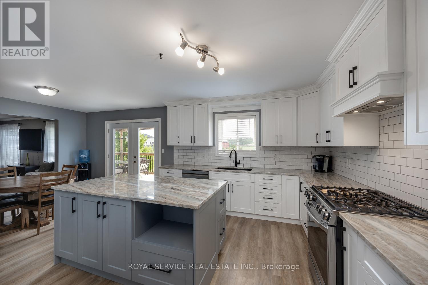 Welcome to 1723 Ravenwood Drive, a spacious four-bedroom, three-bathroom home located in the west end of Peterborough. This property is perfect for families, with nearby access to both public and separate elementary and high schools. Just minutes away, enjoy the Trans Canada Trail system offering scenic walking and biking paths. Inside, fresh paint and new flooring give the home a welcoming and modern feel. The brand-new custom kitchen features stainless steel appliances, a large island, and opens to a back balcony with views of peaceful open fields - an ideal place to start your day with a relaxing coffee or tea. The front balcony offers another quiet space with overhead shade. The main floor includes a bright family room off the eat-in kitchen, as well as separate living and dining rooms - great for entertaining. A two-piece bathroom, spacious foyer and main floor laundry room with access to the attached two-car garage complete this level. Upstairs, the large primary bedroom includes a private bathroom and a walk-in closet. Three additional oversized bedrooms provide space for the whole family. The upper level also offers access to the second balcony. The walkout basement leads to a partially fenced backyard, giving you options for future development or outdoor enjoyment. With thoughtful updates, generous living space, and a location close to schools, nature trails, and essential amenities, 1723 Ravenwood Drive is a great place to call home. Make this your next move. (id:61423)