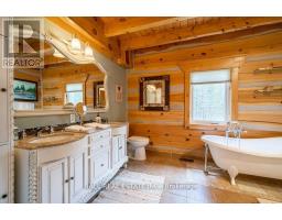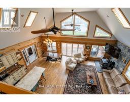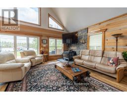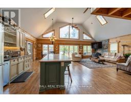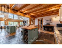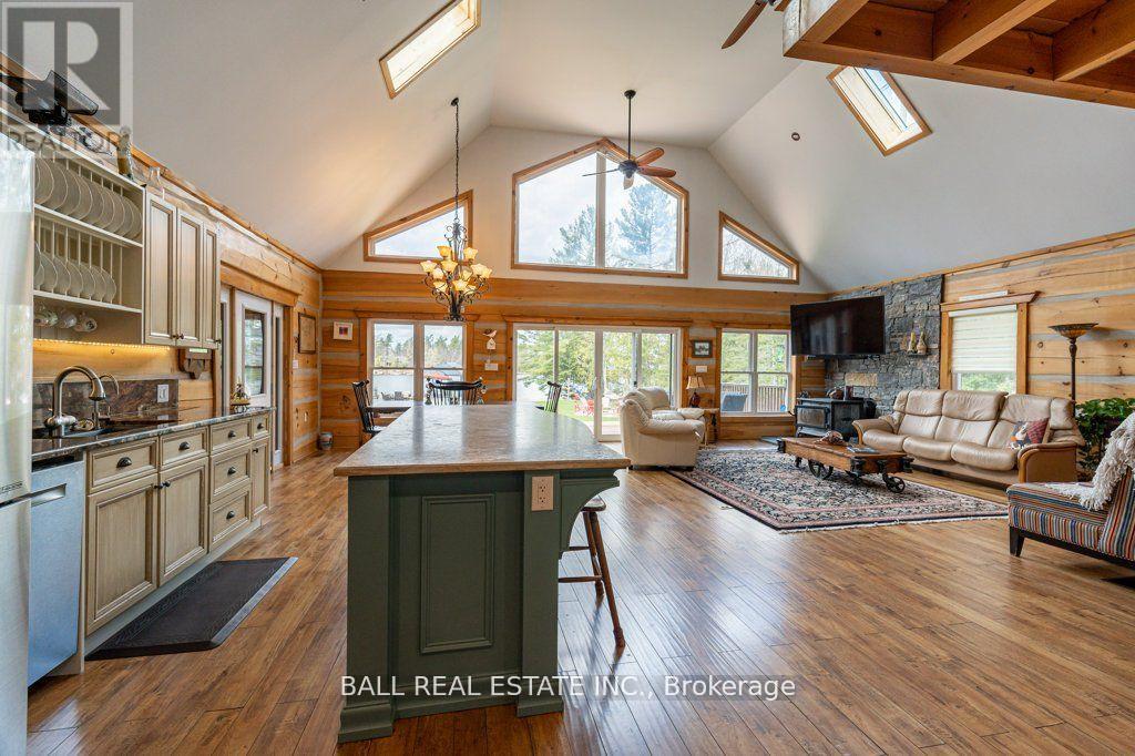 Timber-Frame Retreat on Stoney Lake - Sandy Beach, Indoor Hot Tub & 2+ Acres! Perfectly positioned on 149ft of pristine waterfront along the coveted southeast shore of Stoney Lake, this stunning timber-frame retreat offers an effortless blend of comfort and refined lake living. Step inside to soaring ceilings and an open-concept living room designed for gathering. Expansive windows frame tranquil lake views, while a spacious deck extends the living space outdoors - perfect for morning coffee and sunset dinners. The loft-style primary suite overlooks the water and features a private ensuite bath - a peaceful retreat after a day on the lake. A second primary bedroom with its own ensuite makes hosting family and guests effortless. In total, the home offers 3+1 bedrooms plus bonus room and 3 full bathrooms, along with a finished basement, laundry room, and flexible space for movie nights or additional sleeping quarters. At the heart of the home is a double kitchen with two islands - ideal for entertaining, holiday weekends, and large family gatherings. For year-round enjoyment, an indoor hot tub allows you to relax in every season. Golf enthusiasts will appreciate being just 10 minutes from the renowned Wildfire Golf Club - a first-class course known for its exceptional design and stunning natural setting. A true Kawartha lakehouse - warm, welcoming, and ready for its next chapter. (id:61423)