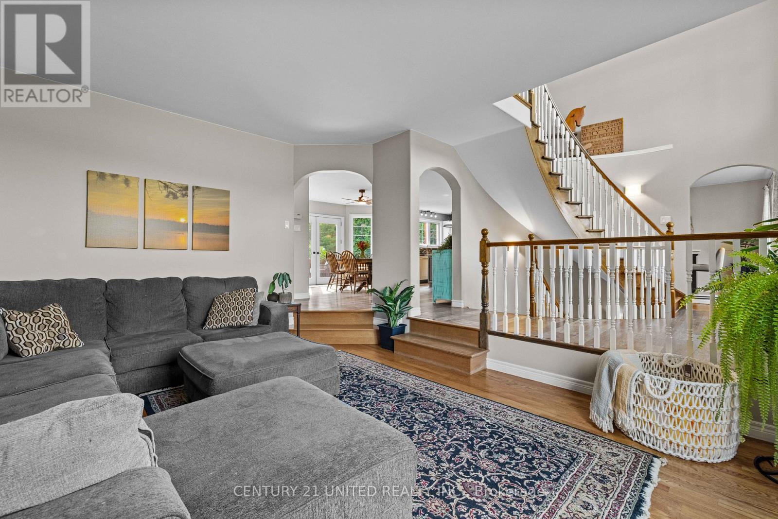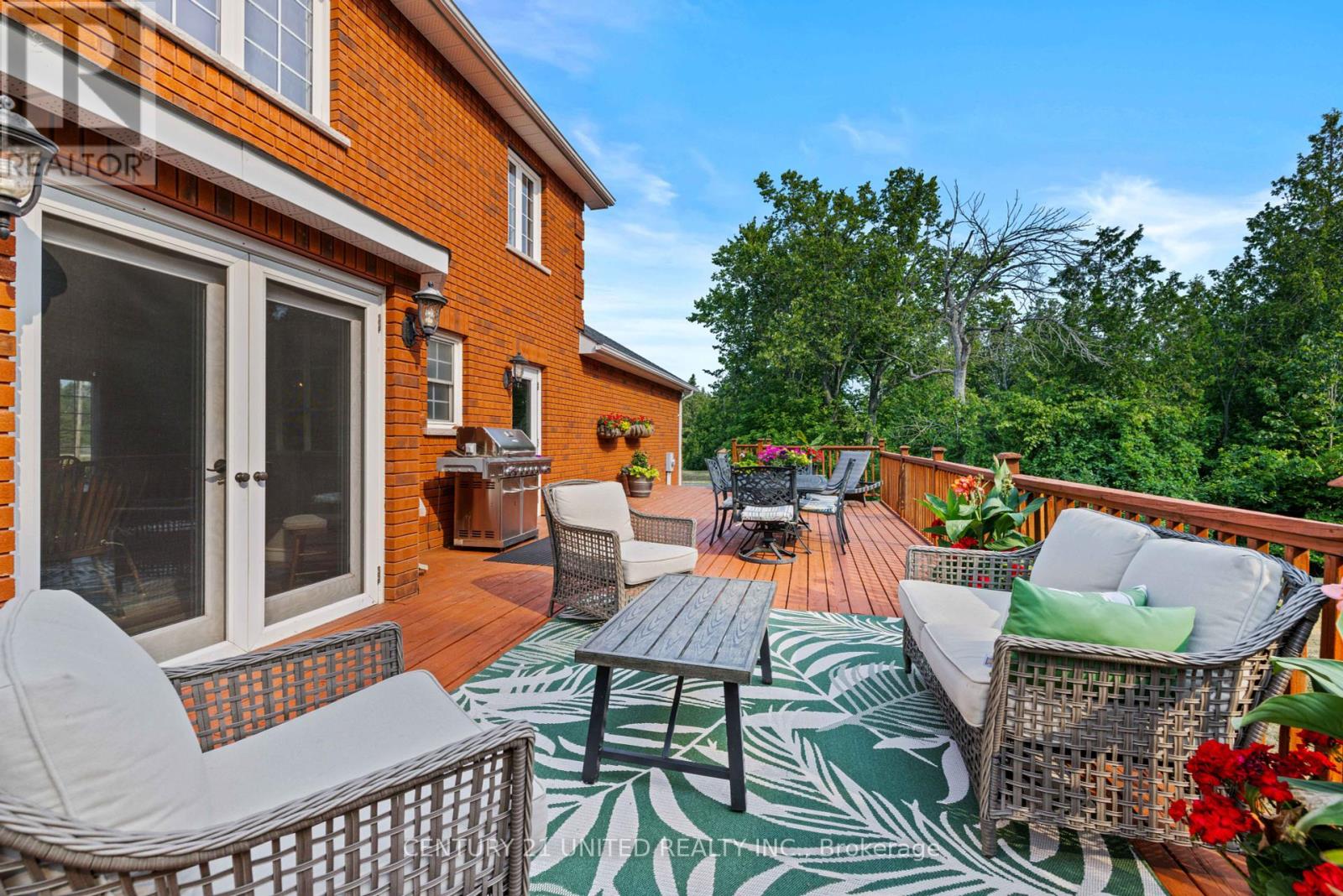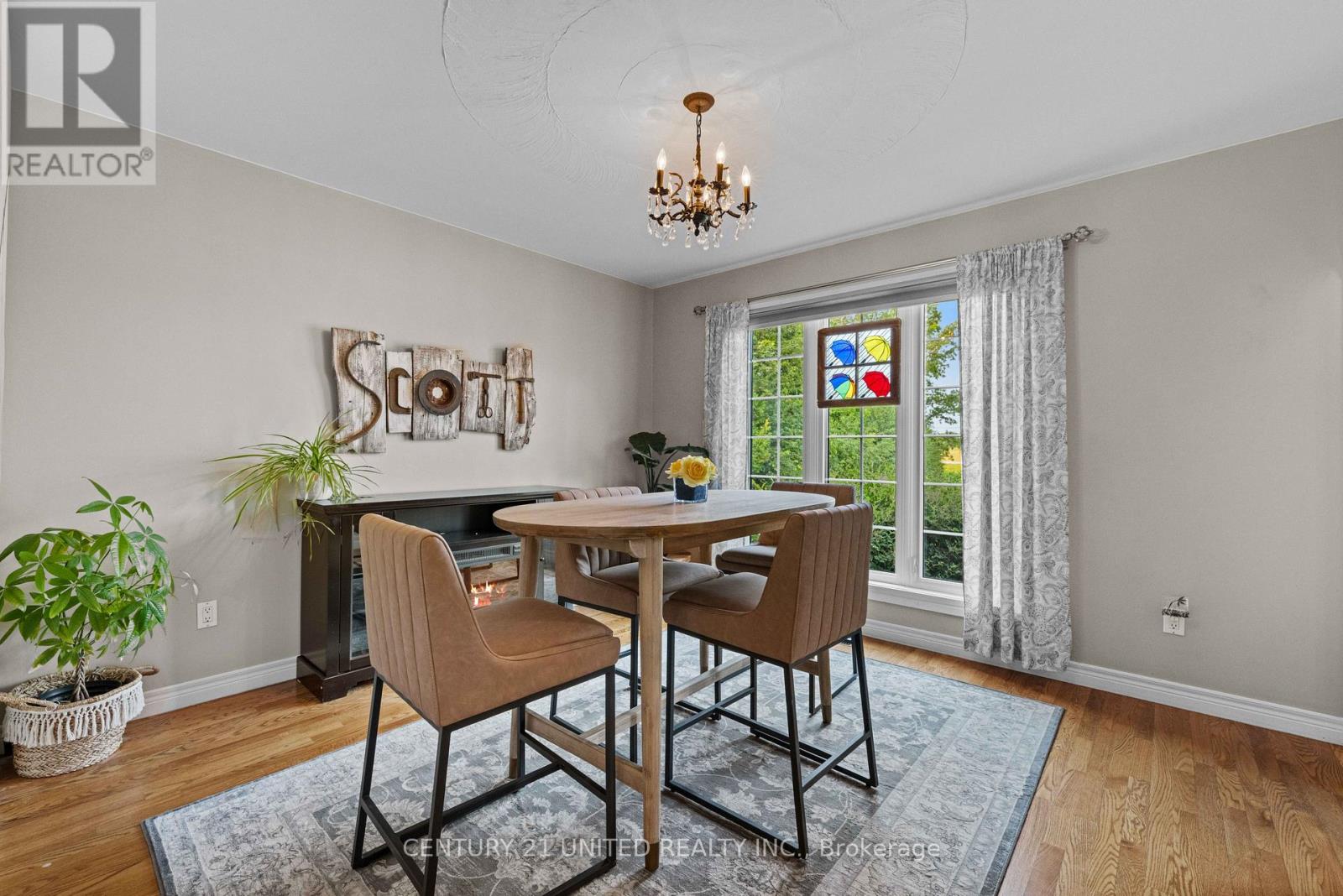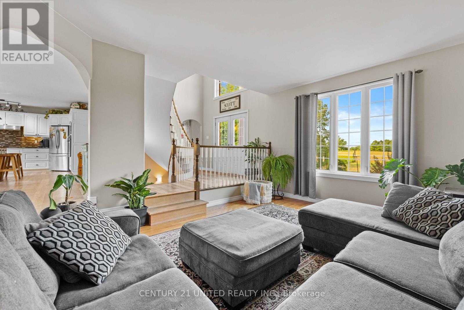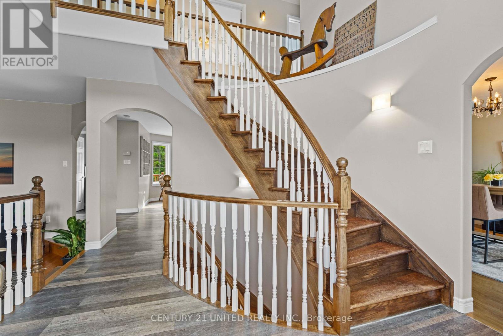 Welcome to 1739 Heritage Line, nestled on over an acre is a perfect home for a growing family. This stunning 2-storey home features 3bedrooms, 4 bathrooms, finished basement, and a large attached two car garage with ample storage. As you walk into the home you are greeted with high ceilings, hardwood floors, and a beautiful curved staircase leading to the second level that overlooks the foyer. The upstairs features 3 large bedrooms, with the master bedroom and 3-piece ensuite, and a spa-like inspired bathroom featuring a large walk-in shower with a waterfall shower head and a gorgeous soaker tub. As you move about the main level, you will notice the living room, with large windows that flood the space with natural light, a hallway that leads down to the massive garage and the laundry/mud room that leads off to the deck. The kitchen featuring stainless steel appliances and a large island with bar seating is connected to the breakfast nook which walks out to the oversized back deck. Just off the kitchen and the foyer is a large formal dining room. Moving downstairs is to the finished basement you'll find another 3-piece bathroom, huge rec room, wet bar, and additional storage space. There is also a direct entrance from the garage to the basement. The property itself highlights the gorgeous landscape with access to the creek that runs along the backside, the mature trees, all complimented by the custom landscaping and gardens. The property offers a fully fenced yard with Invisible Fence for pets and fur babies. Pre-sale home inspection available upon request. (id:61423)