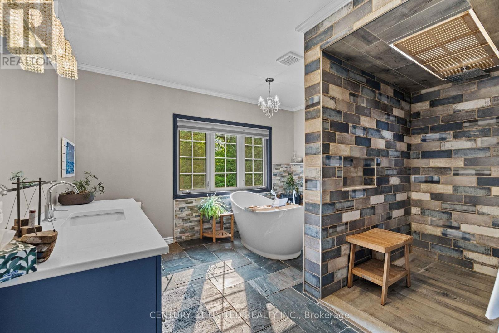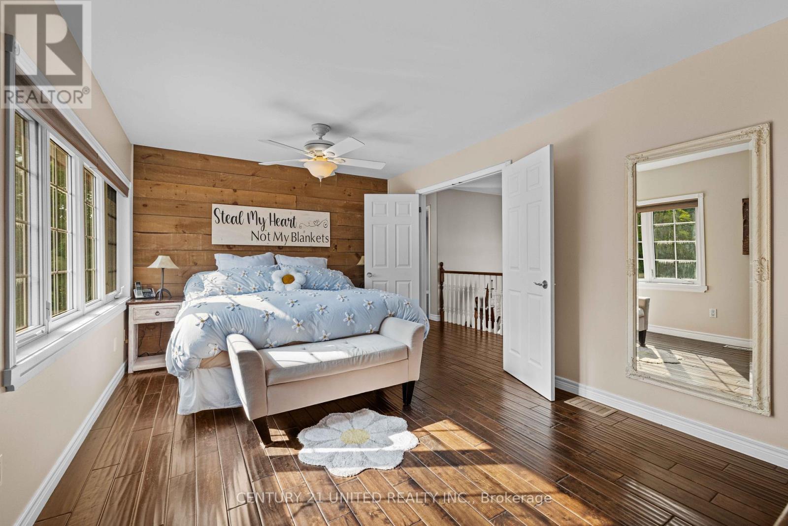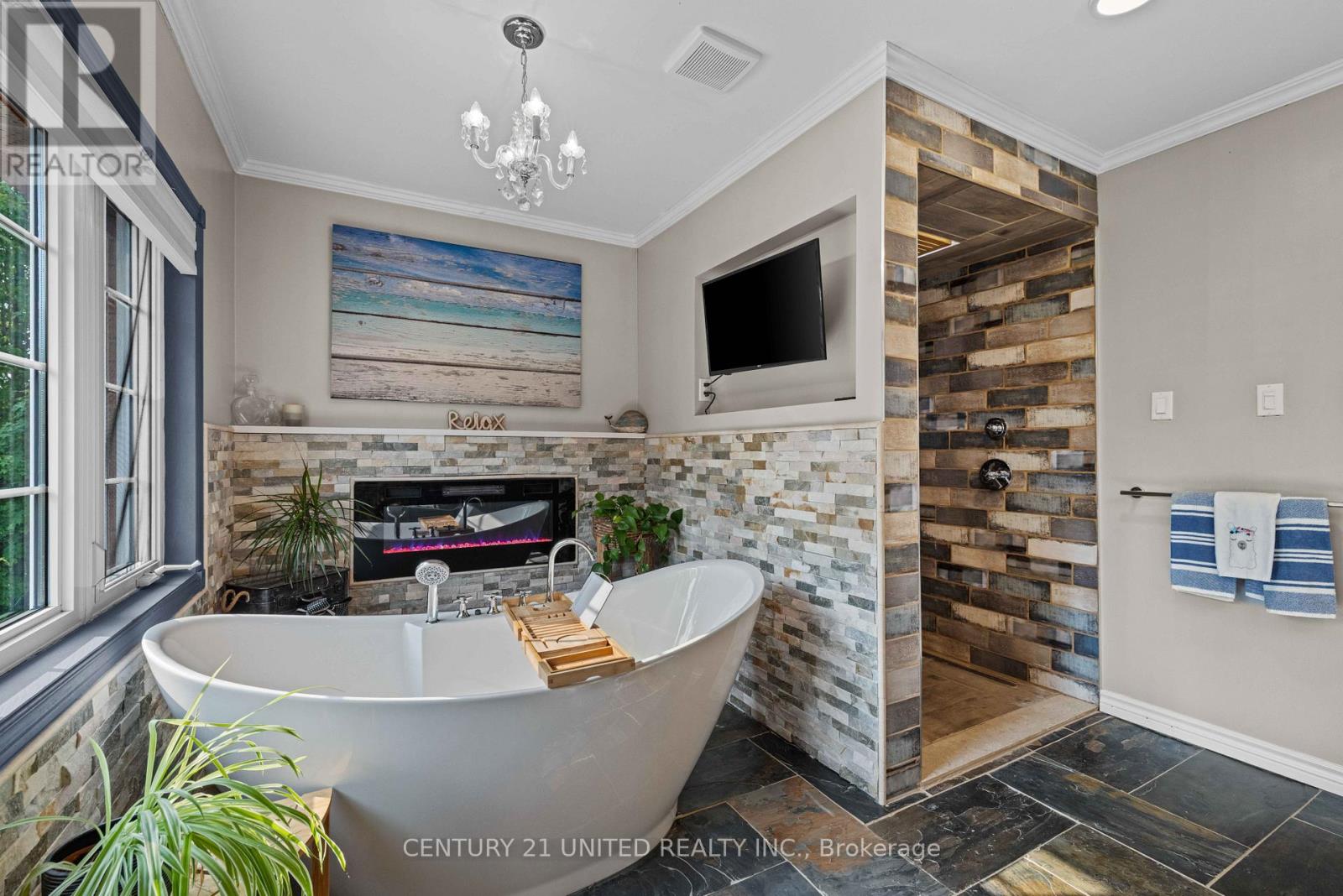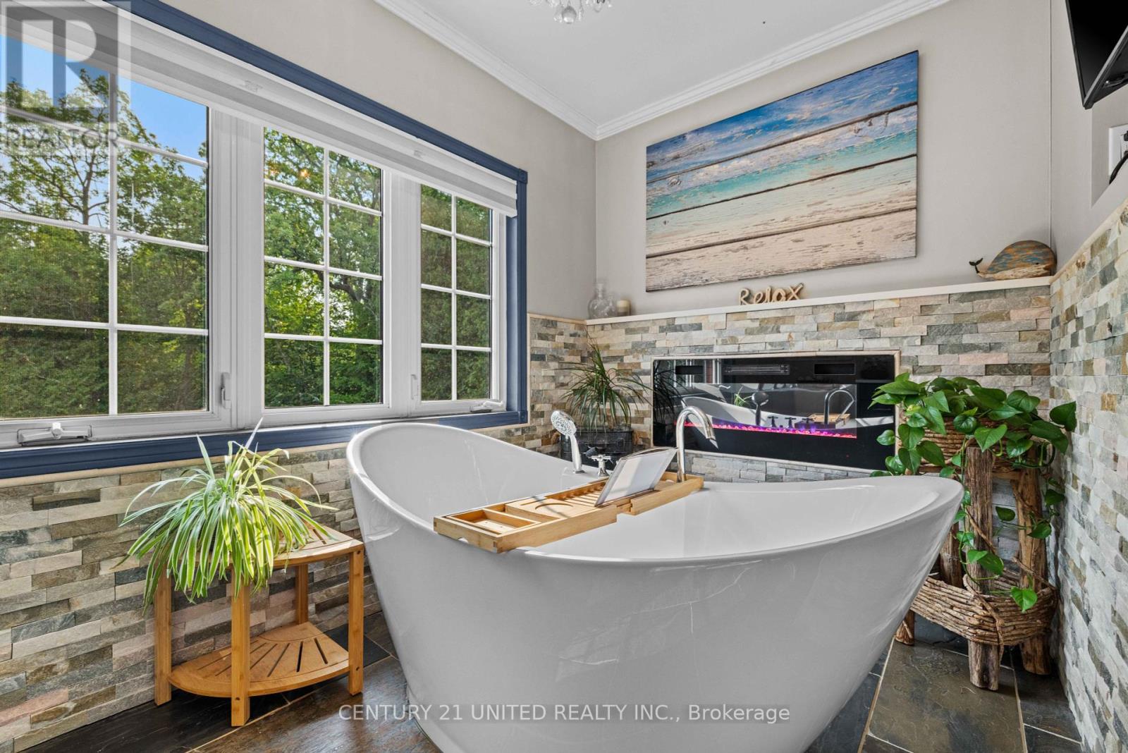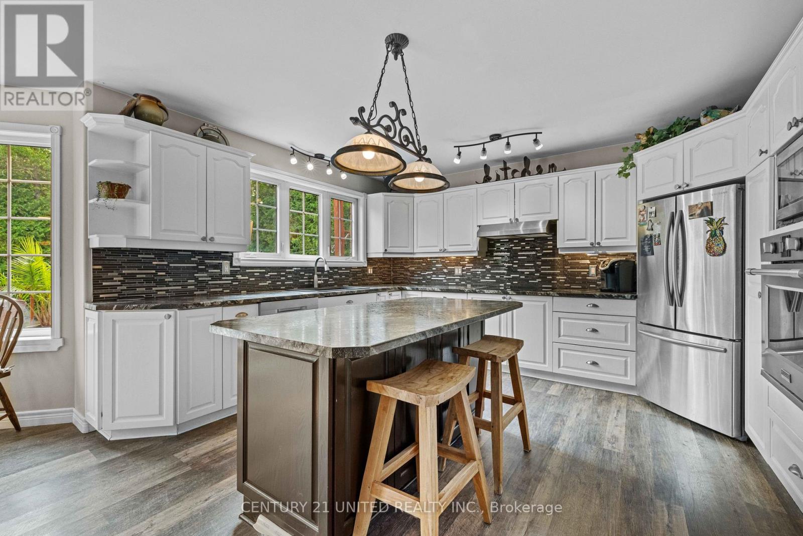 Welcome to 1739 Heritage Line, nestled on over an acre is a perfect home for a growing family. This stunning 2-storey home features 3bedrooms, 4 bathrooms, finished basement, and a large attached two car garage with ample storage. As you walk into the home you are greeted with high ceilings, hardwood floors, and a beautiful curved staircase leading to the second level that overlooks the foyer. The upstairs features 3 large bedrooms, with the master bedroom and 3-piece ensuite, and a spa-like inspired bathroom featuring a large walk-in shower with a waterfall shower head and a gorgeous soaker tub. As you move about the main level, you will notice the living room, with large windows that flood the space with natural light, a hallway that leads down to the massive garage and the laundry/mud room that leads off to the deck. The kitchen featuring stainless steel appliances and a large island with bar seating is connected to the breakfast nook which walks out to the oversized back deck. Just off the kitchen and the foyer is a large formal dining room. Moving downstairs is to the finished basement you'll find another 3-piece bathroom, huge rec room, wet bar, and additional storage space. There is also a direct entrance from the garage to the basement. The property itself highlights the gorgeous landscape with access to the creek that runs along the backside, the mature trees, all complimented by the custom landscaping and gardens. The property offers a fully fenced yard with Invisible Fence for pets and fur babies. Pre-sale home inspection available upon request. (id:61423)