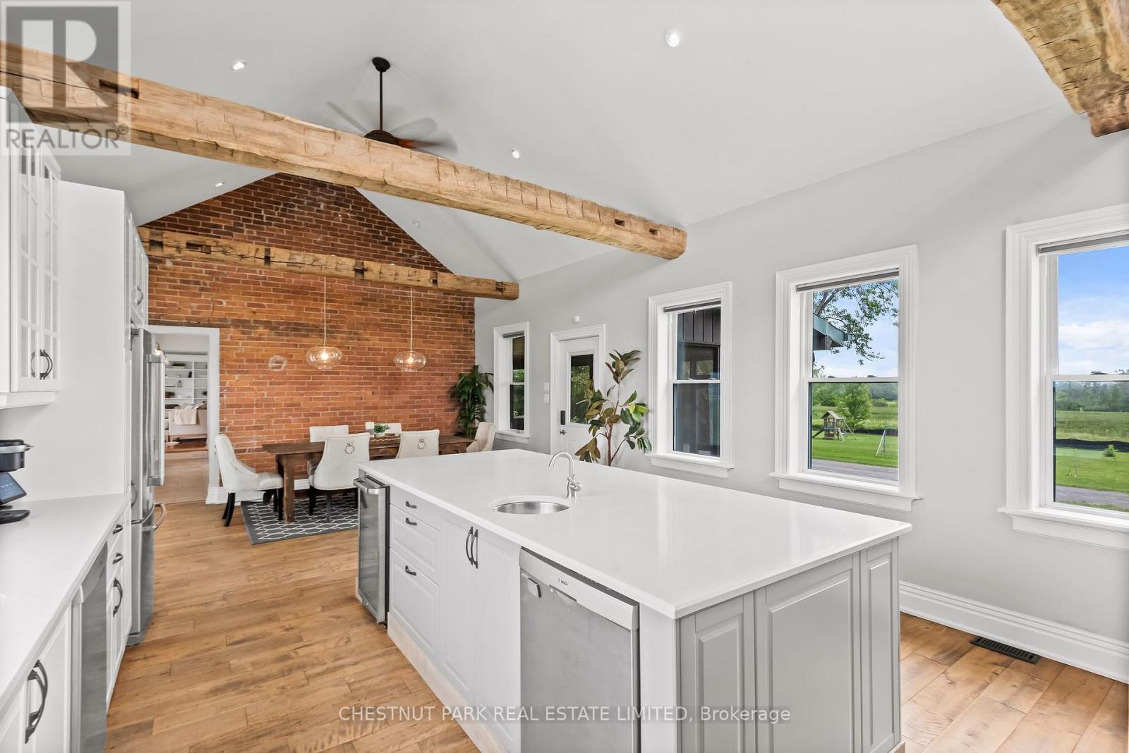 WORK FROM HOME - LESS THAN AN HOUR TO THE GTA! RARE RENOVATED FARMHOUSE ON 3 ACRES - 5 MINUTES TO PETERBOROUGH & HWY 115! Large Winterized Warehouse (3700+ sqft), Detached Garage (621 sqft) & 4300+ Sqft Barn Footprint! Once in a lifetime opportunity to own a gorgeous estate home on the edge of Peterborough. This modern farmhouse has been incredibly updated & is set on a serene 3-acre lot. With 4 spacious bedrooms & 2 large bathrooms, this remarkable home is highlighted by a beautiful chef's kitchen with cathedral ceilings, oversized island, natural gas stove, open concept dining space & walkout to a covered porch/patio ideal for entertaining. Outbuildings & property offer incredible potential, perfect for your home business or recreational enjoyment. Prime location only 500 meters from Peterborough city limits enjoy convenient access to schools, hospital (15 mins), shopping, Costco (10 mins), boating/fishing on the Otonabee & Trent Severn Waterway, Hwy 115, Hwy 407, airport, & more. FUTURE POTENTIAL: Zoning permits the potential for a second home on the property & significant development potential if desired. Don't miss out on this incredible opportunity book a showing today! (id:61423)