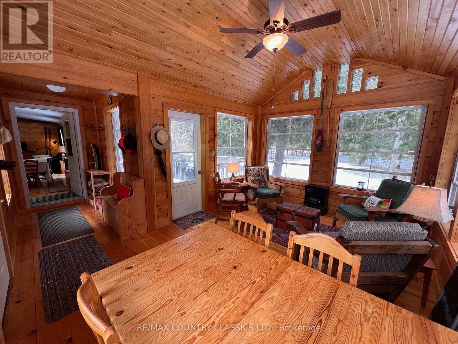 MADAWASKA RIVER - This unique property is adjacent to the Lower Madawaska Provincial White Water Park. A peaceful getaway next to Crown land and the Madawaska Uplands Hiking trail. This section of the river is more suited to canoes and kayaks. Very well maintained 2 bedroom cottage with 166 feet of frontage on the river and 1.34 acres. This private property, lined with trees, has a beautiful view of the river with rock and sand waterfront. Cozy wood interior provides a country ambiance throughout with an open concept and a 3 piece bathroom. Built in 2009, the very spacious 3 season sunroom opens to the front deck. Access to the property is both Township road and private road. For winter access, Finn Road is plowed partly by the Township and the remainder is plowed privately. Lalonde Lane is plowed privately and there are year round residences on that road. All furniture, appliances, dishes etc are included. You just need to bring your clothes and fishing gear! Griffith is only 15 minutes away with access to a restaurants, LCBO/Beer store, Hardware store, General stores, garden centre and a Community Centre, which offers outdoor rink, pickle ball courts, and community events. It is 45 minutes to Renfrew to the hospital and box stores to take care of the rest of your shopping needs. Regular road maintenance fee is $275 per year excluding snow plowing. Hydro is approx $1050 per year. Septic was installed in 1999 and last pumped in 2020, Roof was shingled in 2009. Wood stove does not have a current WETT certificate. (id:61423)