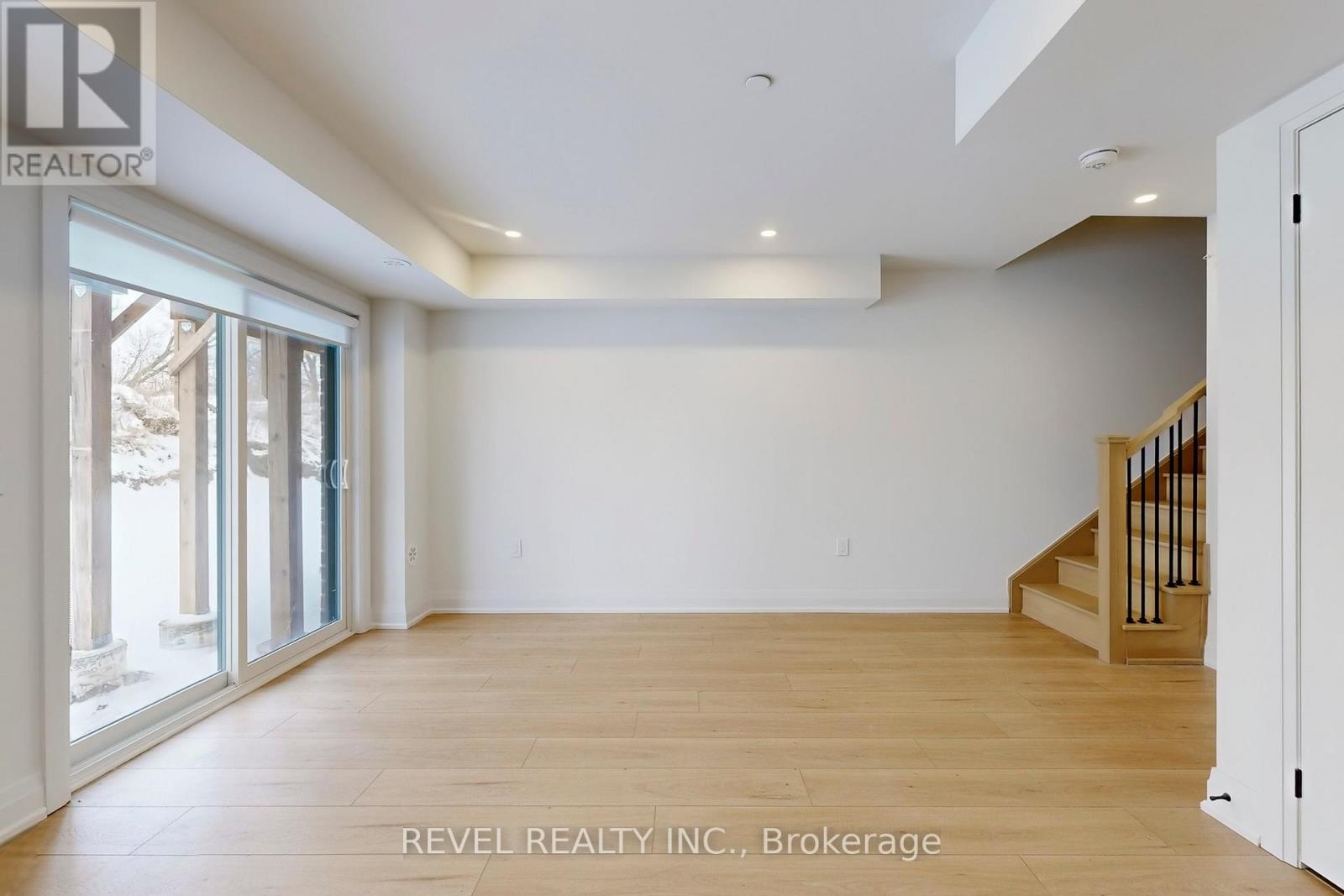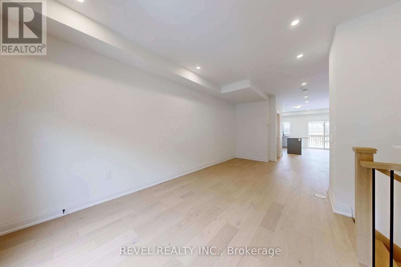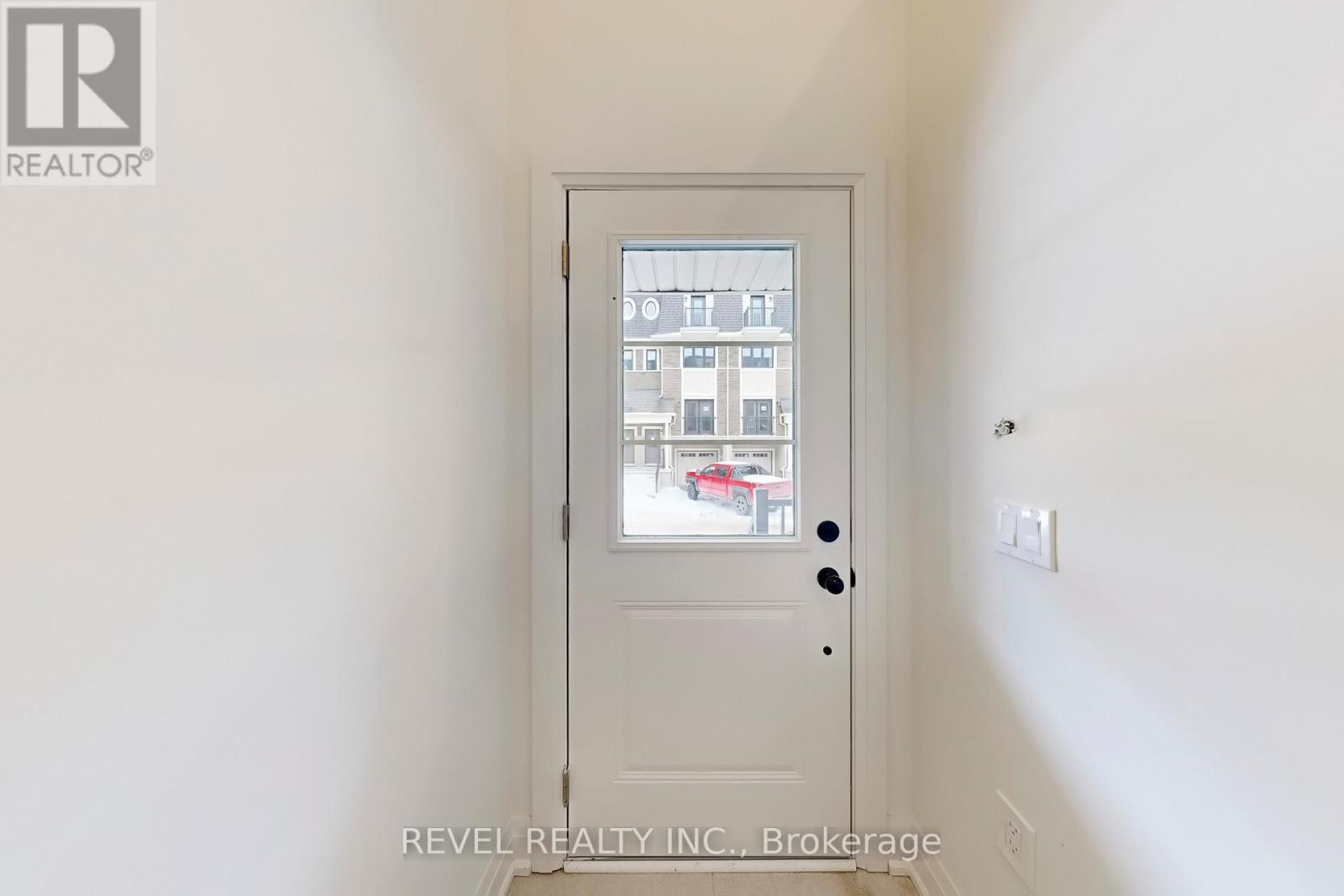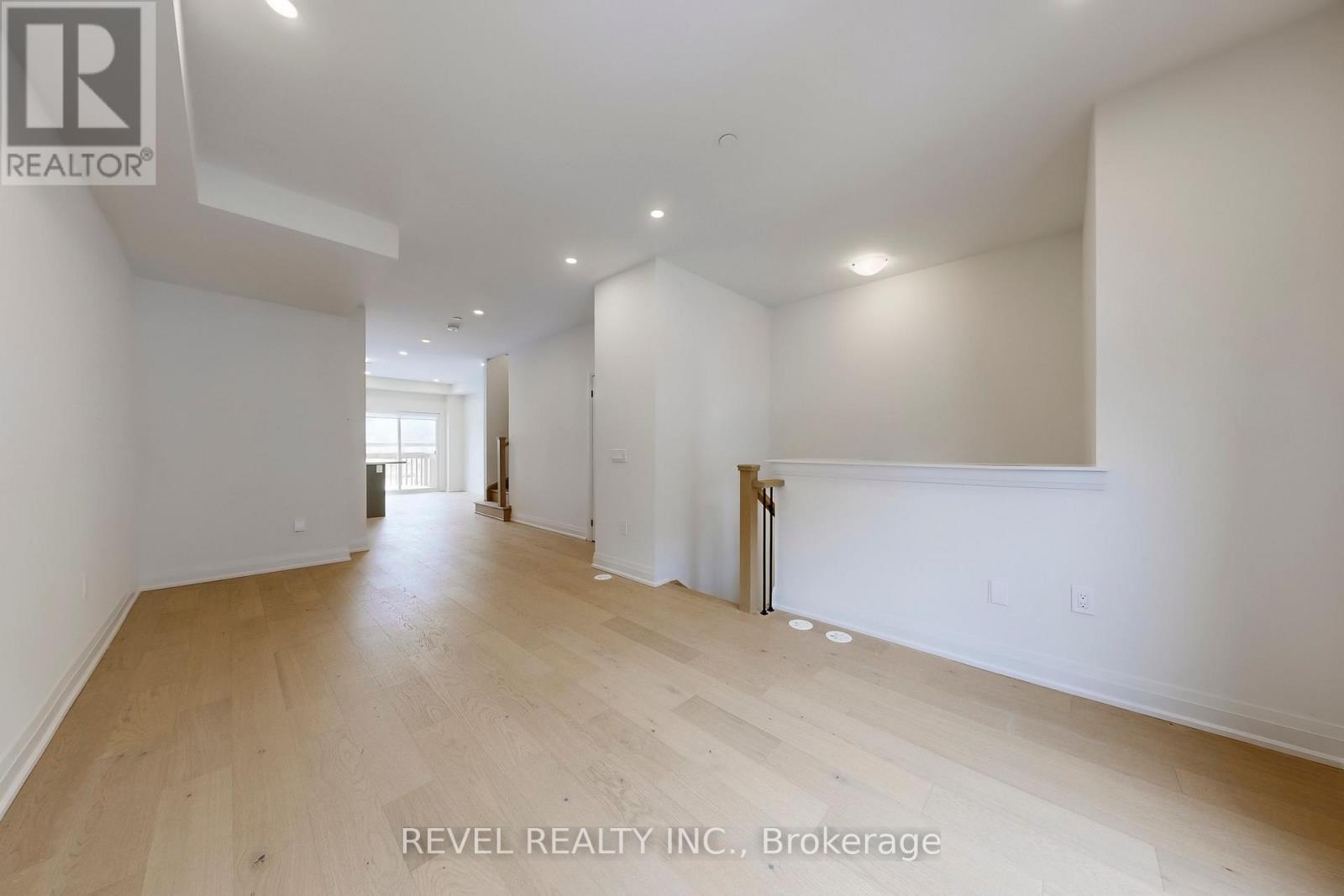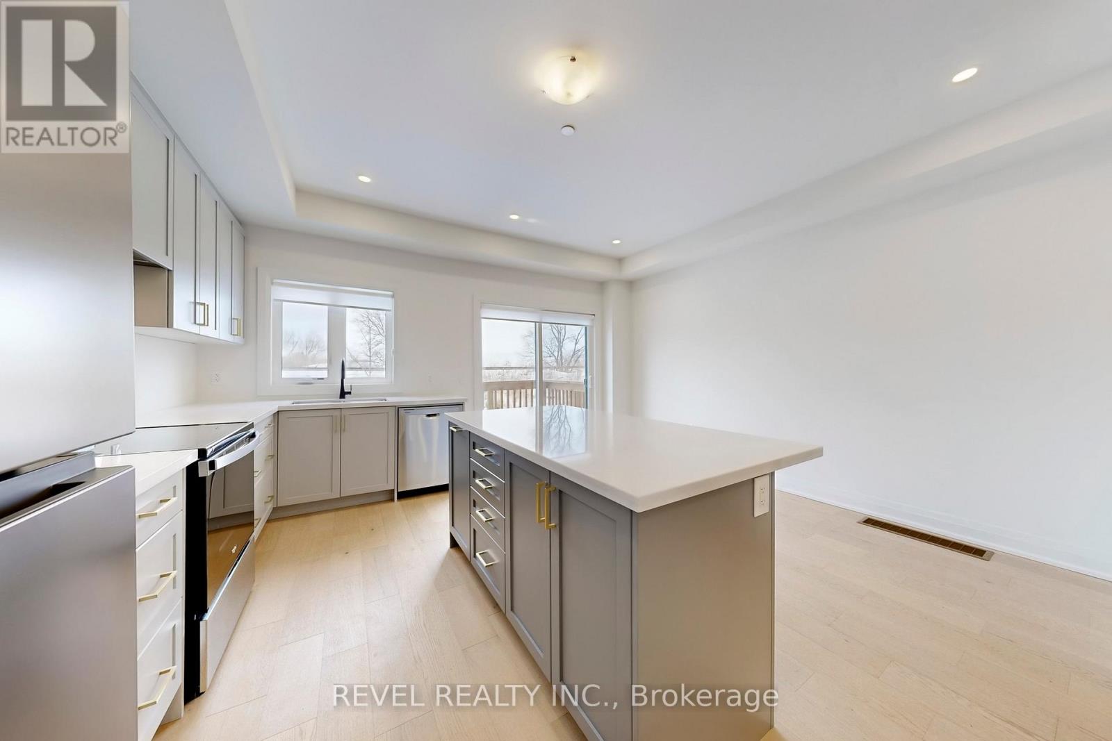 Fully upgraded 3-storey freehold townhome offering over 2,000 sq ft of modern living space with 3 bedrooms and 4 bathrooms plus a finished walkout basement with no rear neighbours for added privacy. Featuring hardwood flooring throughout, a staircase stained to match the flooring, smooth ceilings and pot lights in stairways and hallways with brand new window coverings throughout. Designer kitchen with quartz countertops, upgraded cabinetry with soft-close drawers, premium appliances, and walkout to private deck. Bright open-concept living and dining area. Each bedroom includes a private ensuite. The entire top floor is dedicated to a luxurious primary retreat with walk-in closet and spa-inspired ensuite. Double parking with garage and convenient in-home access & and high-end finishes rarely found in rental properties. Prime location close to shopping, schools, parks, and quick access to Highways 401, 407, and 115. (id:61423)
