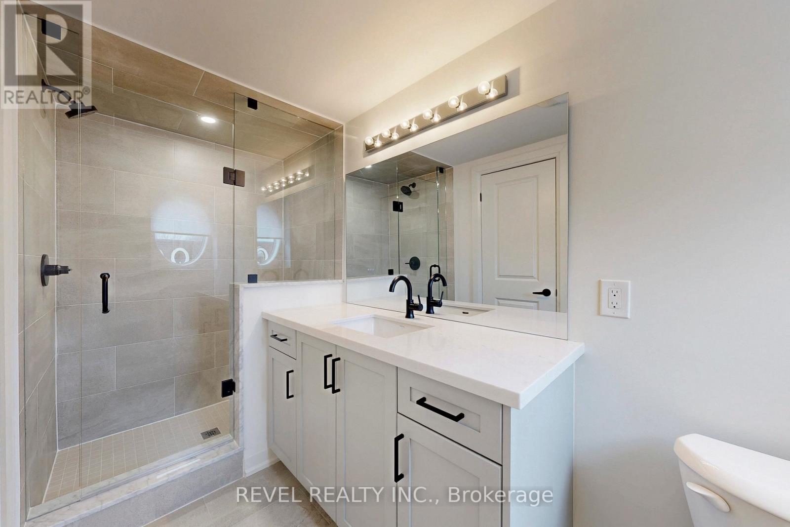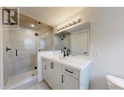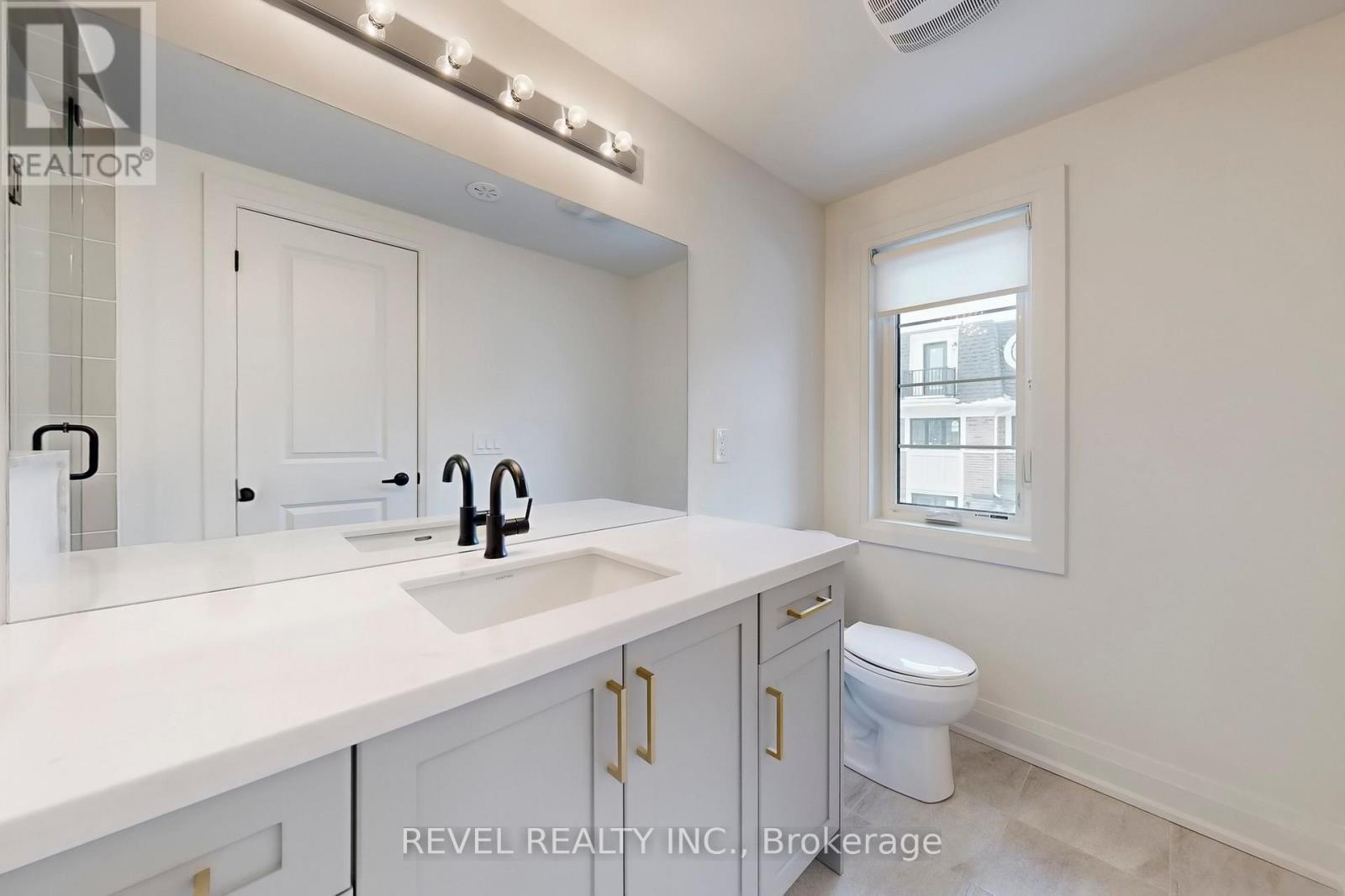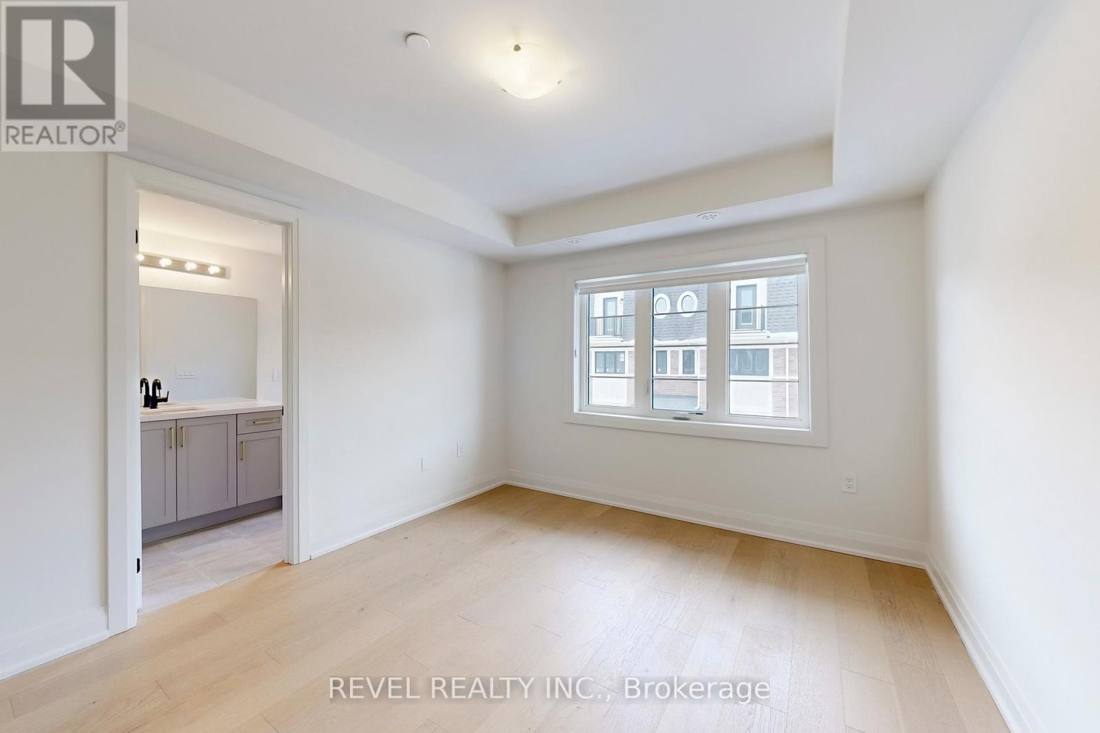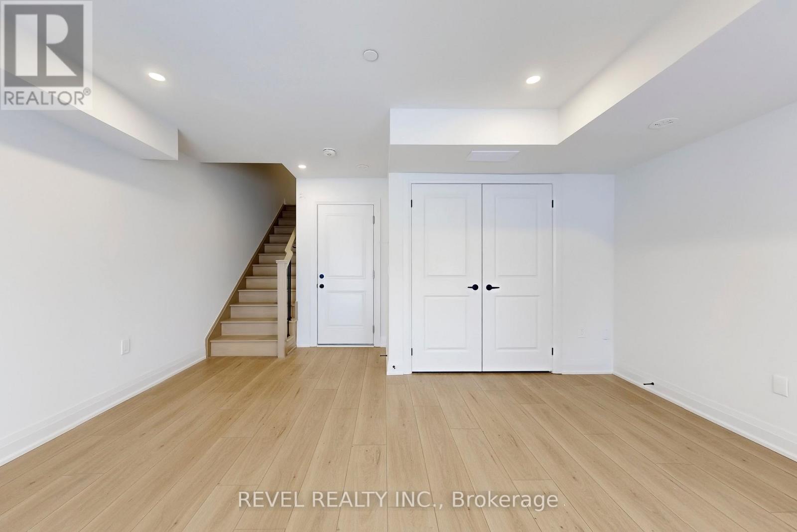 Fully upgraded 3-storey freehold townhome offering over 2,000 sq ft of modern living space with 3 bedrooms and 4 bathrooms plus a finished walkout basement with no rear neighbours for added privacy. Featuring hardwood flooring throughout, a staircase stained to match the flooring, smooth ceilings and pot lights in stairways and hallways with brand new window coverings throughout. Designer kitchen with quartz countertops, upgraded cabinetry with soft-close drawers, premium appliances, and walkout to private deck. Bright open-concept living and dining area. Each bedroom includes a private ensuite. The entire top floor is dedicated to a luxurious primary retreat with walk-in closet and spa-inspired ensuite. Double parking with garage and convenient in-home access & and high-end finishes rarely found in rental properties. Prime location close to shopping, schools, parks, and quick access to Highways 401, 407, and 115. (id:61423)