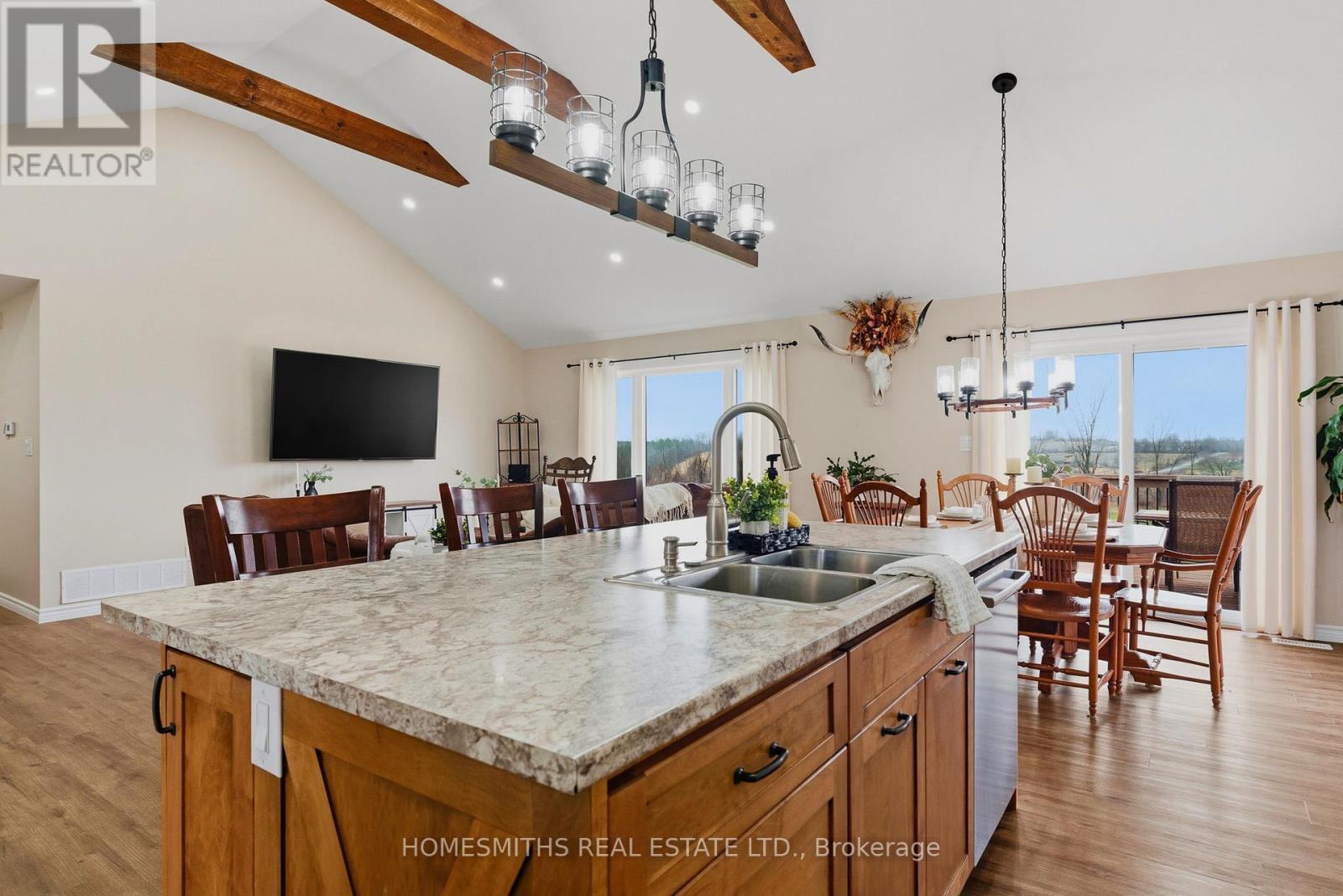 Well maintained 2020 built bungalow on 2 acres, offering a country setting with the comfort of nearby neighbours.Thoughtfully designed for main floor living with 3 bedrooms, including a primary with 4 piece ensuite, plus a second full 4 piece bath. Main floor laundry and direct access from the attached 2 car garage add everyday convenience.Open concept kitchen, dining and living space with warm, rustic character and an easy, functional flow.The attached 2 car garage includes a separate bonus room, ideal for a home business, workshop, or hobby space.Enjoy the outdoors with a large back deck, expansive yard, and a dedicated fire pit area with built in swings. Additional shed provides practical storage for tools and equipment.A solid, move in ready home on a generous lot, offering space both inside and out. (id:61423)