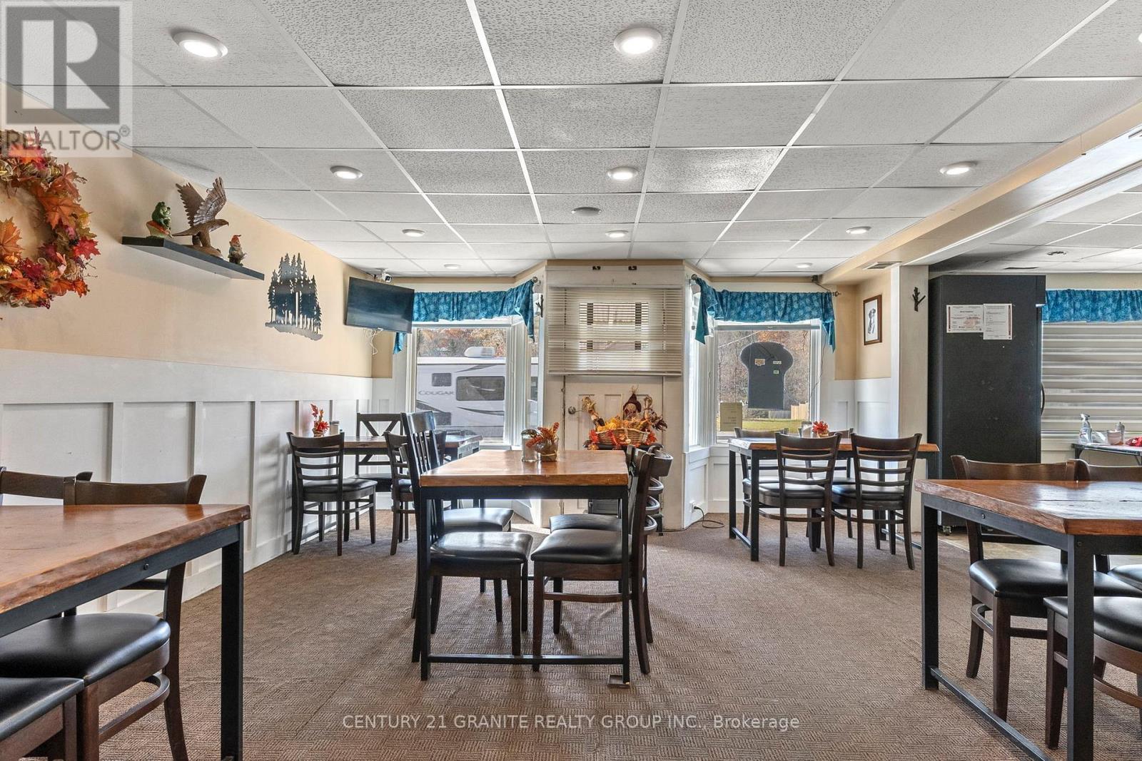 Ready to bring your business dreams to life? This turn-key restaurant comes with a bright and spacious 2-bedroom apartment (574 sq ft) above-perfect for living where you work or generating rental income. The main floor offers a fully equipped restaurant setup with Main Street commercial zoning, giving you the freedom to run a cafe, retail shop, takeover the very successful established restaurant or any venture you've been dreaming of. Enjoy the convenience of municipal water and the affordability of a private septic, plus a private parking lot for 8+ vehicles-a rare find in town! The restaurant is equipped with owned commercial appliances, male and female washrooms, foyer, 15x24 ft dining area with an additional 12.5x14ft flex space to accommodate more diners. Located just steps from downtown Bancroft, you'll benefit from high visibility and steady local traffic, surrounded by other established businesses in one of Ontario's fastest-growing small towns. Whether you're an entrepreneur ready to serve the community or an investor looking for a smart mixed-use opportunity. Live upstairs. Work downstairs. Grow your future-all right here in Bancroft. The restaurant is sold fully equipped. (id:61423)